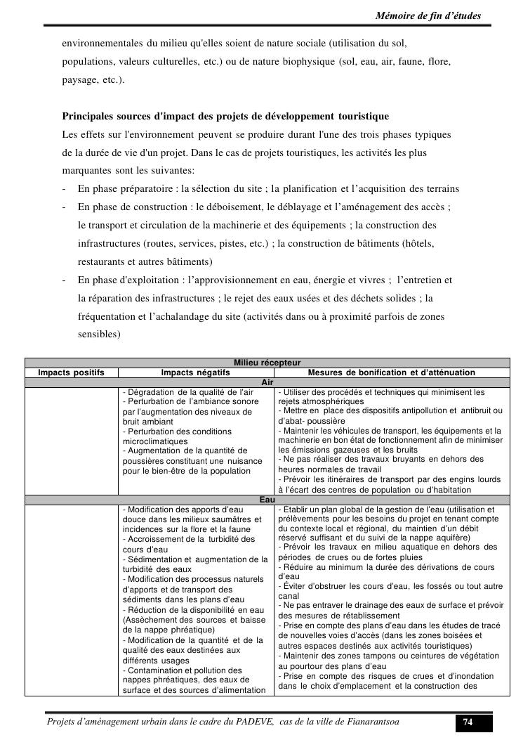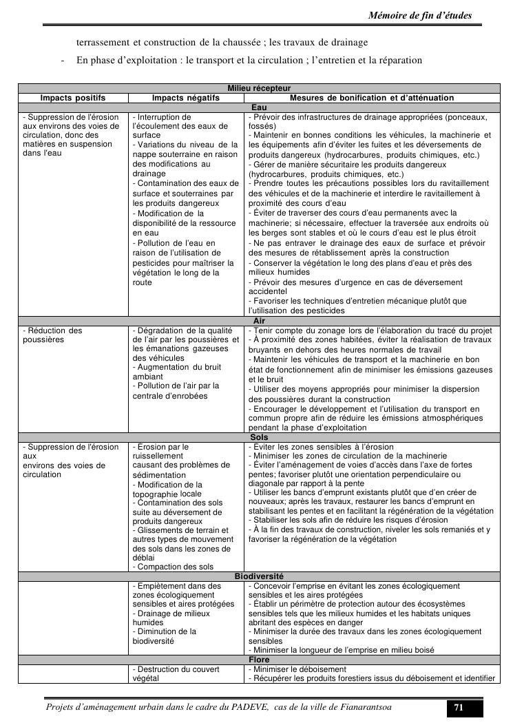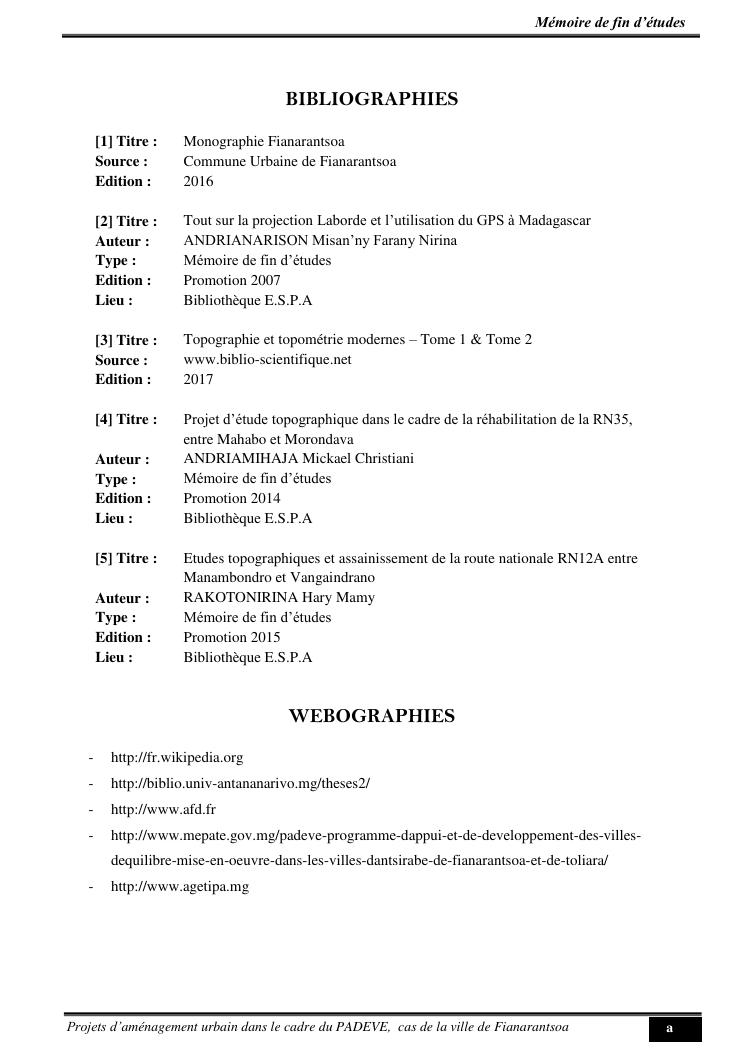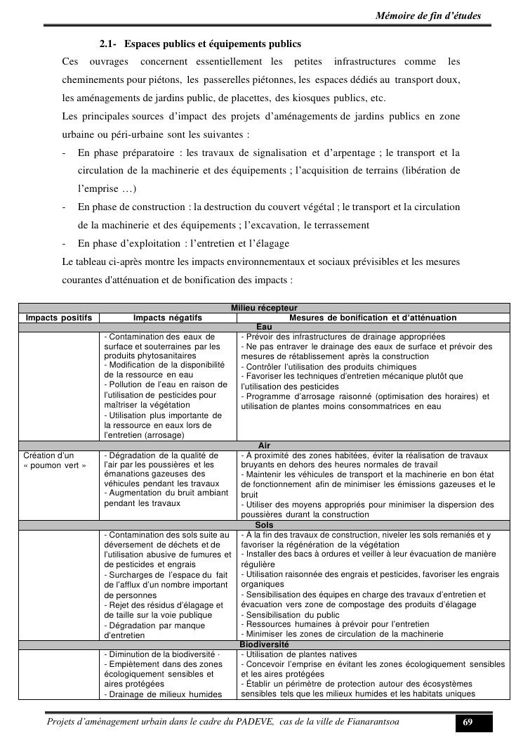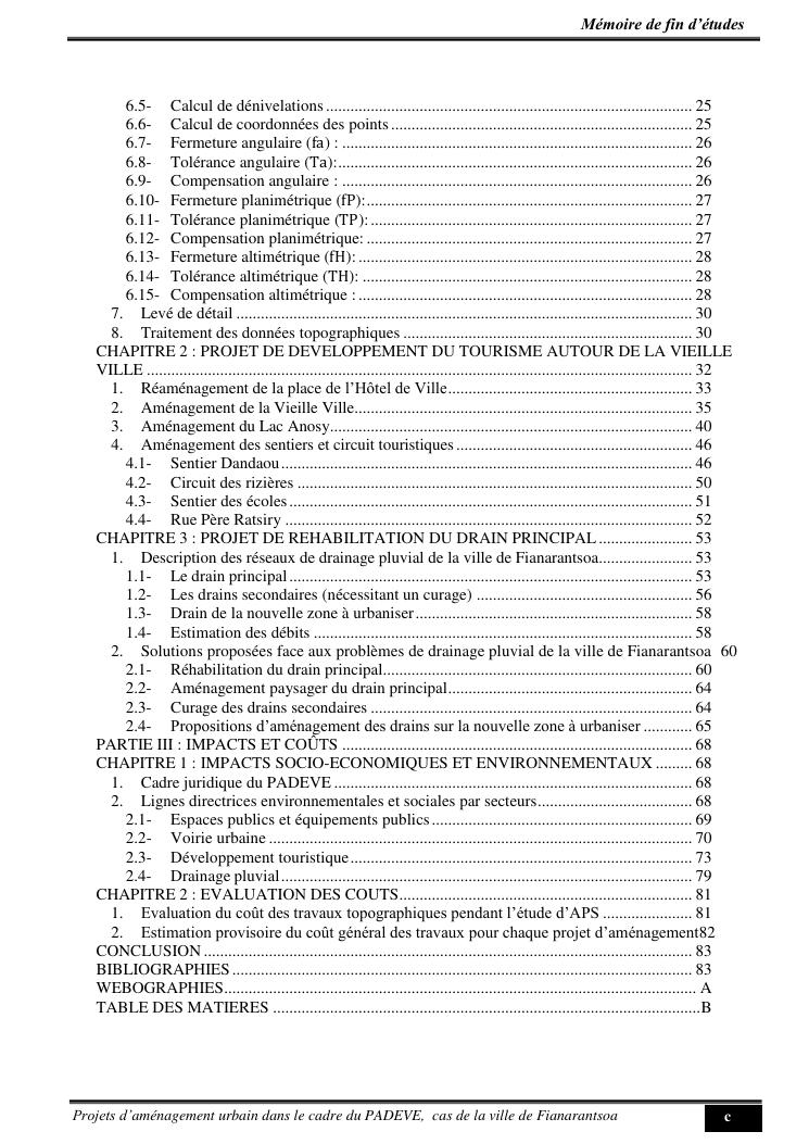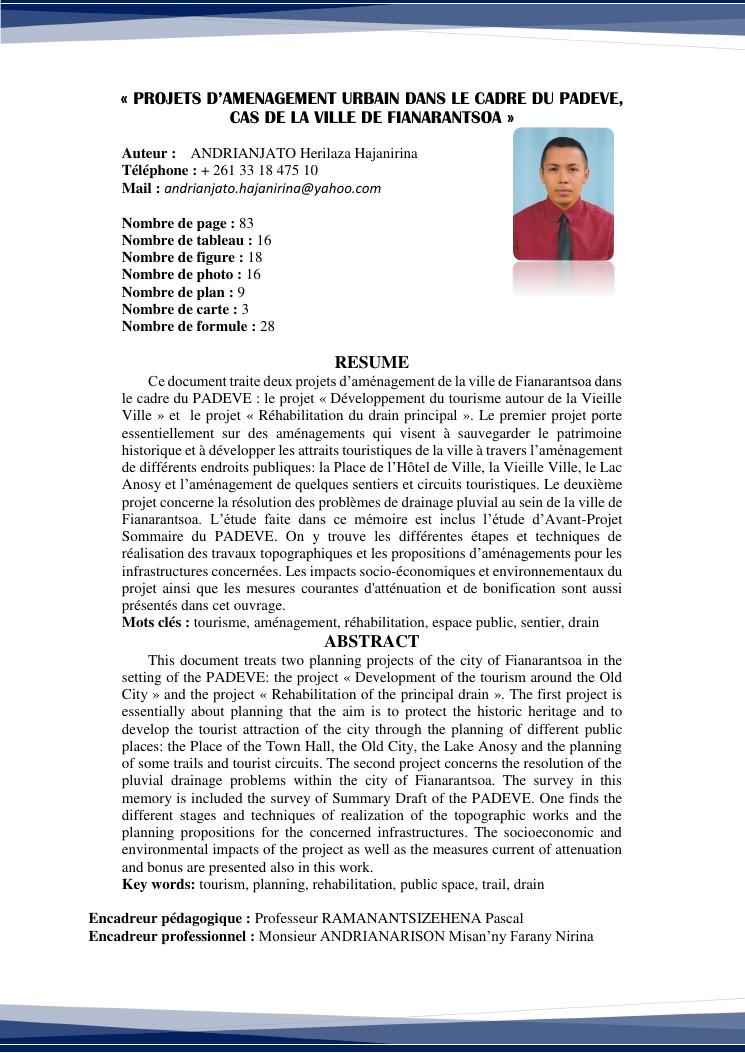 projets d'amenagement urbain dans le cadre du padeve, cas de la ville de fianarantsoa (padeve : programme d'appui et de développement des villes d'equilibre)
