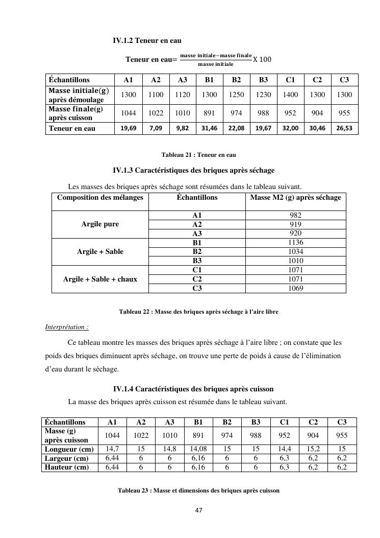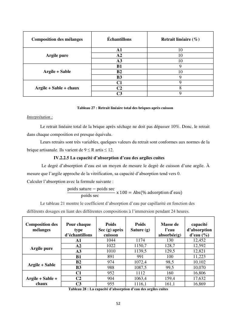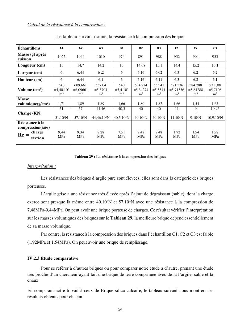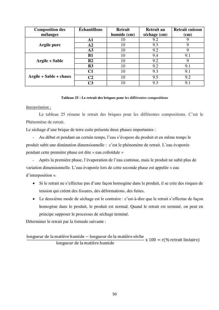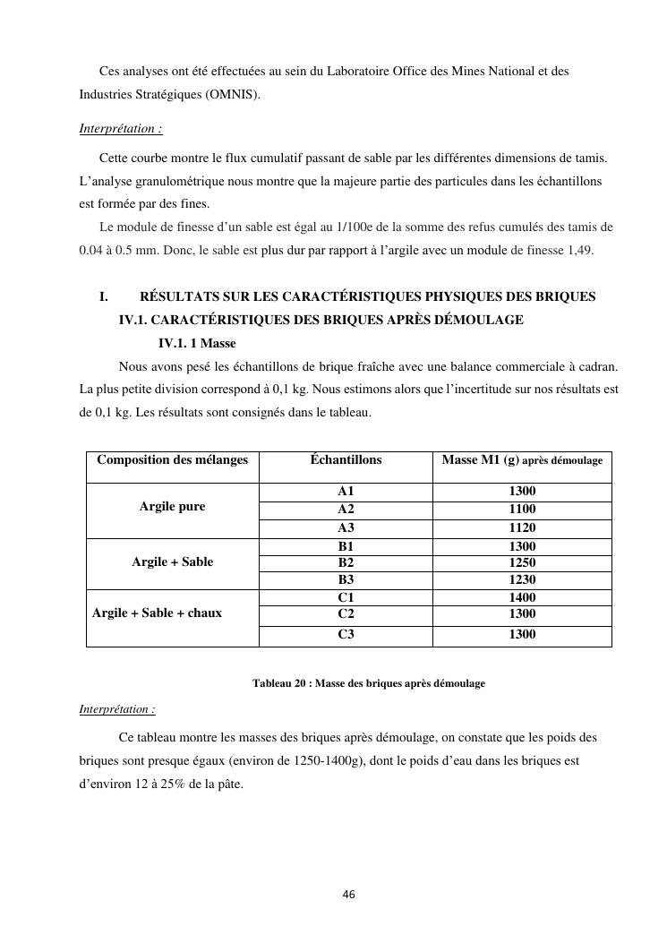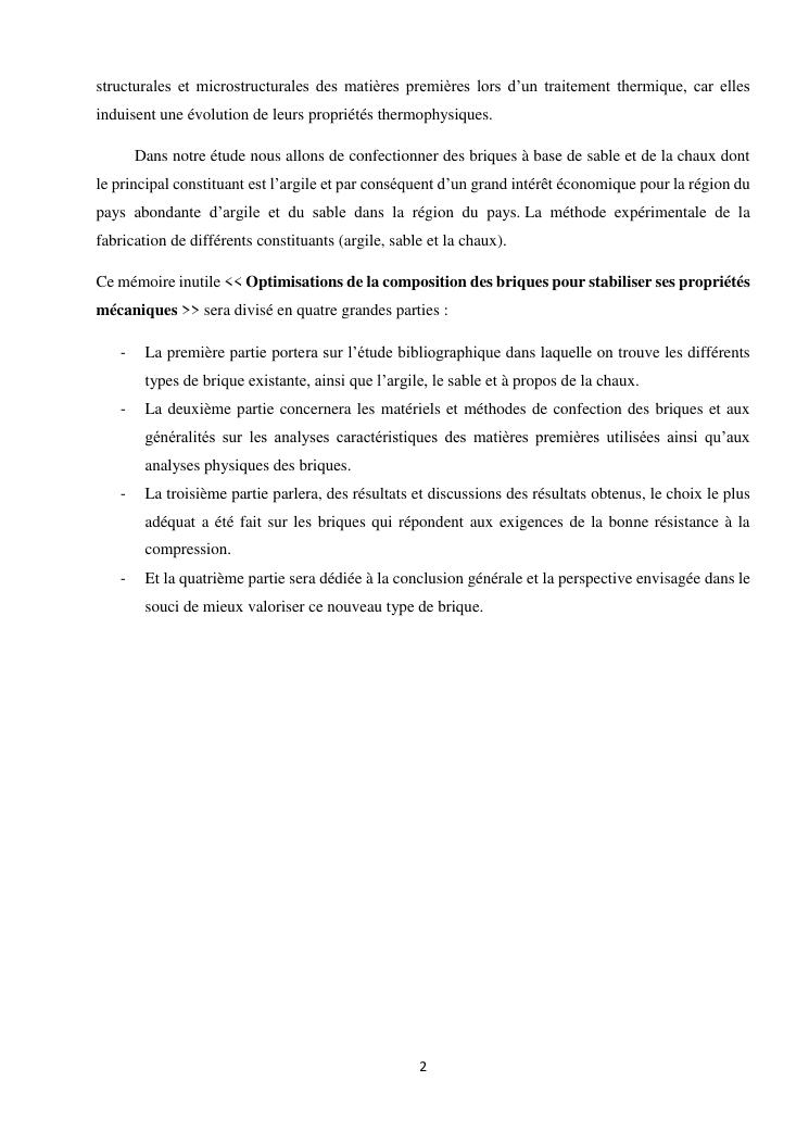 optimisation de la composition des briques pour stabiliser ses propriétés mécaniques