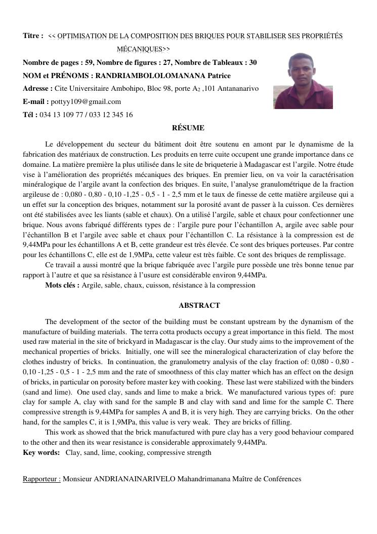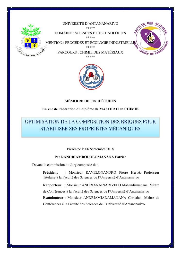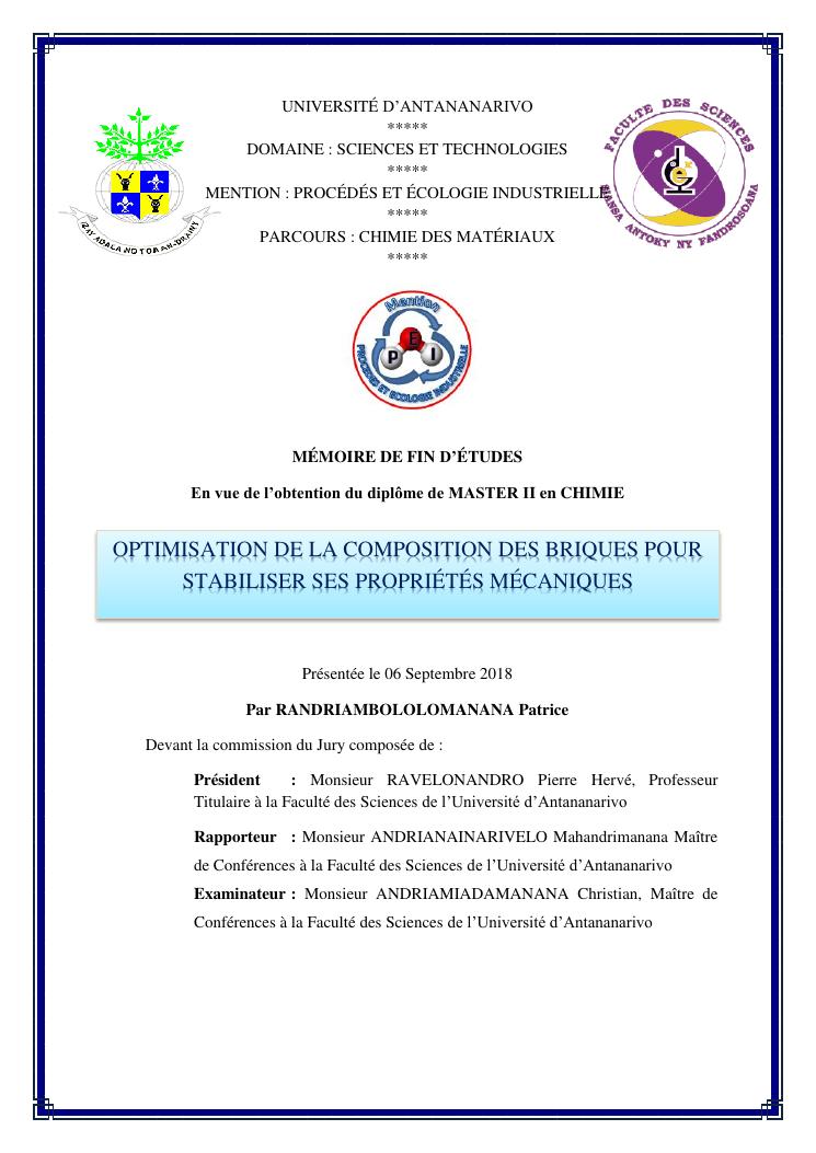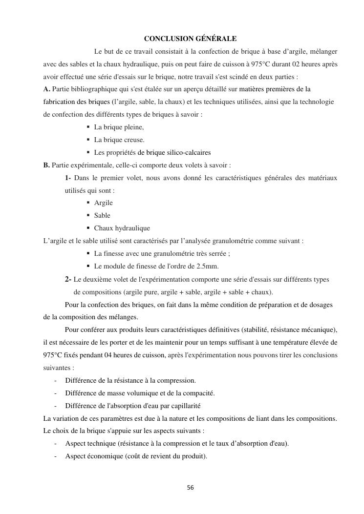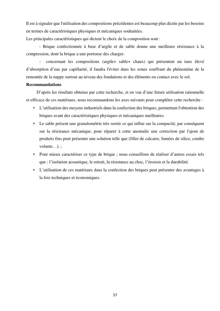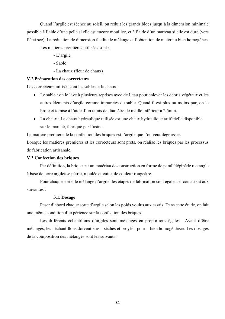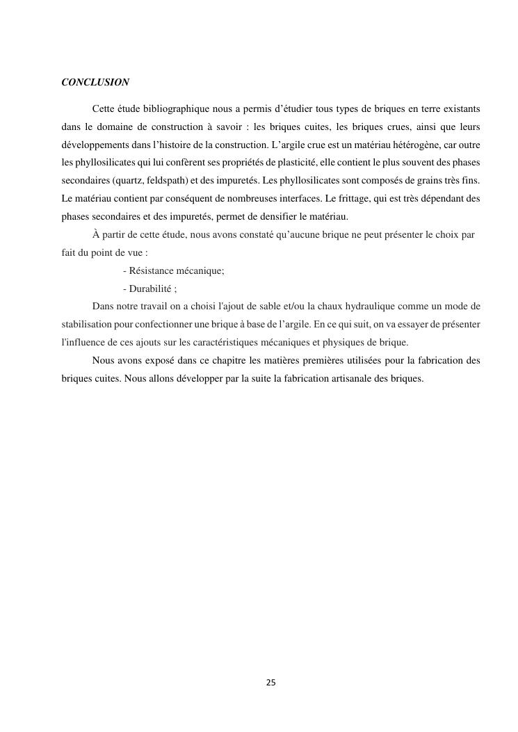 optimisation de la composition des briques pour stabiliser ses propriétés mécaniques