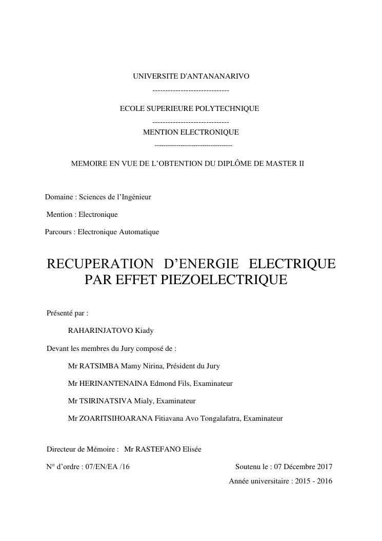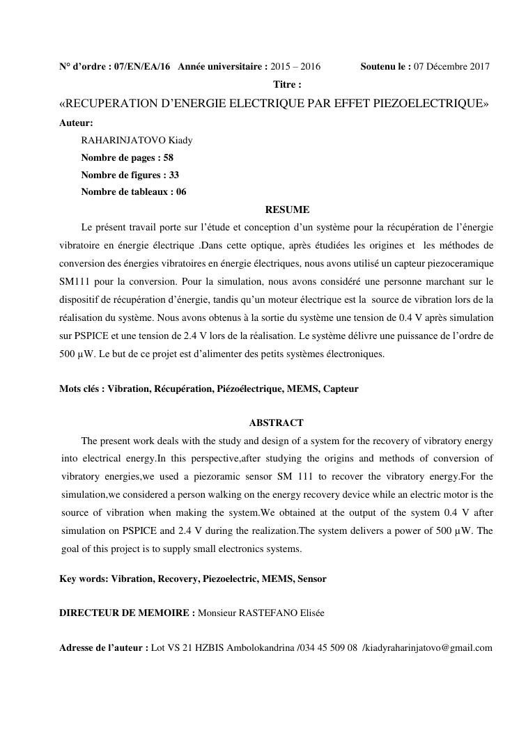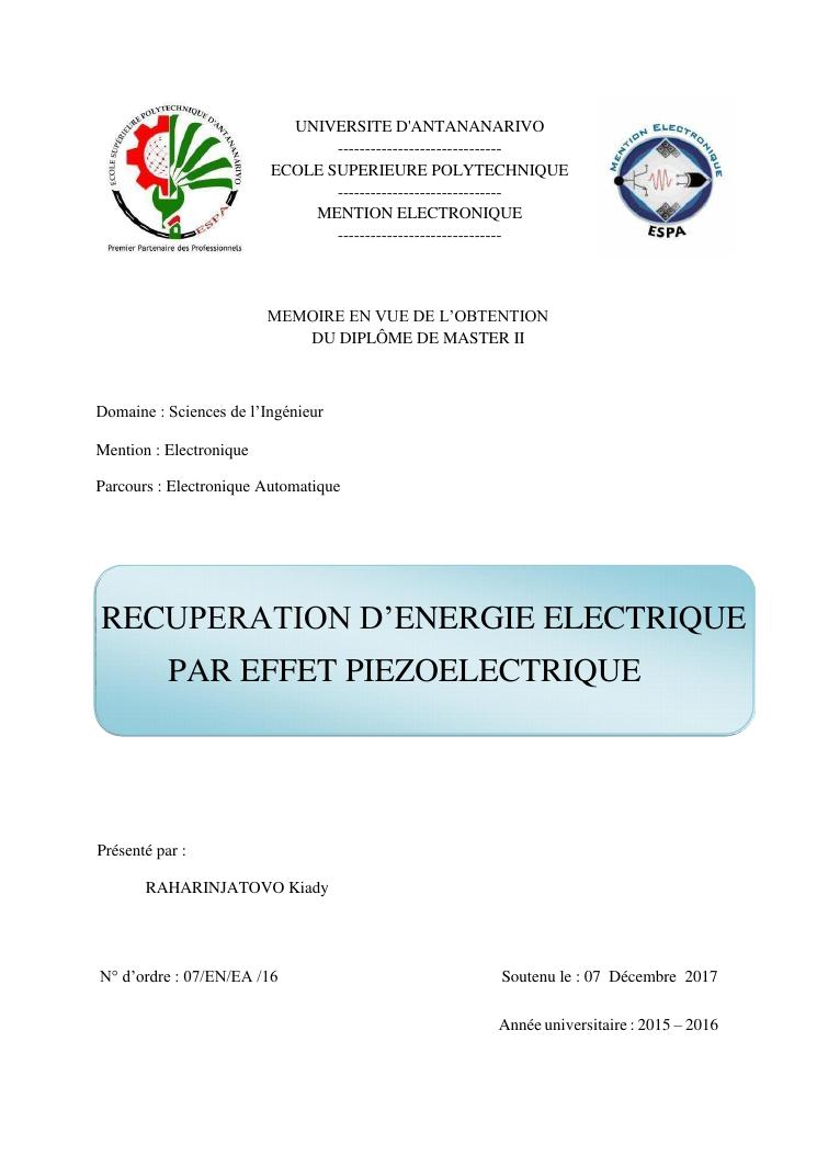 rec uperation d' energie electrique par effet piezoelectrique
