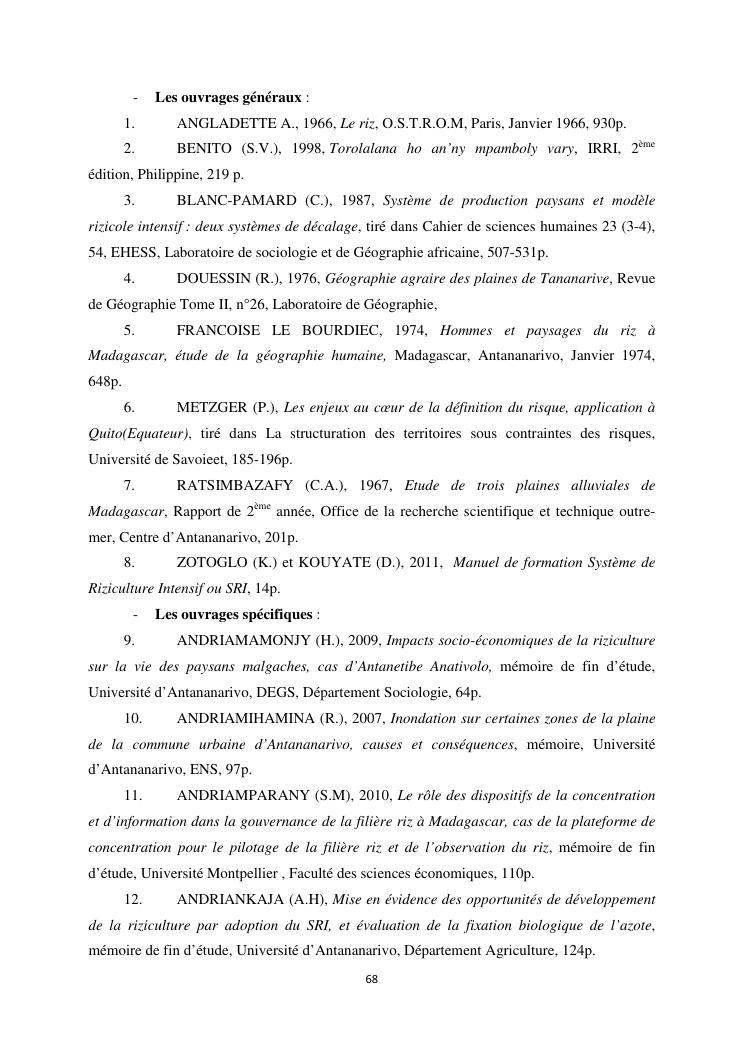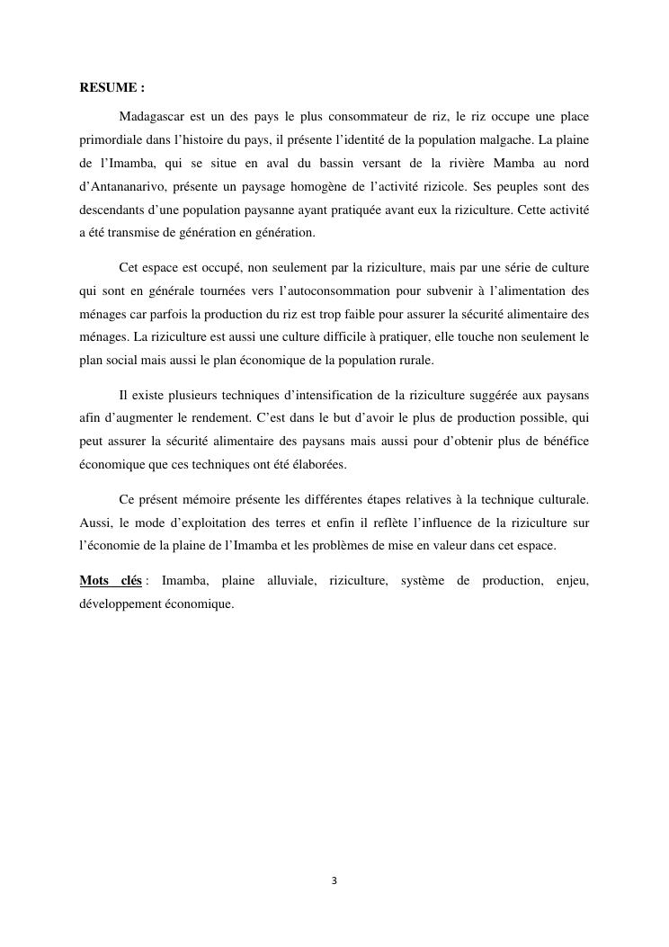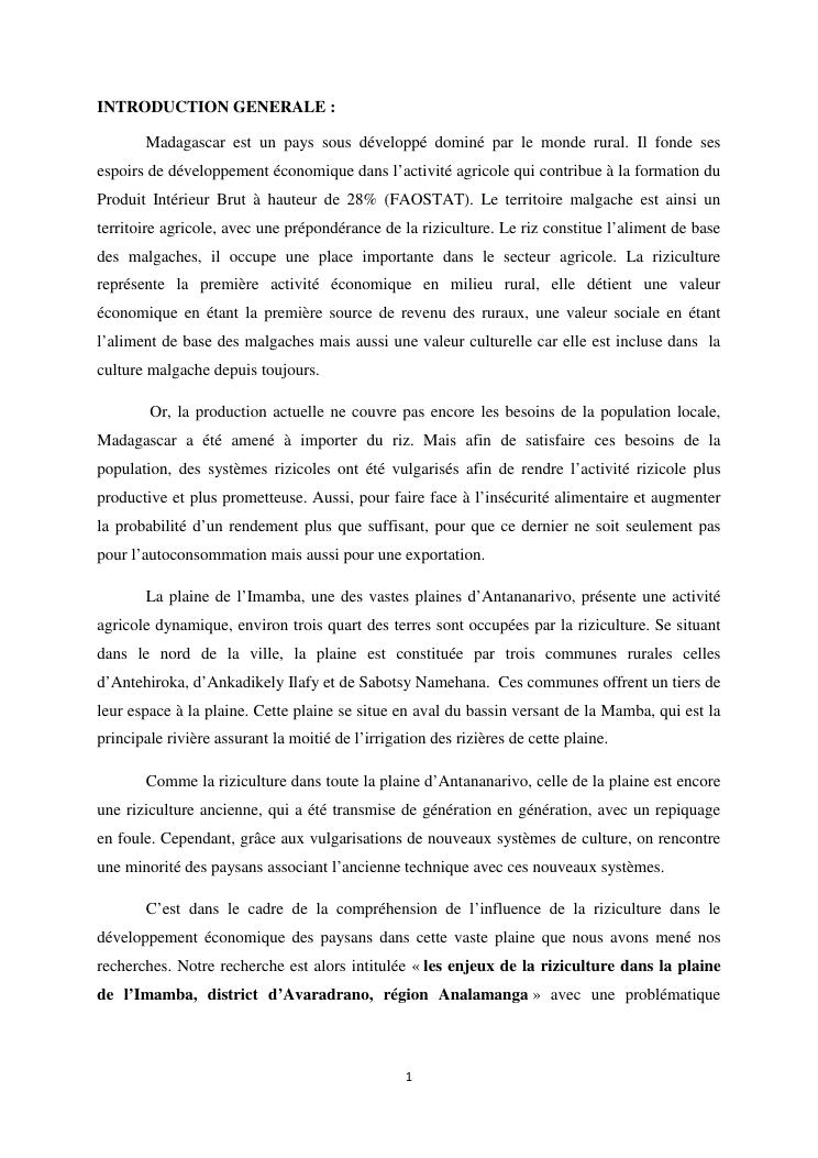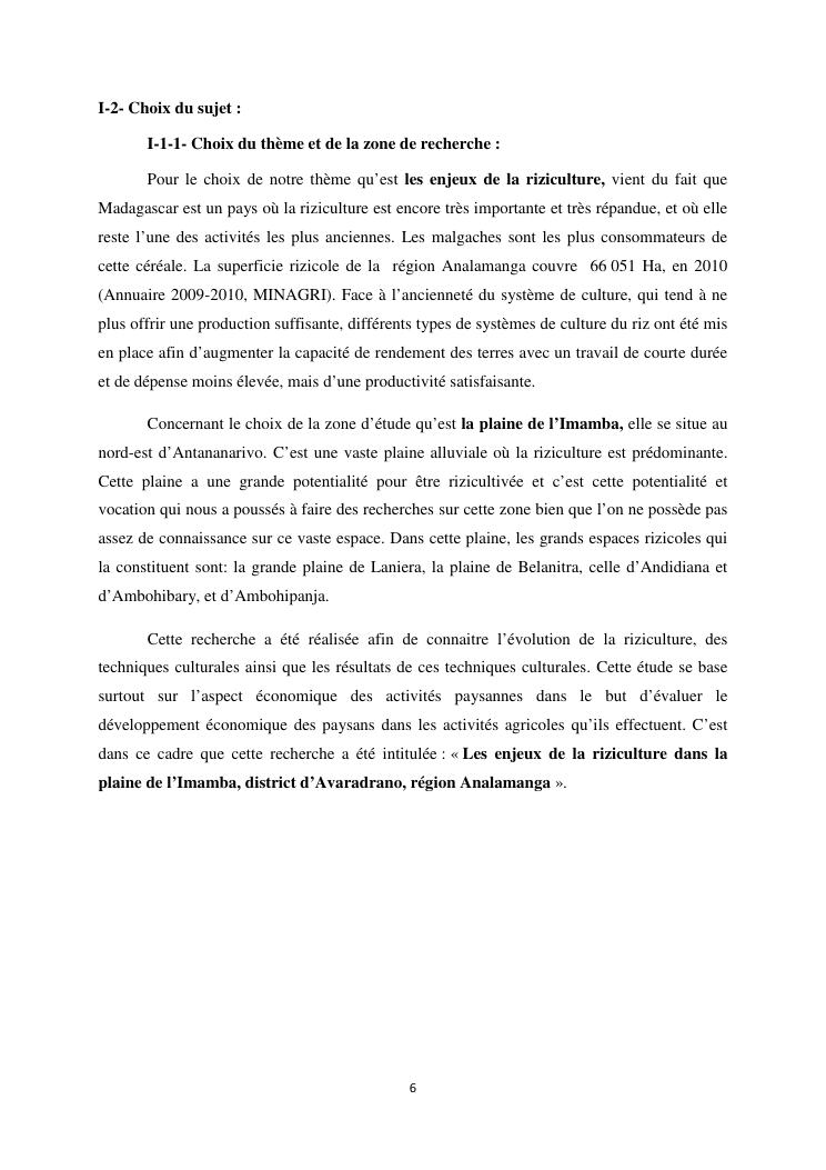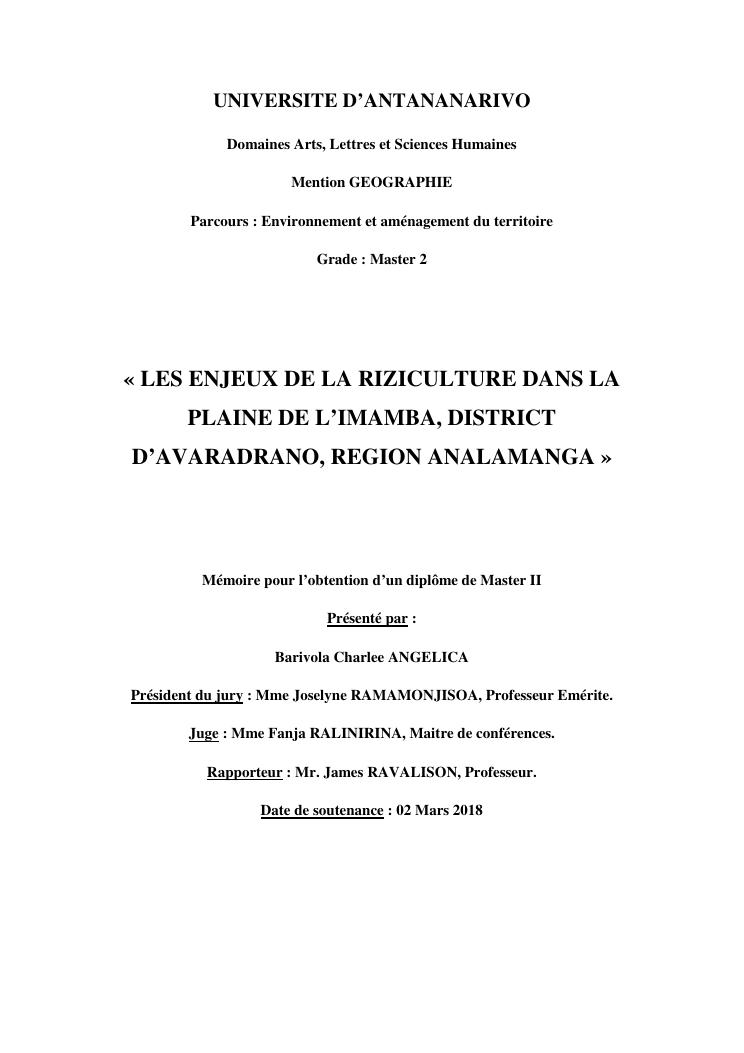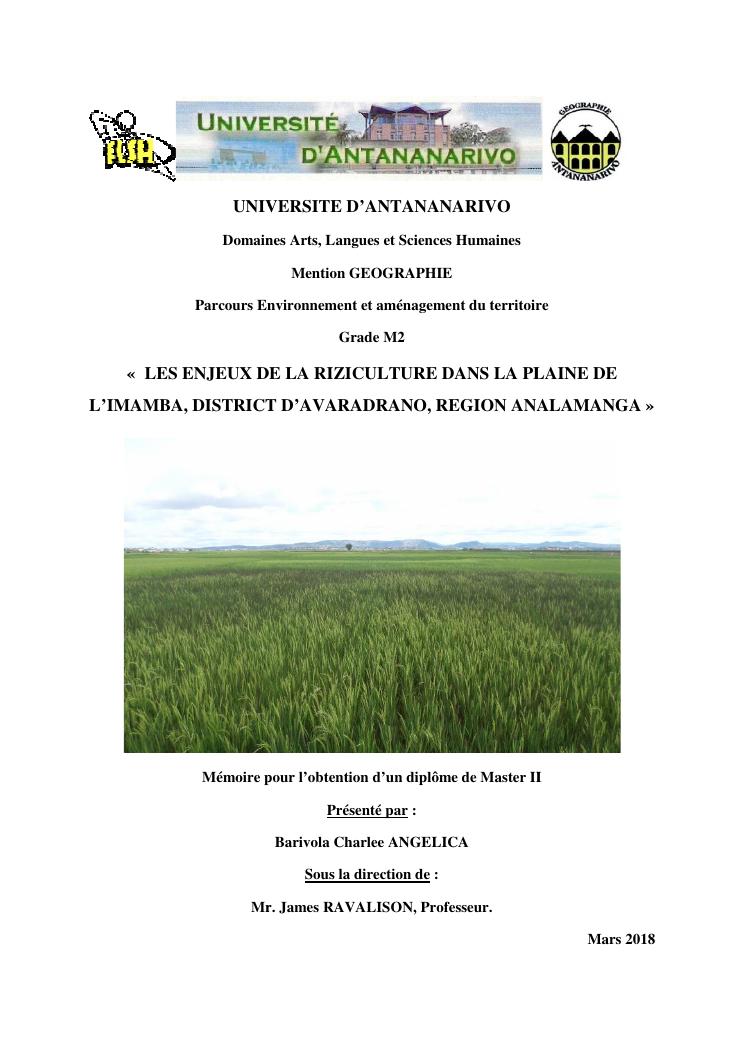 les enjeux de la riziculture dans la plaine de l'imamba, district d'avaradrano, region analamanga