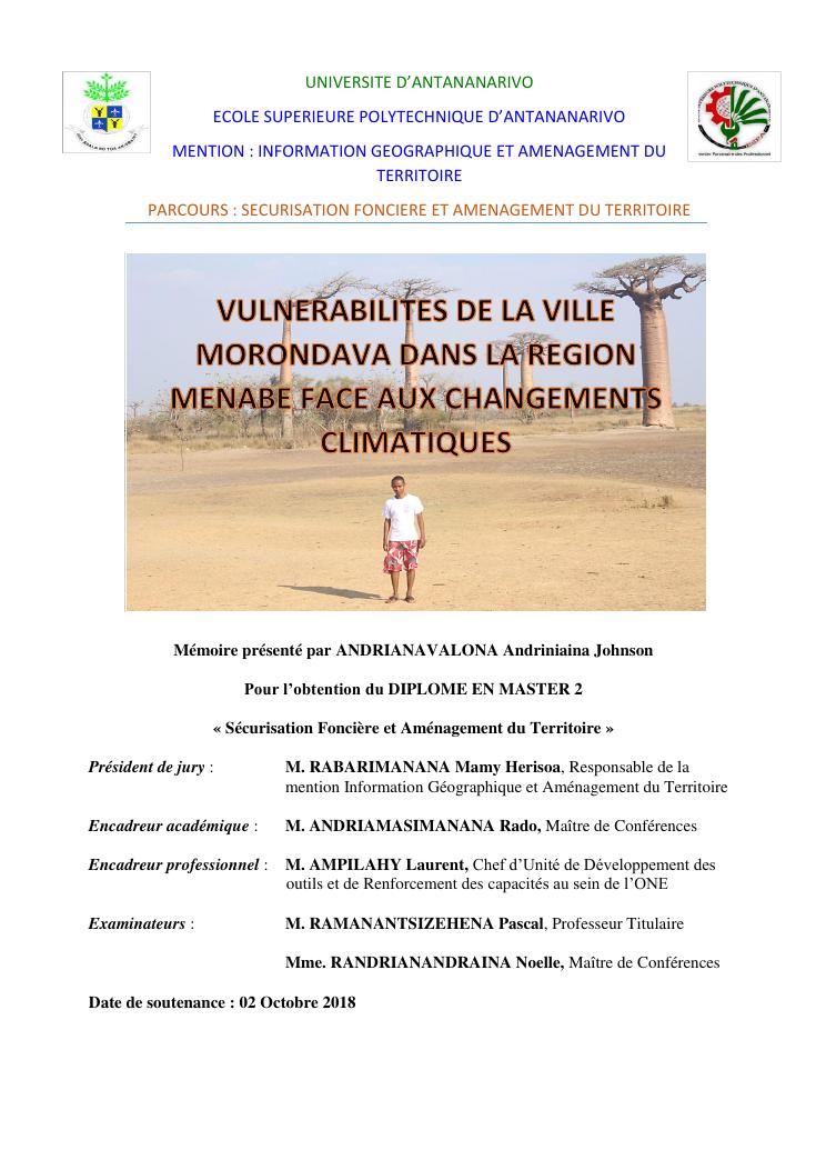 vulnérabilités de la ville de morondava dans la région menabe face au changement climatique