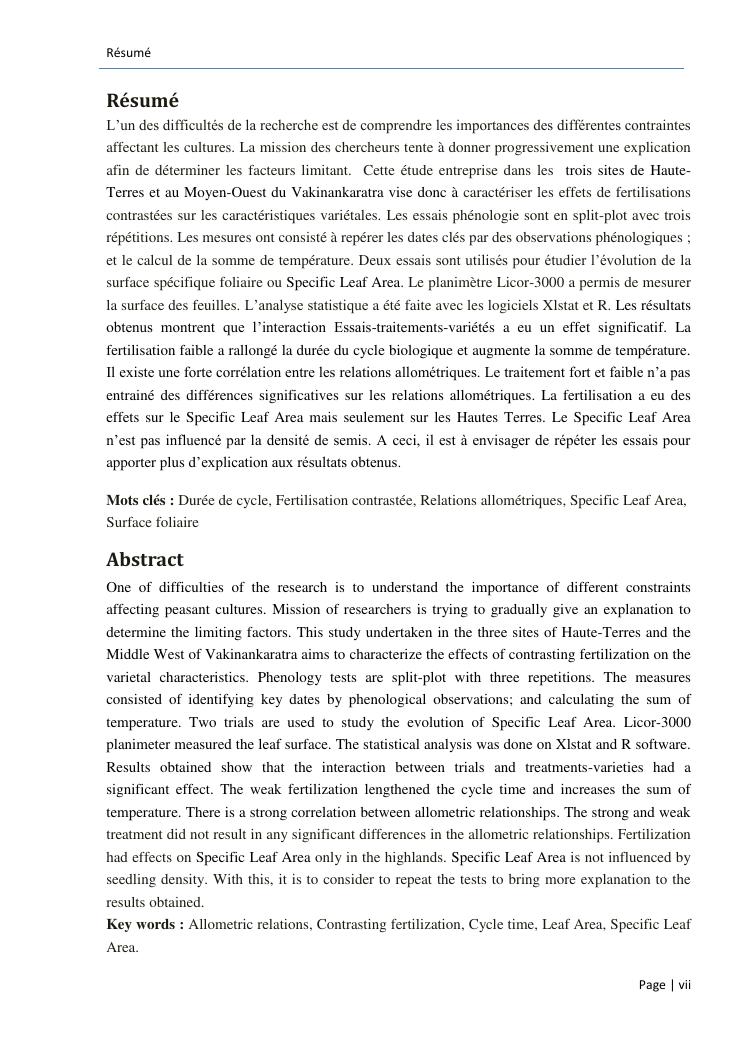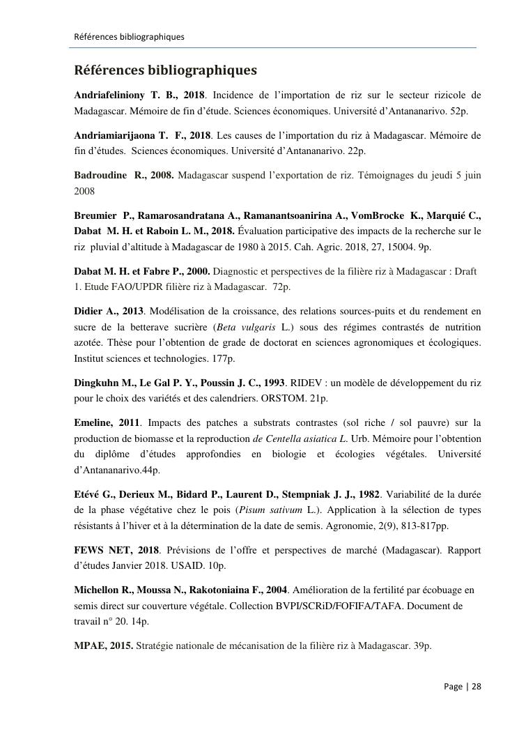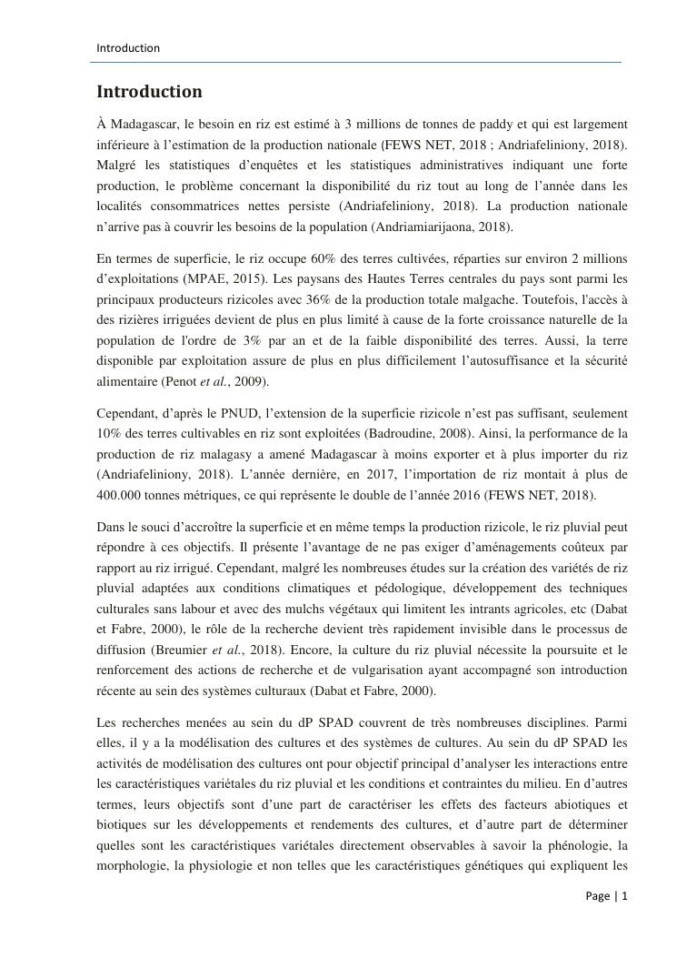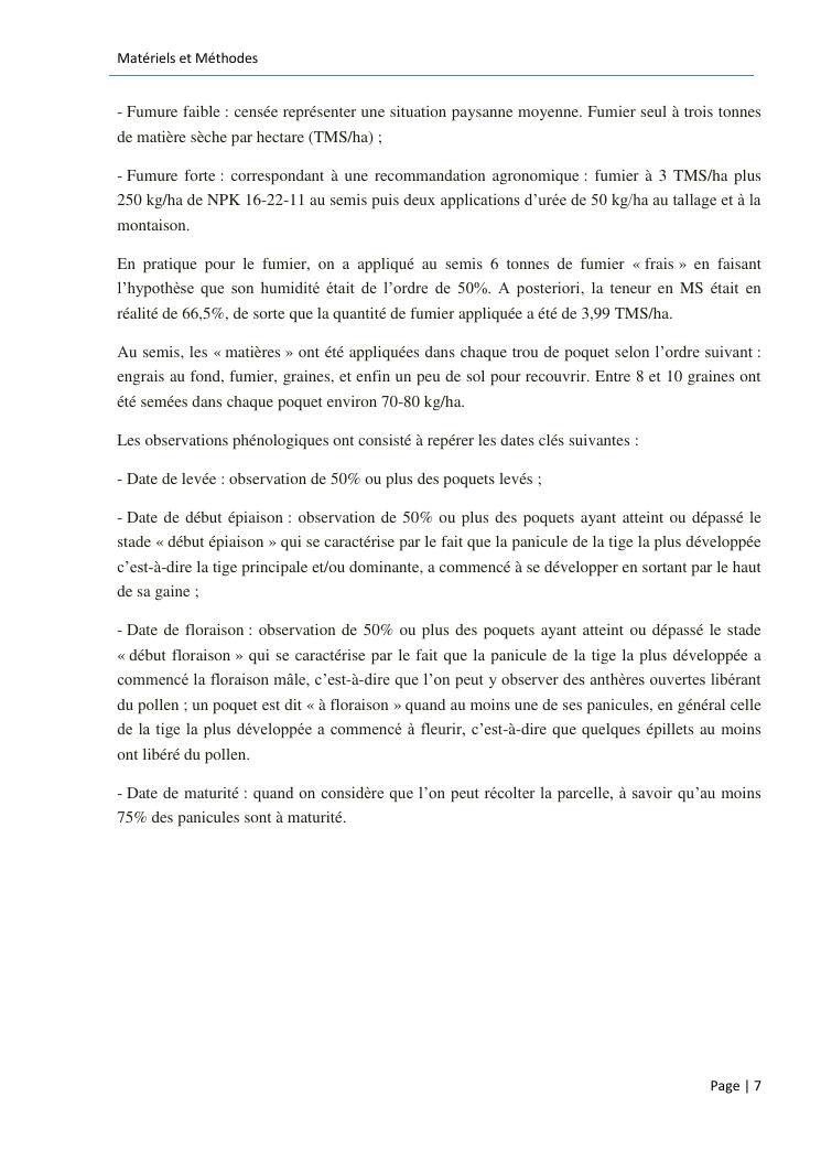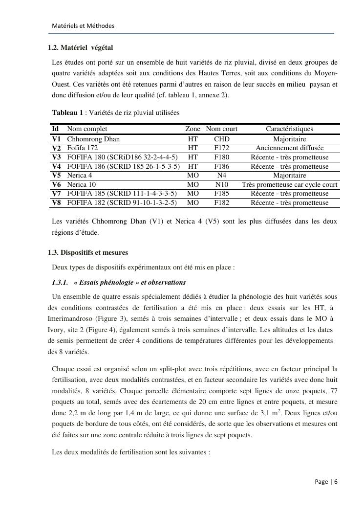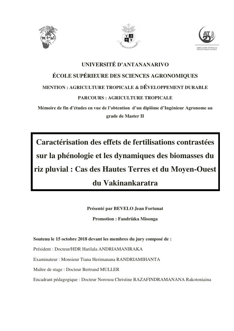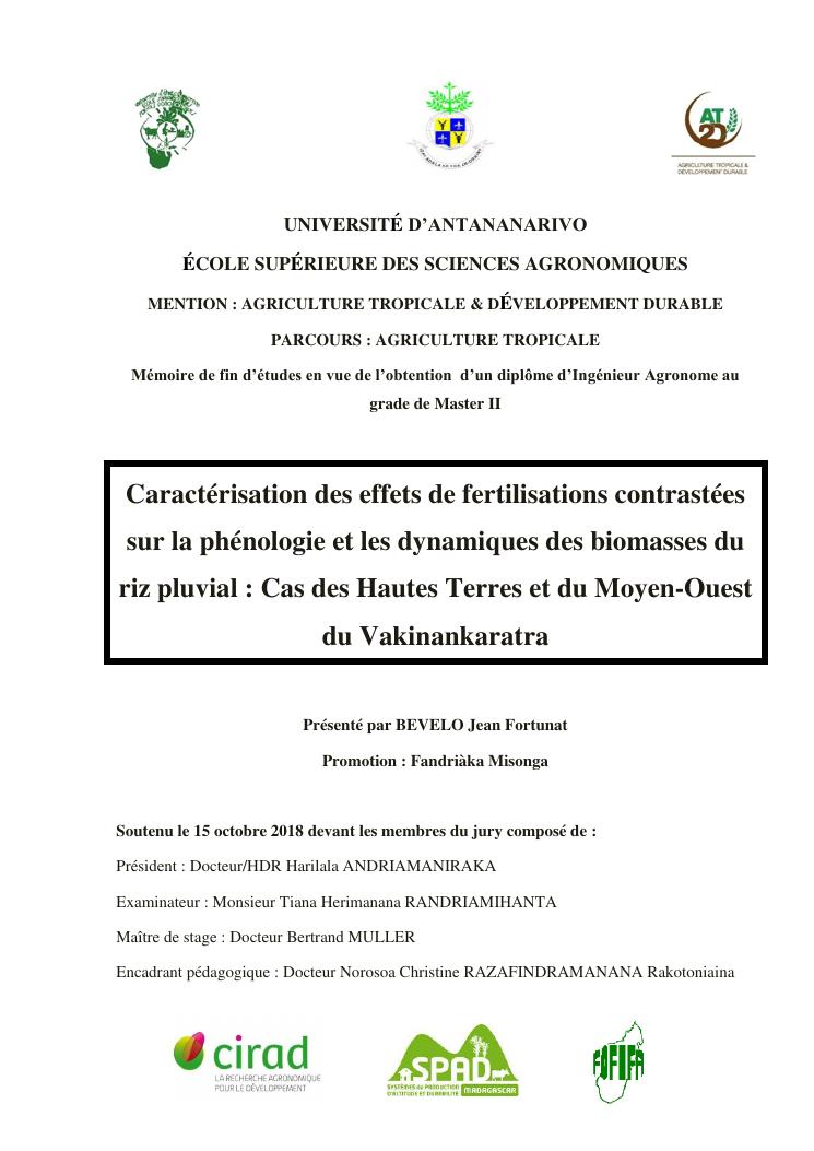 caractérisation des effets de fertilisations contrastées sur la phénologie et les dynamiques des biomasses du riz pluvial : cas des hautes terres et du moyen-ouest du vakinankaratra