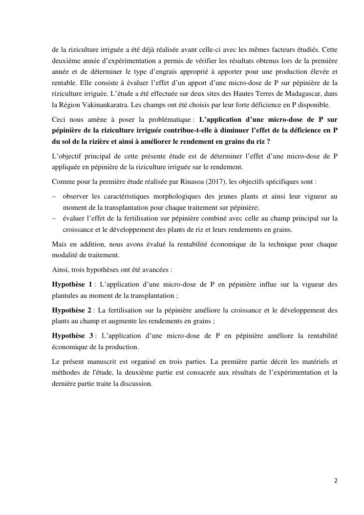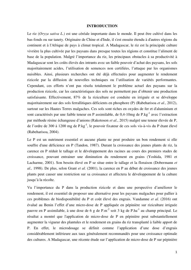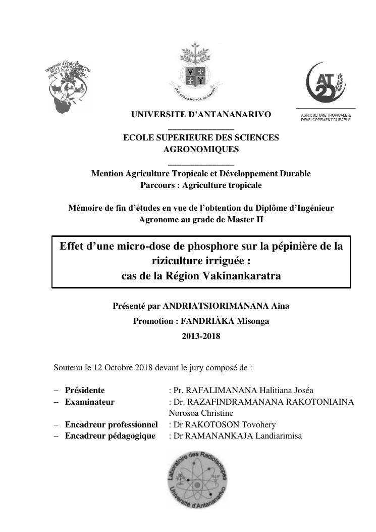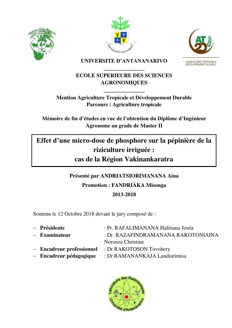 effet d'une micro-dose de phosphore sur la pépinière de la riziculture irriguée : cas de la région vakinankaratra