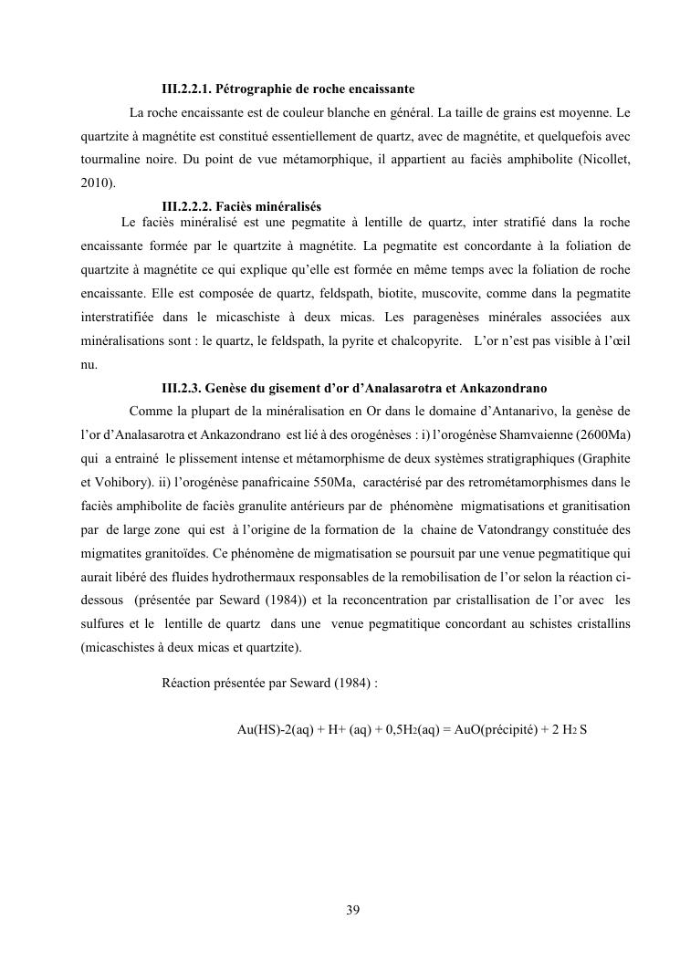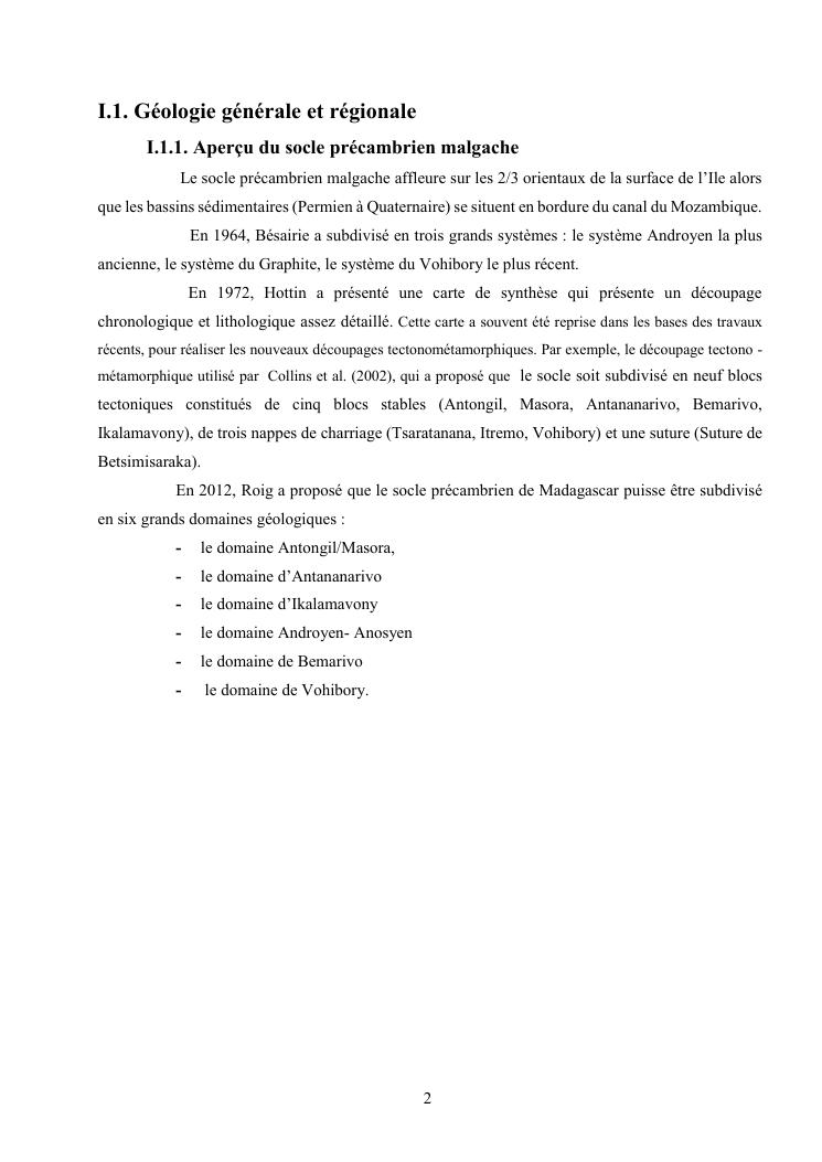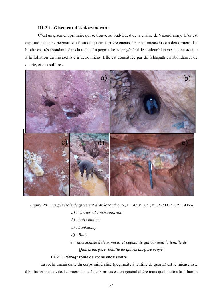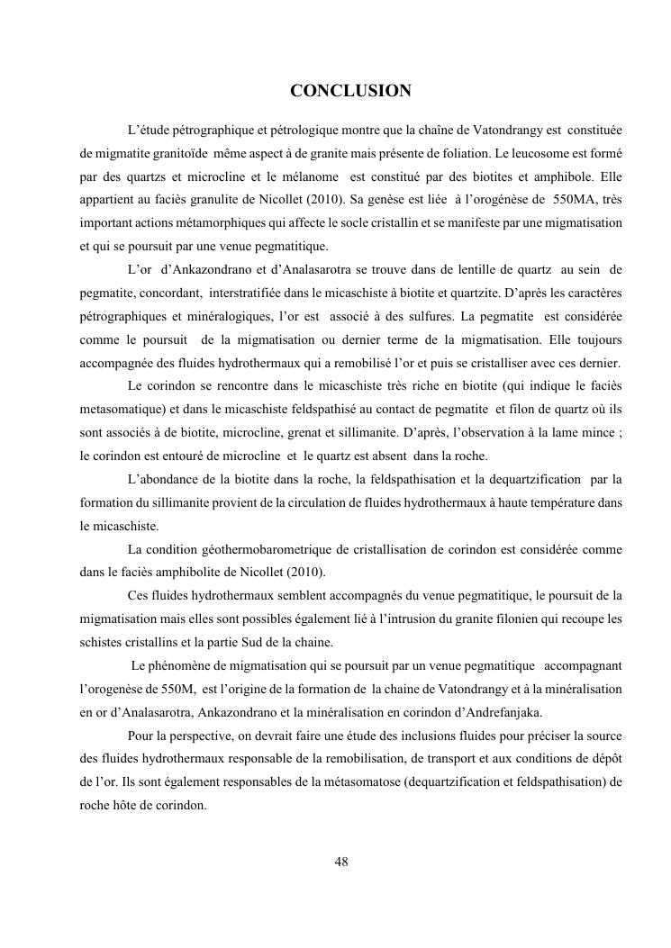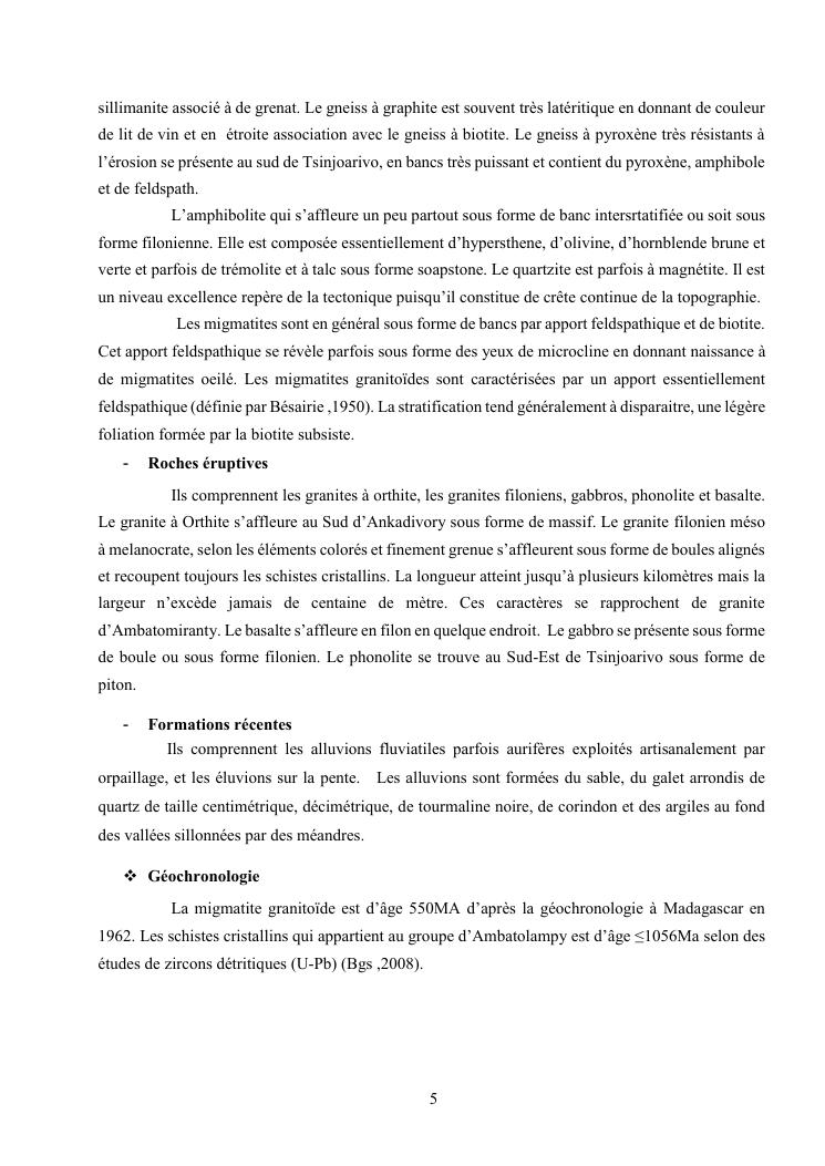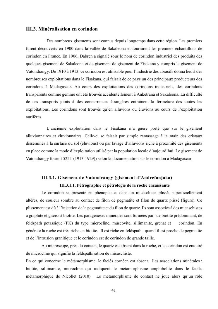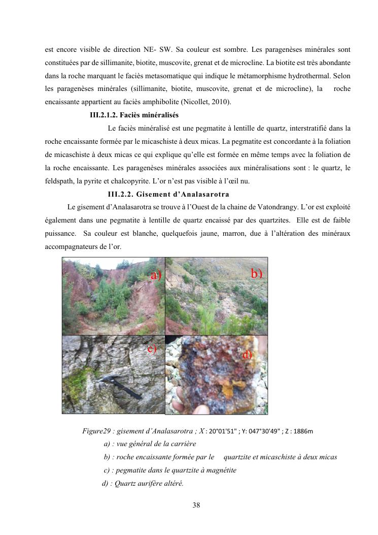 geologie de la chaine de vatondrangy et mineralisation associee en or et en corindon (région de fandriana)