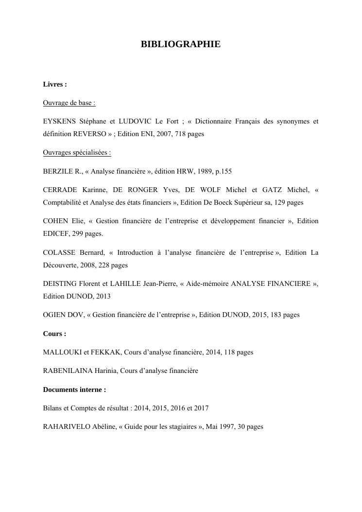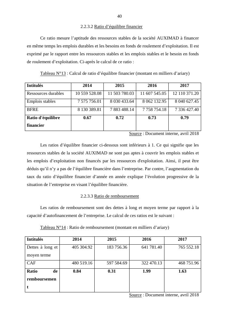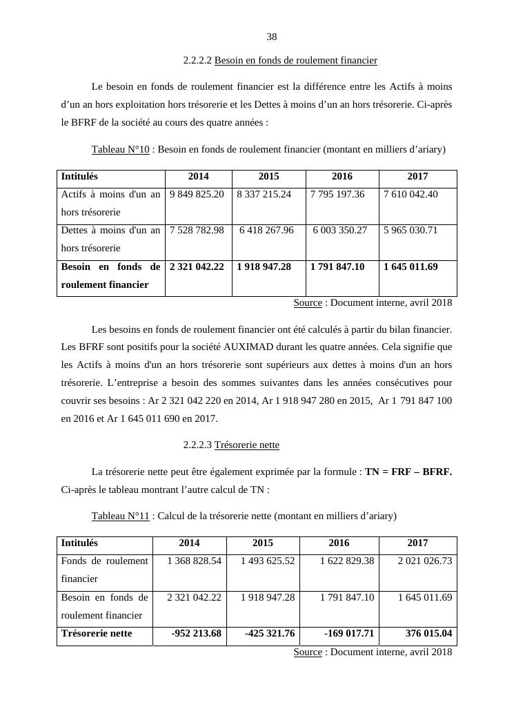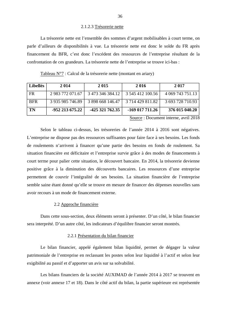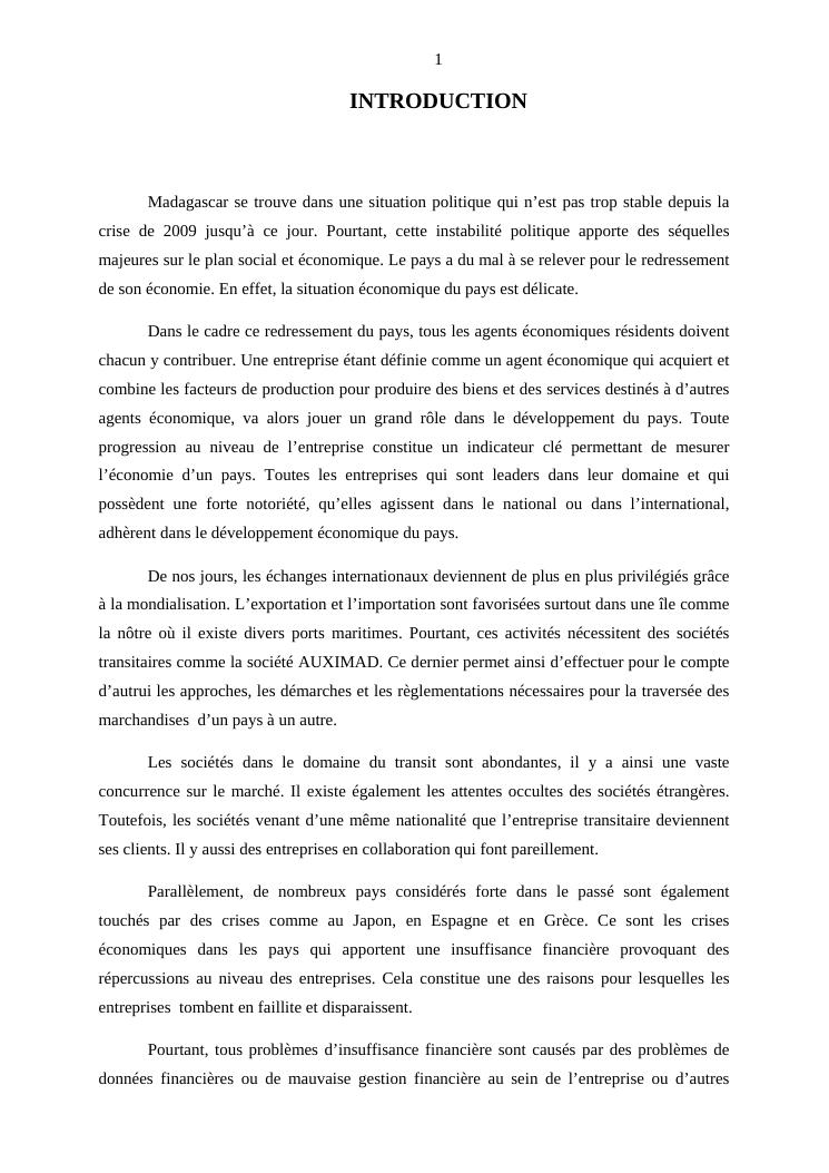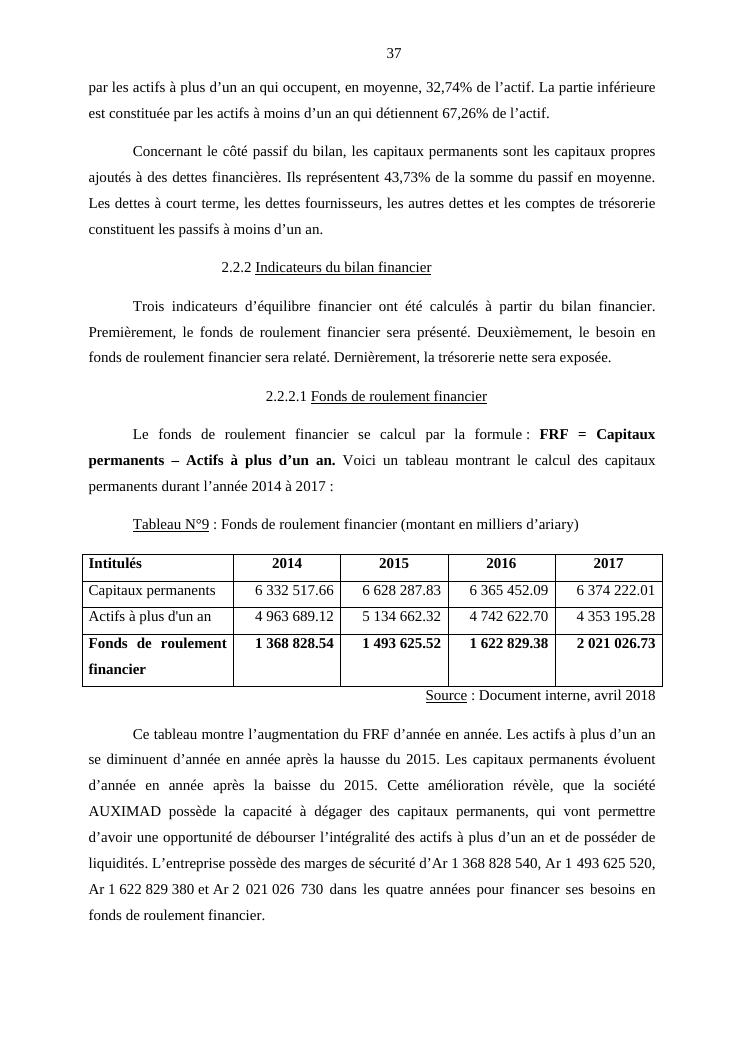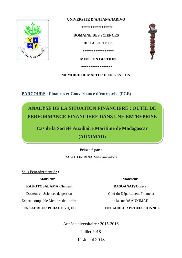 analyse de la situation financiere : outil de performance financiere dans une entreprise cas de la société auxiliaire maritime de madagascar (auximad