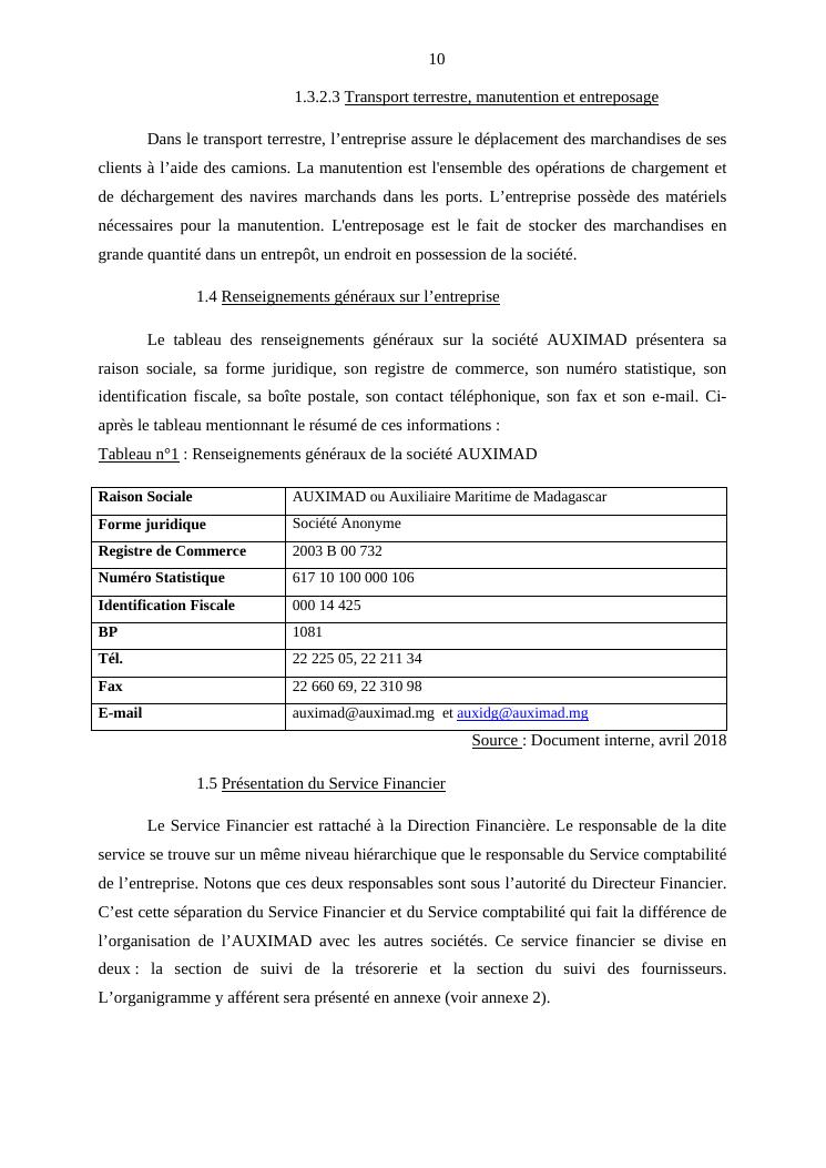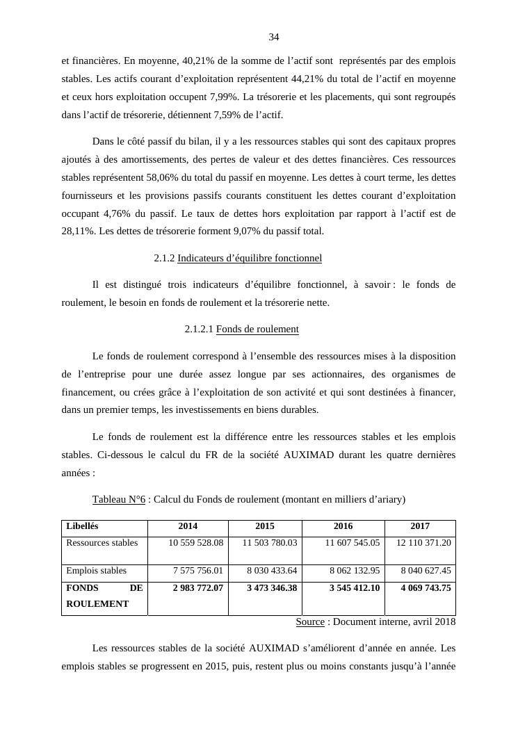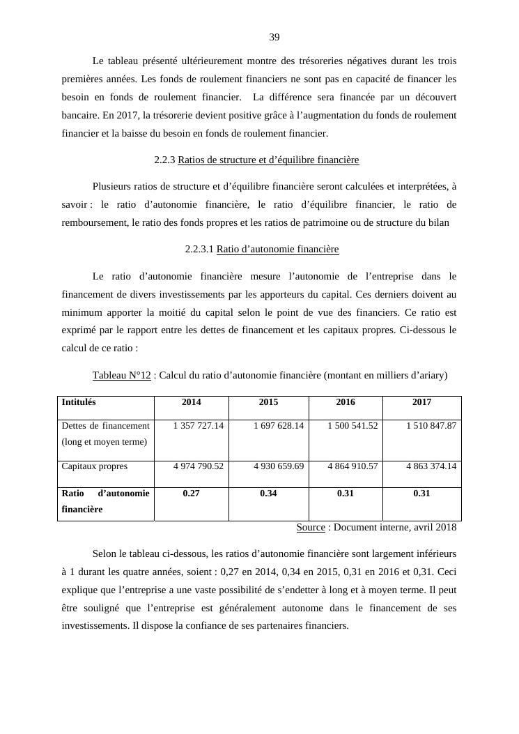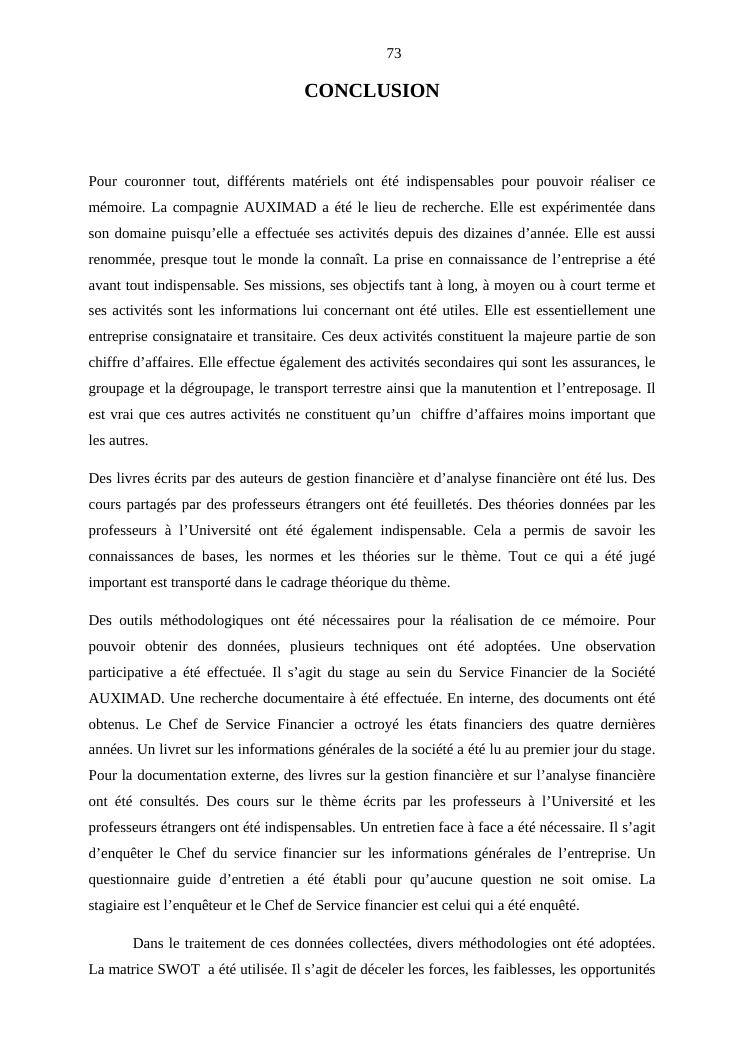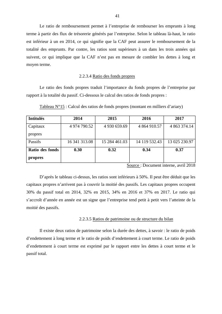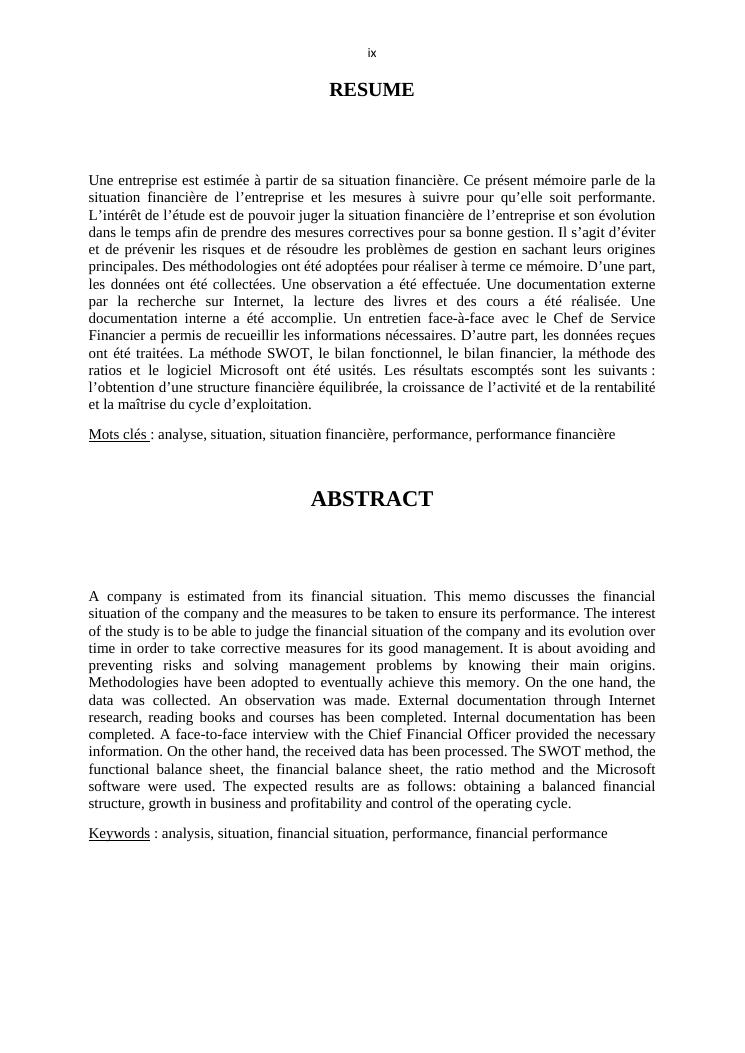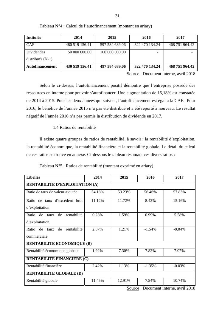 analyse de la situation financiere : outil de performance financiere dans une entreprise cas de la société auxiliaire maritime de madagascar (auximad