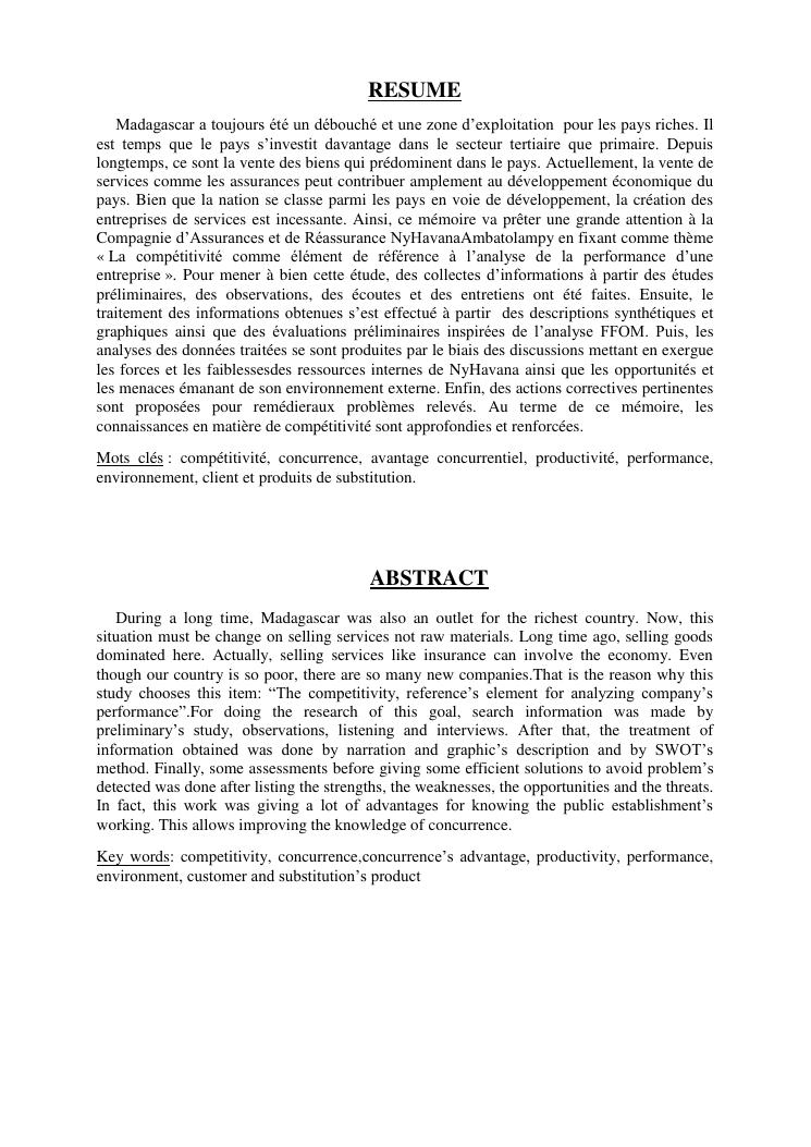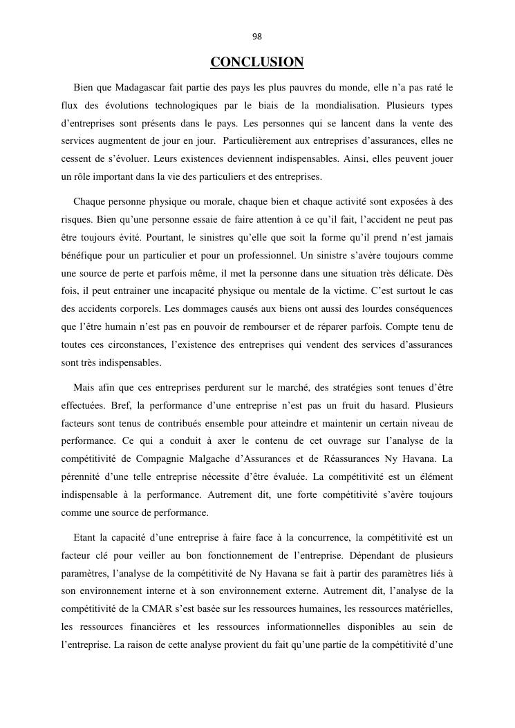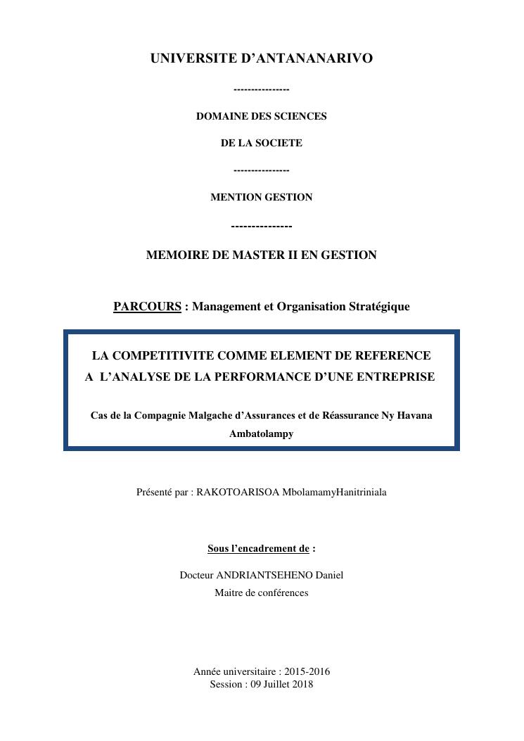 la competitivite comme element de reference a l'analyse de la performance d'une entreprise cas de la compagnie malgache d'assurances et de réassurance ny havana ambatolampy