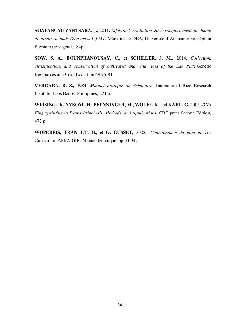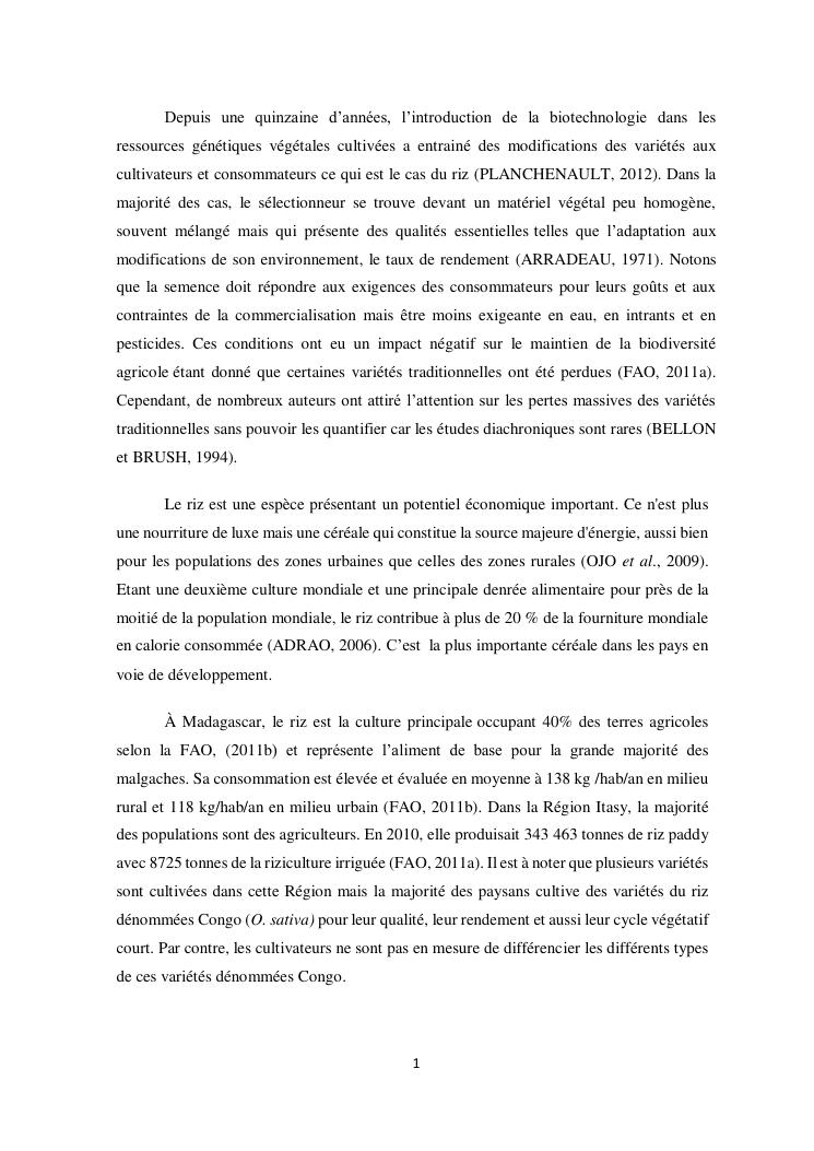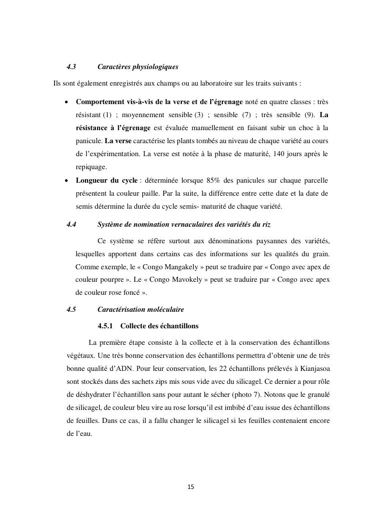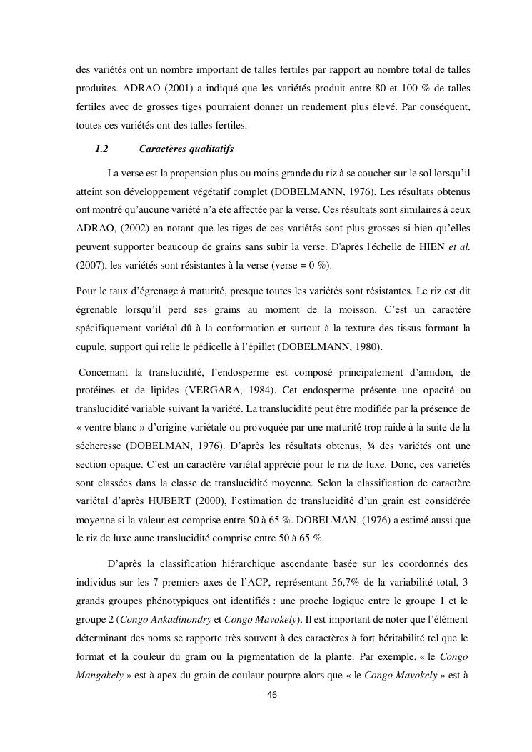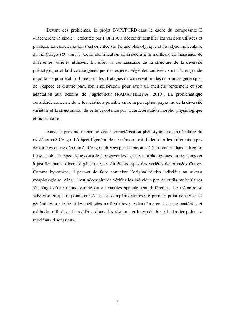 caractérisations phénotypique et moléculaire des variétés du riz dénommé congo (oryza sativa)