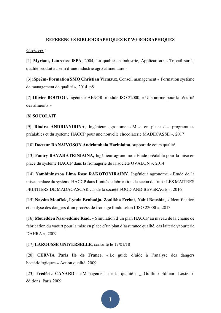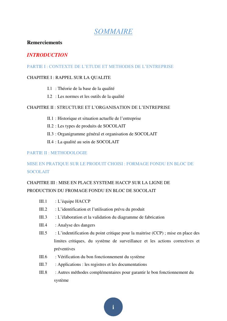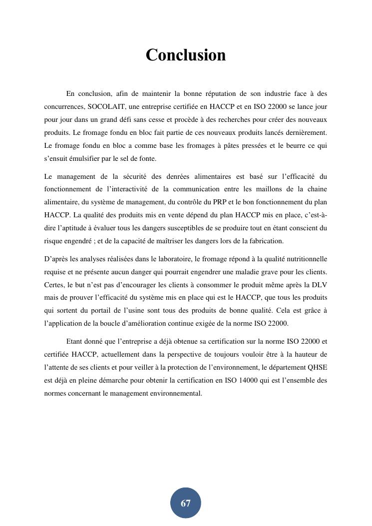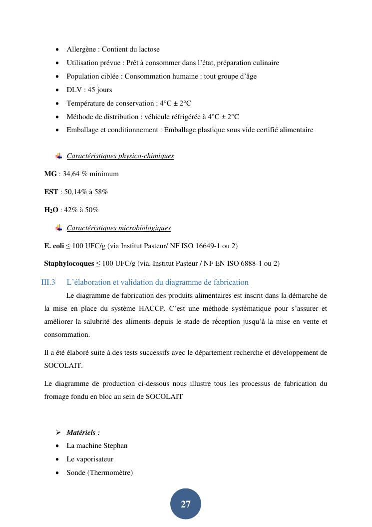 contribution à la mise en place d'un plan haccp sur la ligne de production du fromage fondu en bloc au sein de la société socolait antsirabe