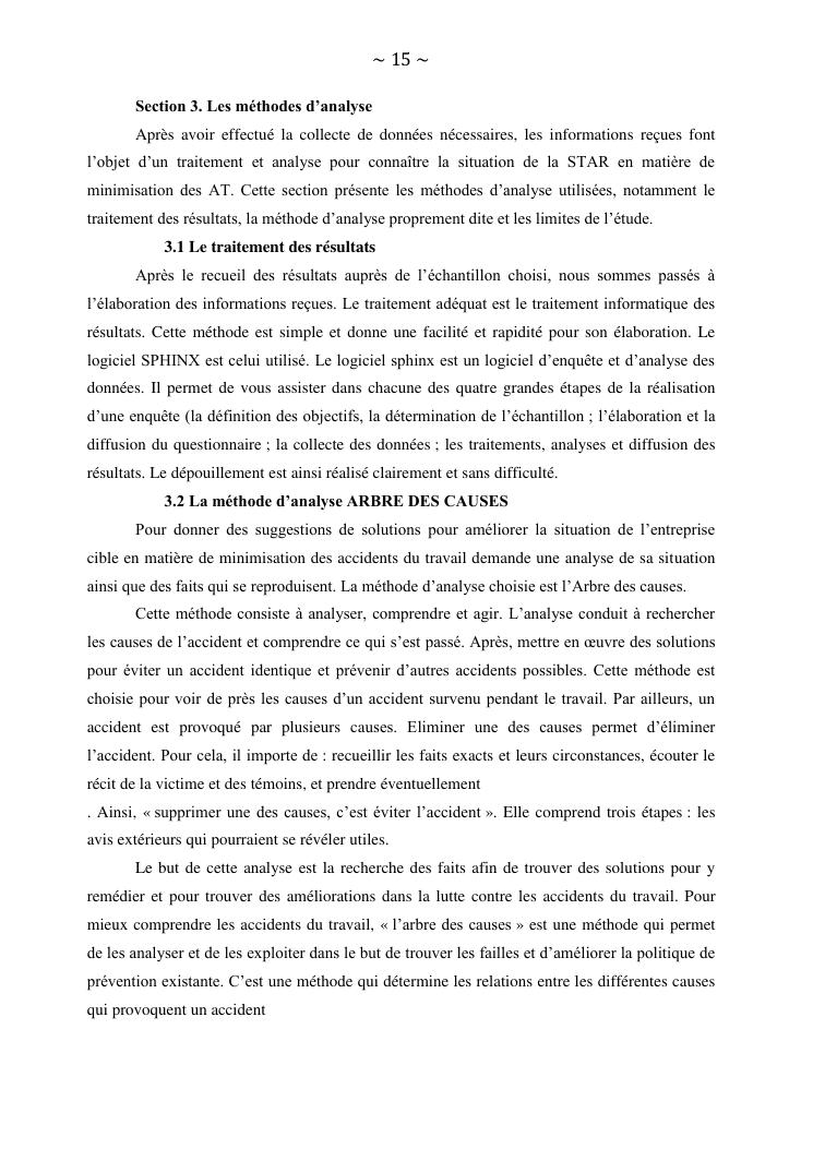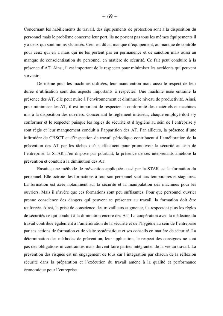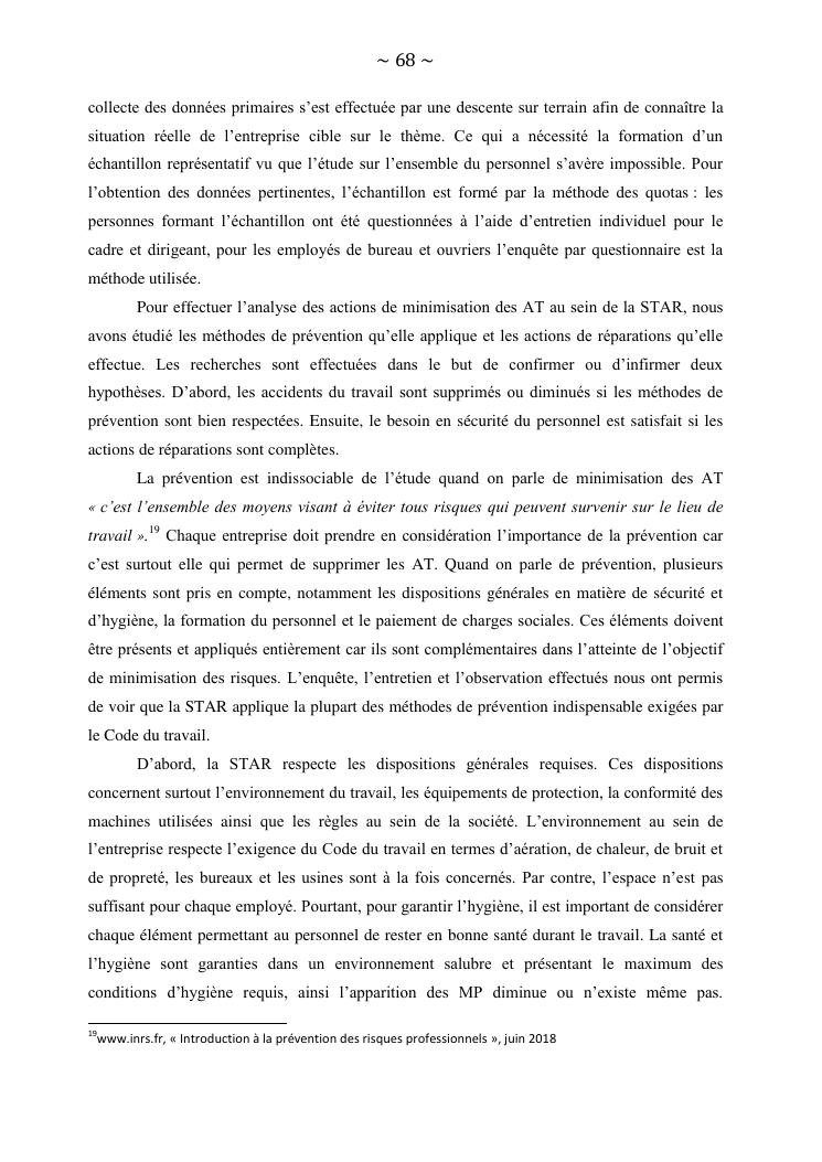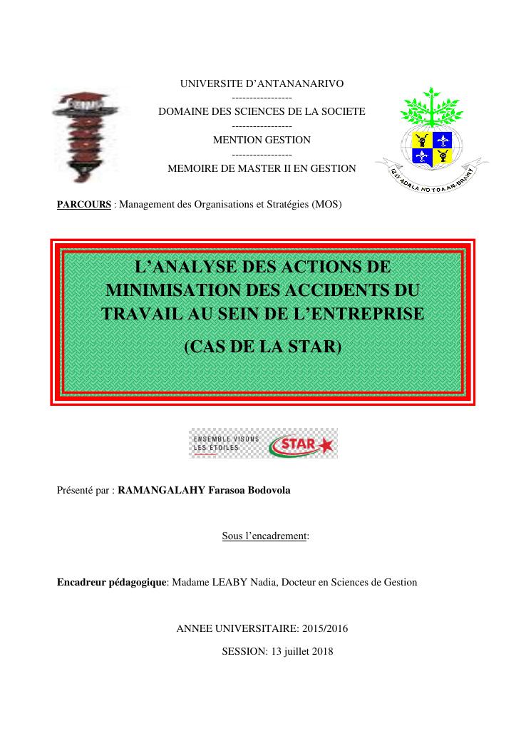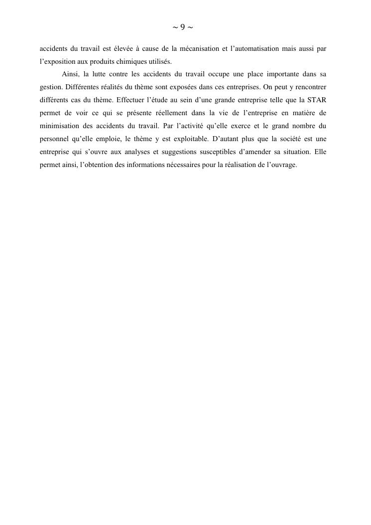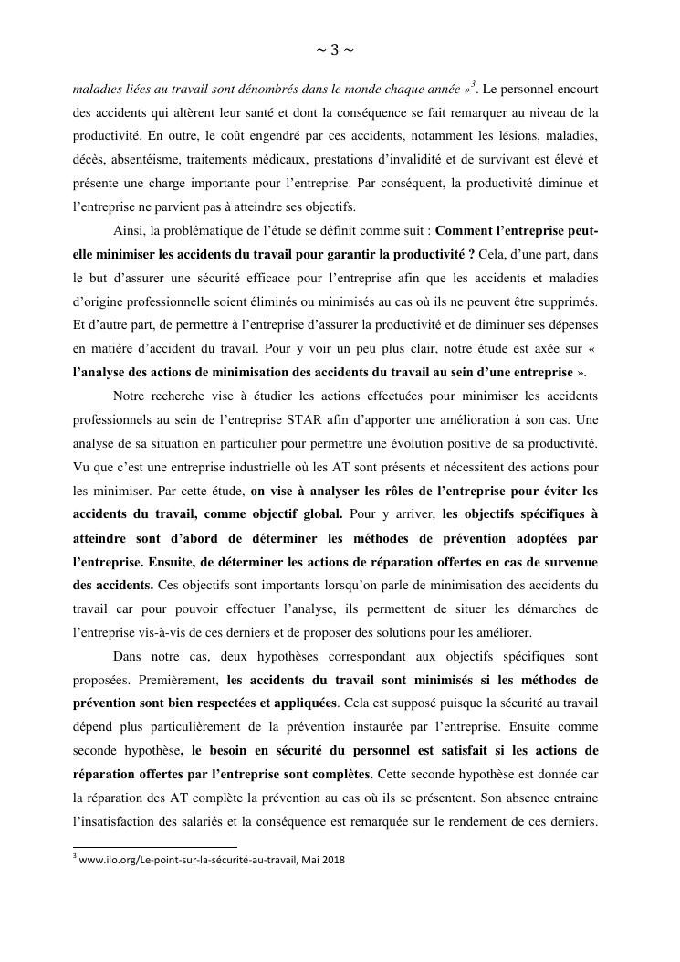 l'analyse des actions de minimisation des accidents du travail au sein de l'entreprise (cas de la star)