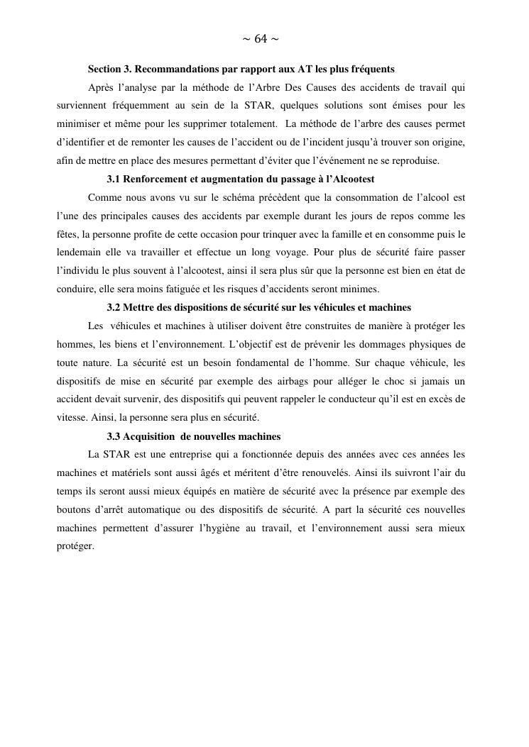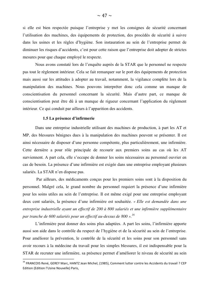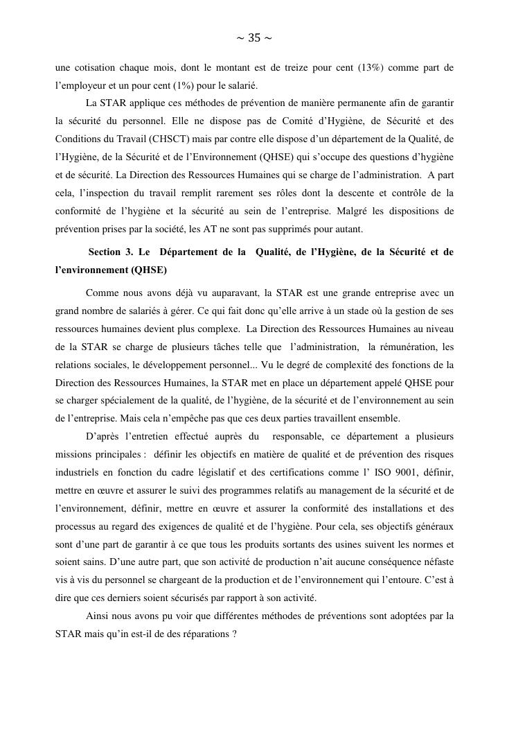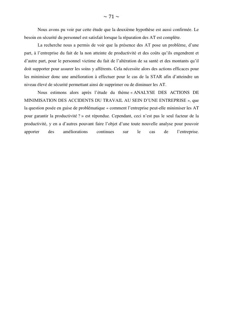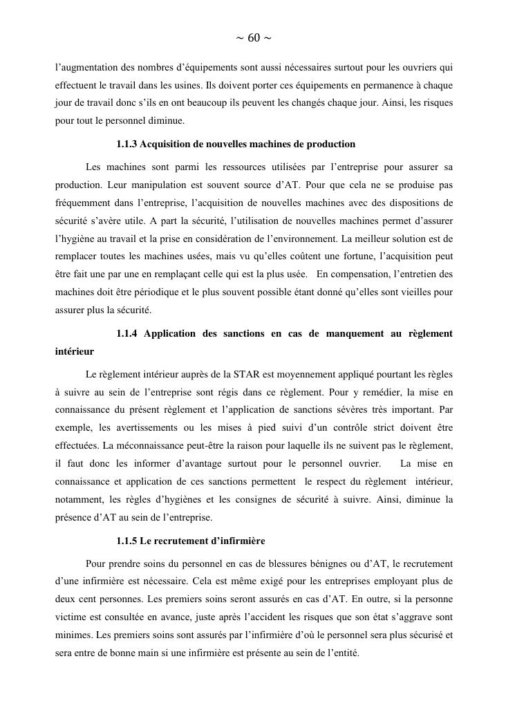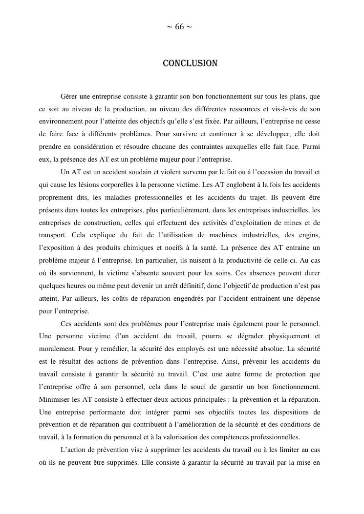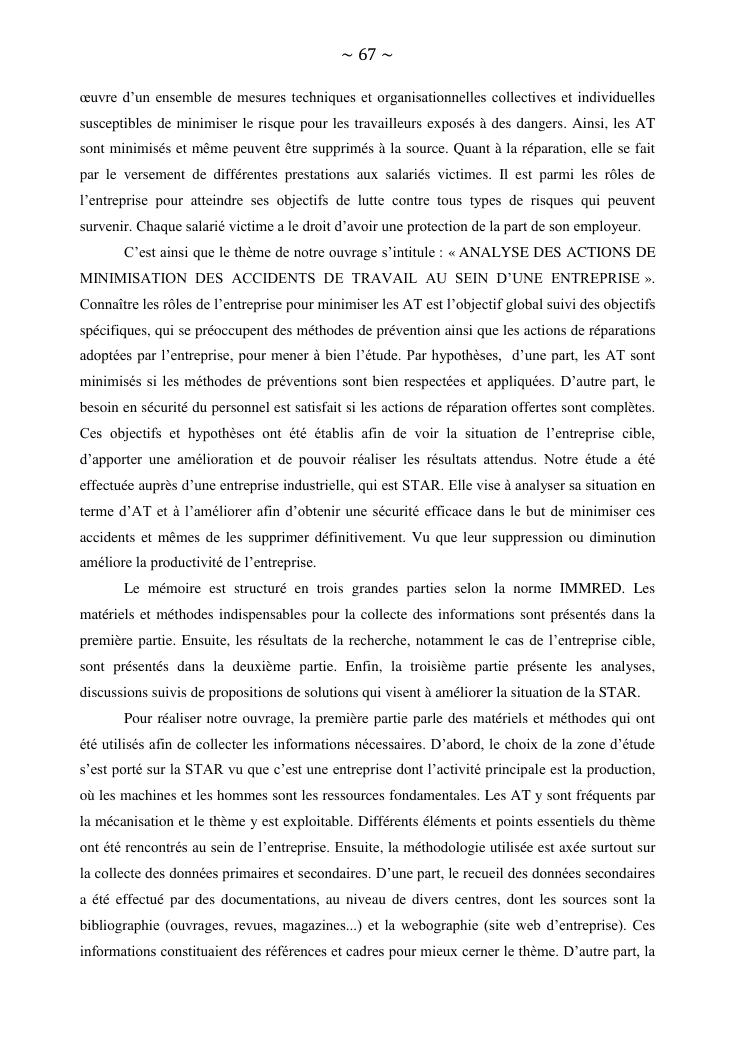 l'analyse des actions de minimisation des accidents du travail au sein de l'entreprise (cas de la star)