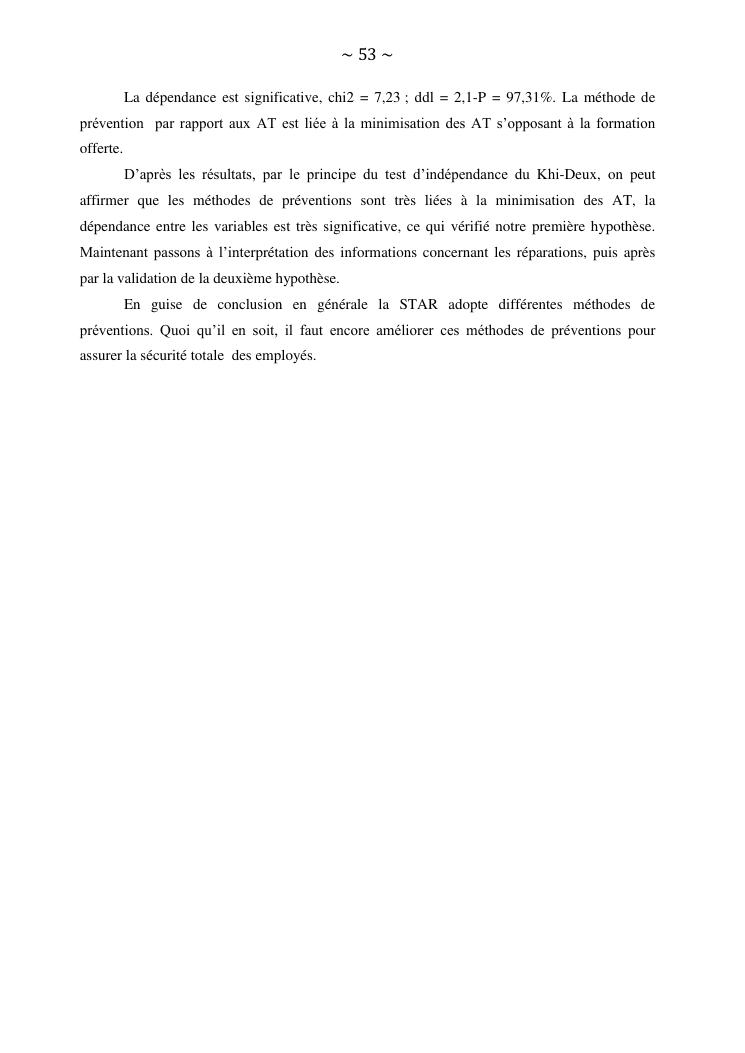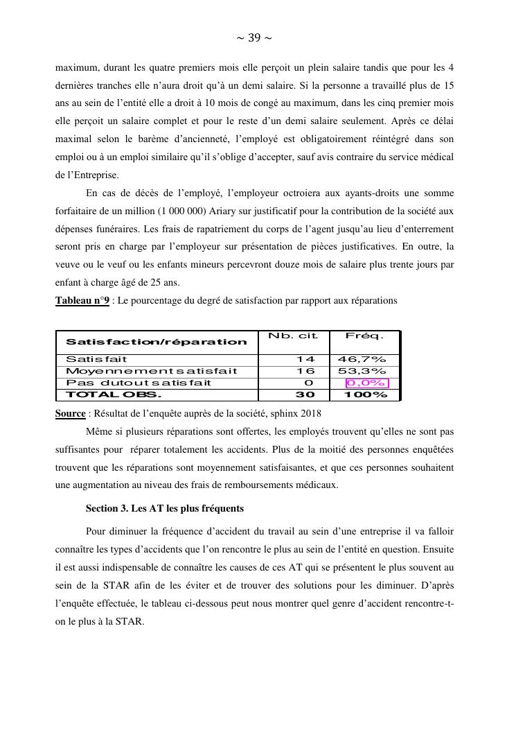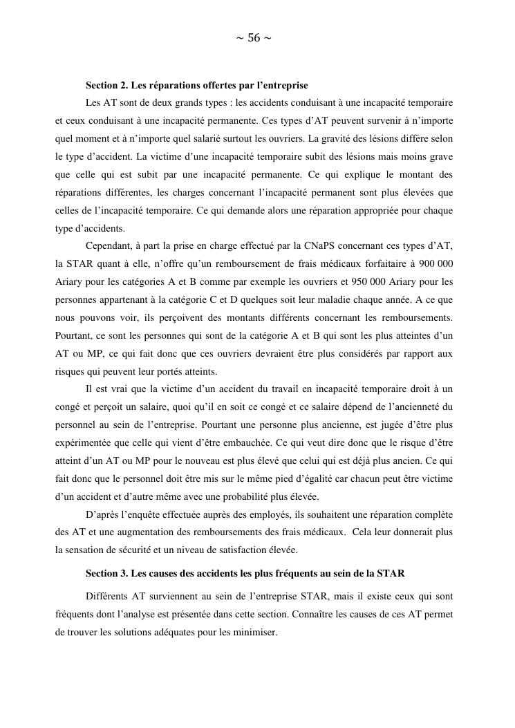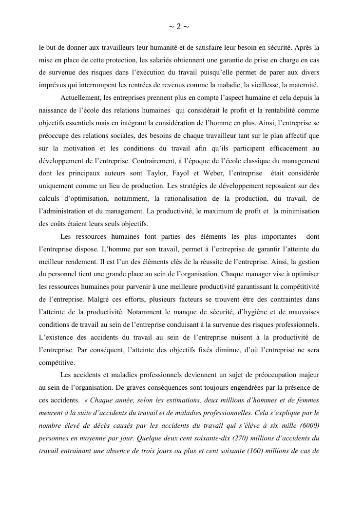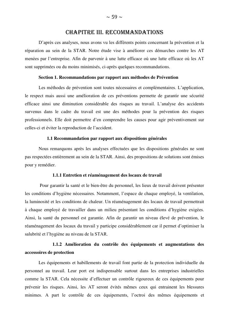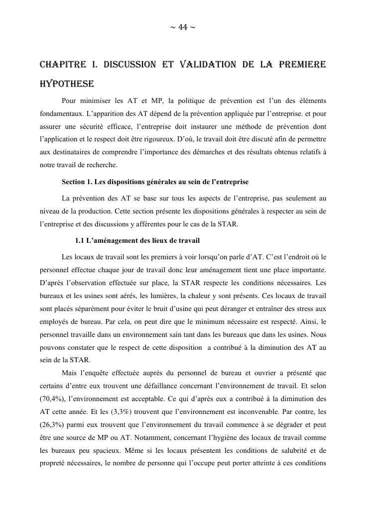 l'analyse des actions de minimisation des accidents du travail au sein de l'entreprise (cas de la star)