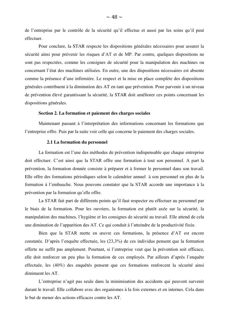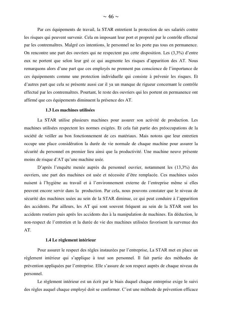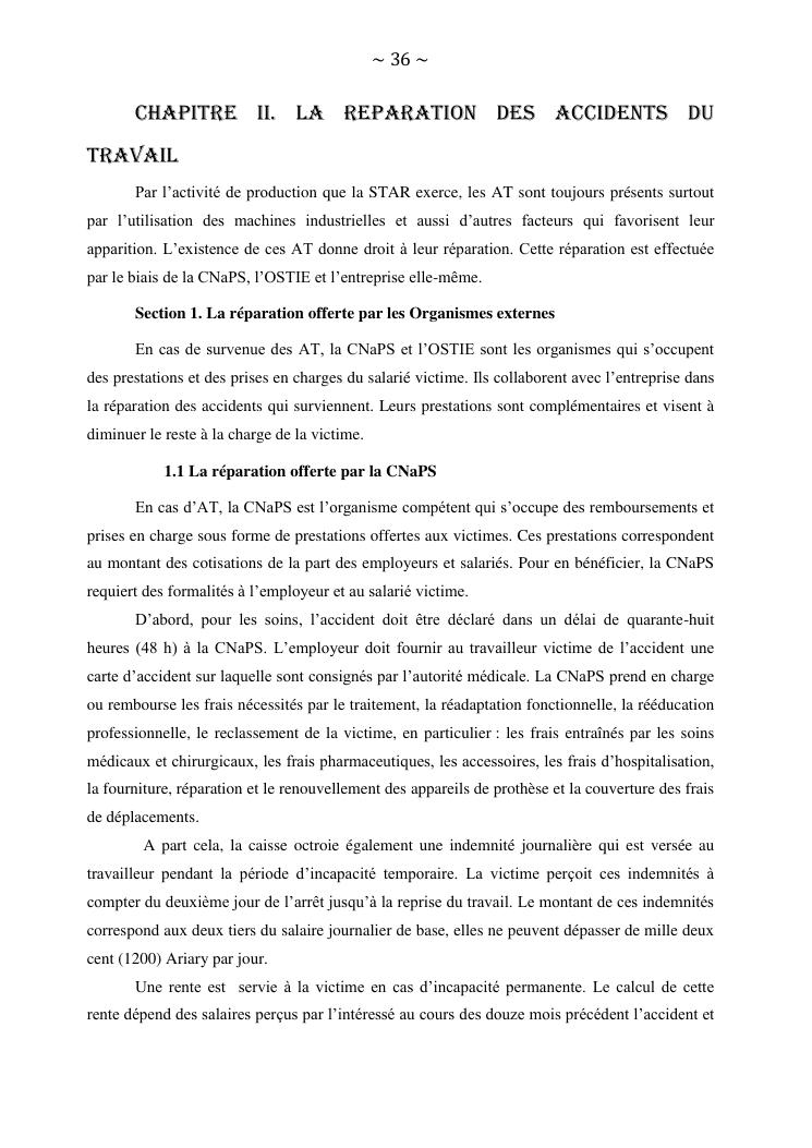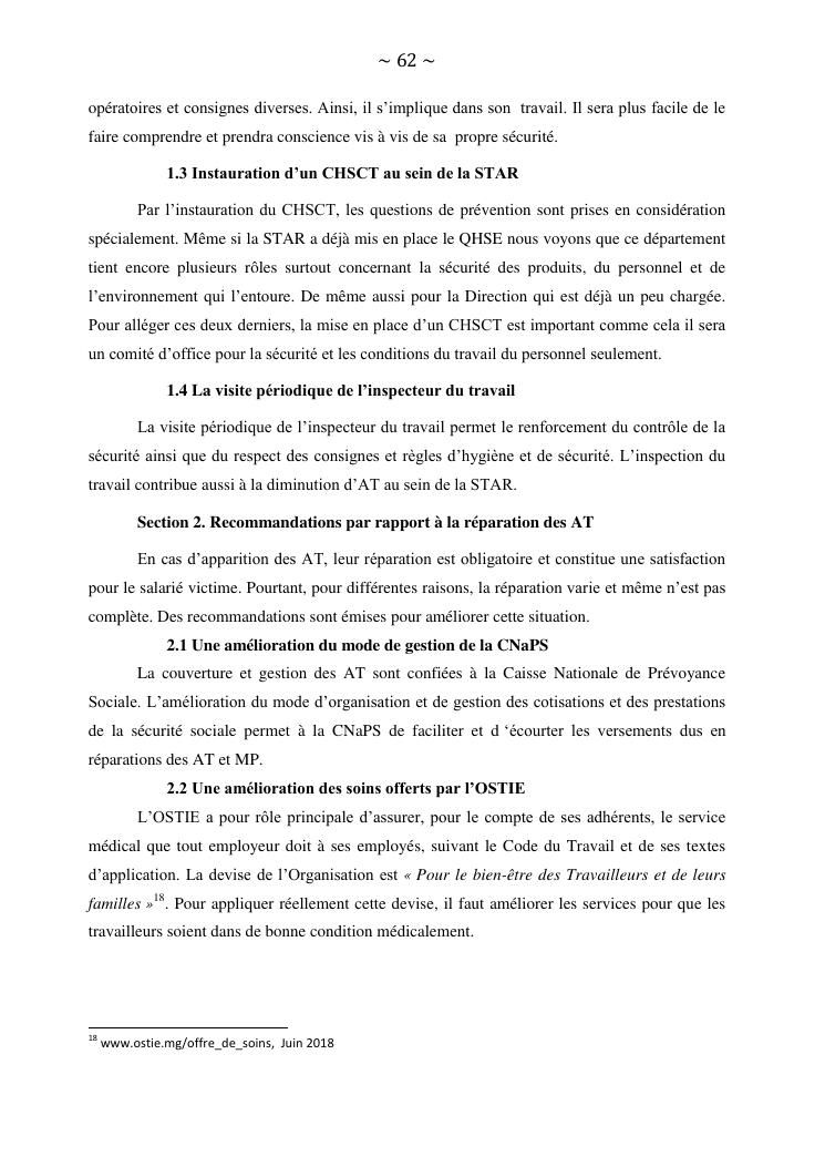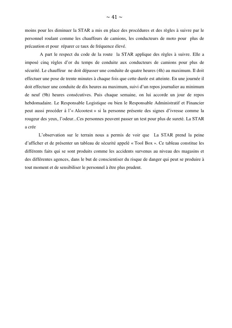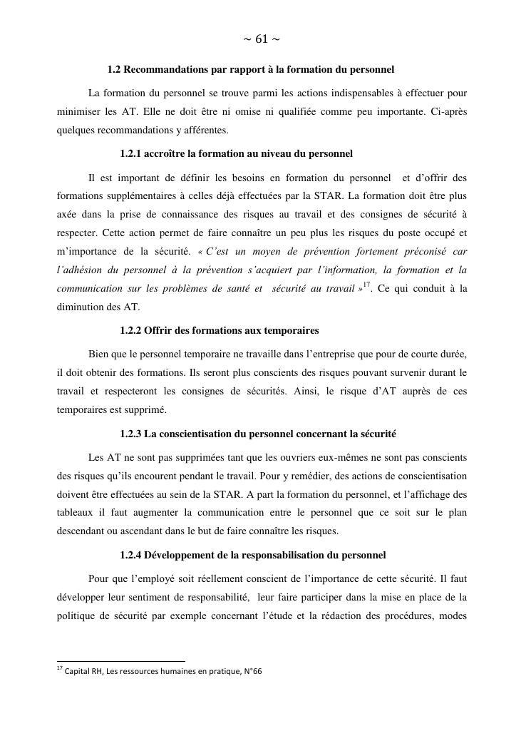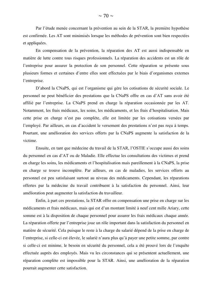 l'analyse des actions de minimisation des accidents du travail au sein de l'entreprise (cas de la star)