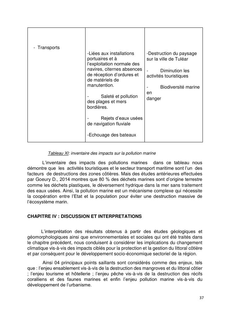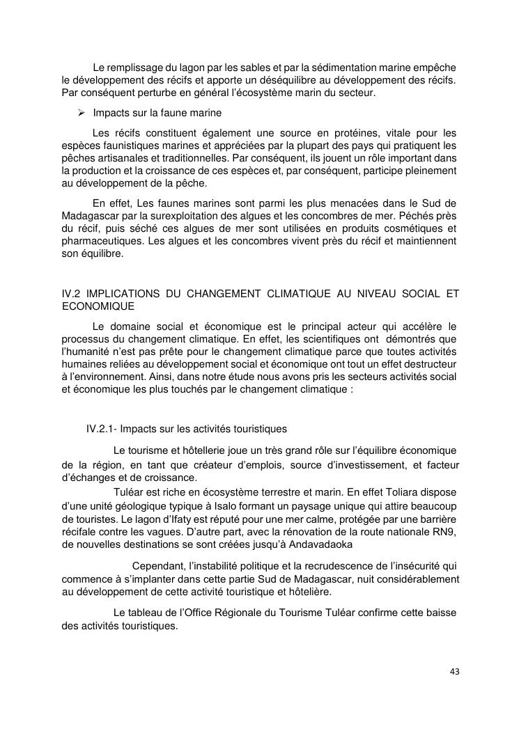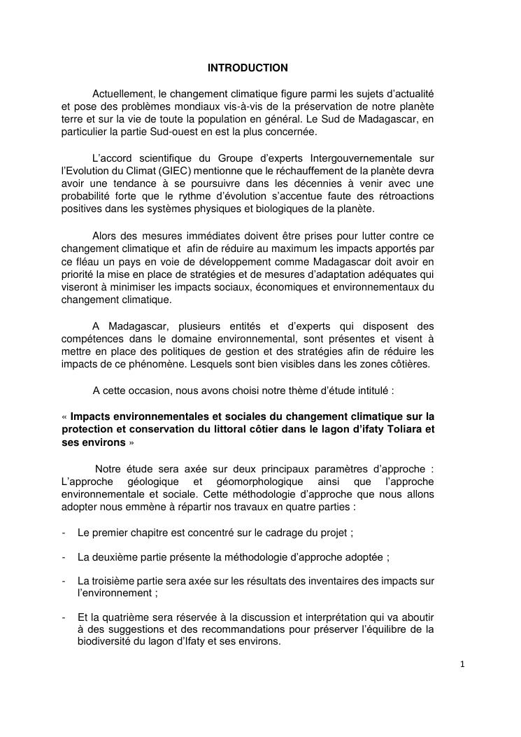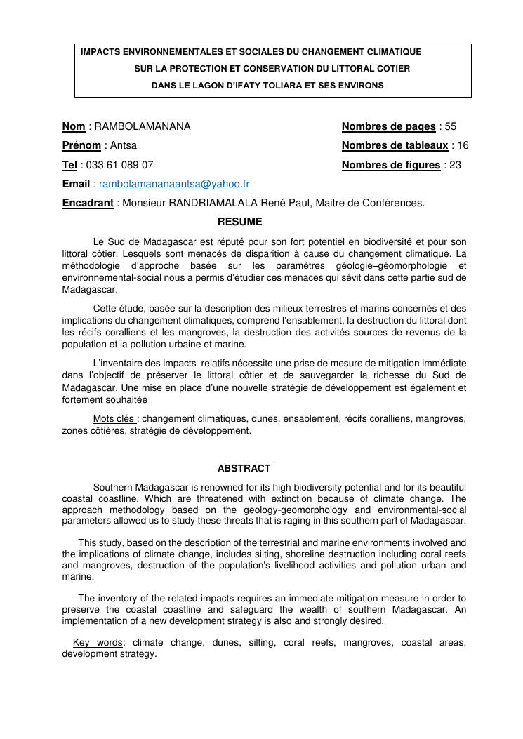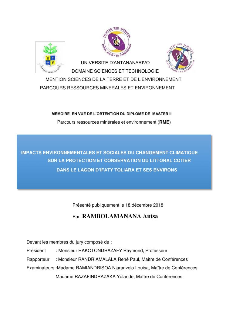 i mpacts environnementales et sociales du changement climatique sur la protection et conservation du littoral cotier dans le lagon d'ifaty toliara et ses environs