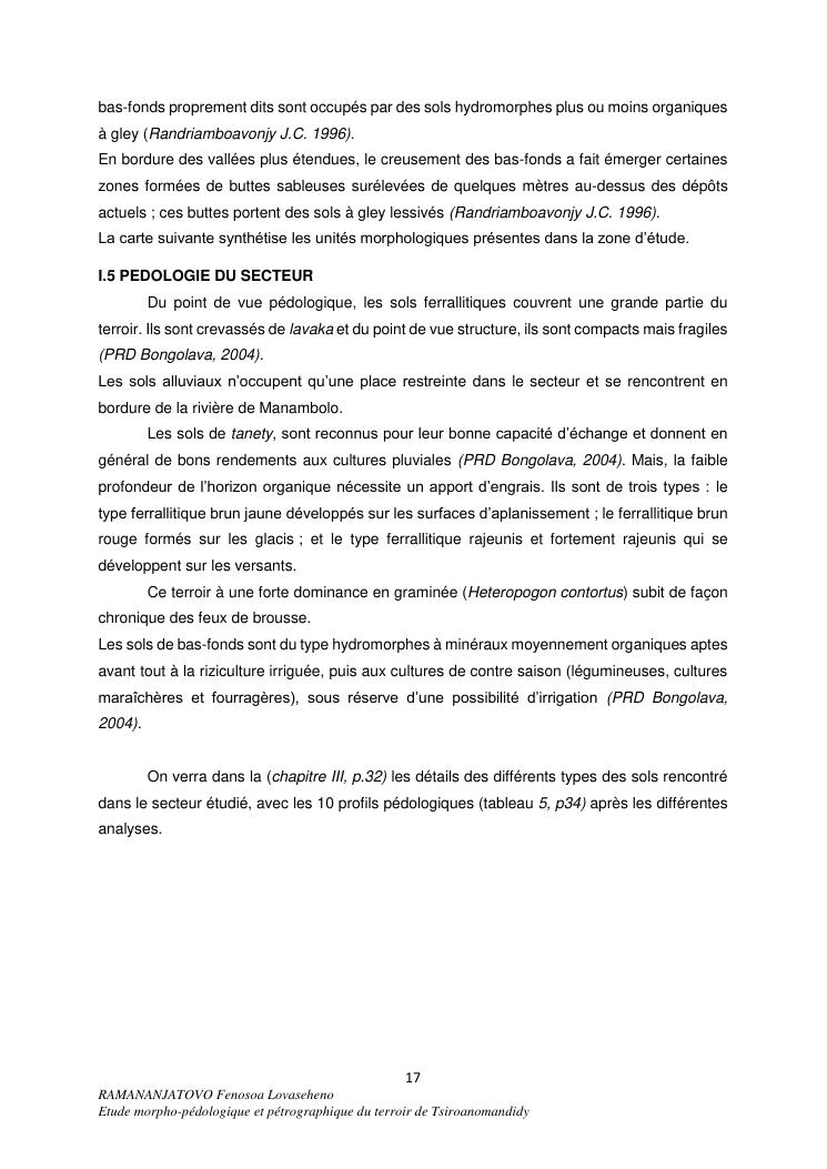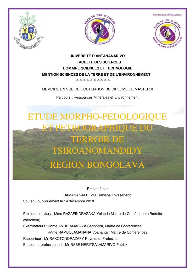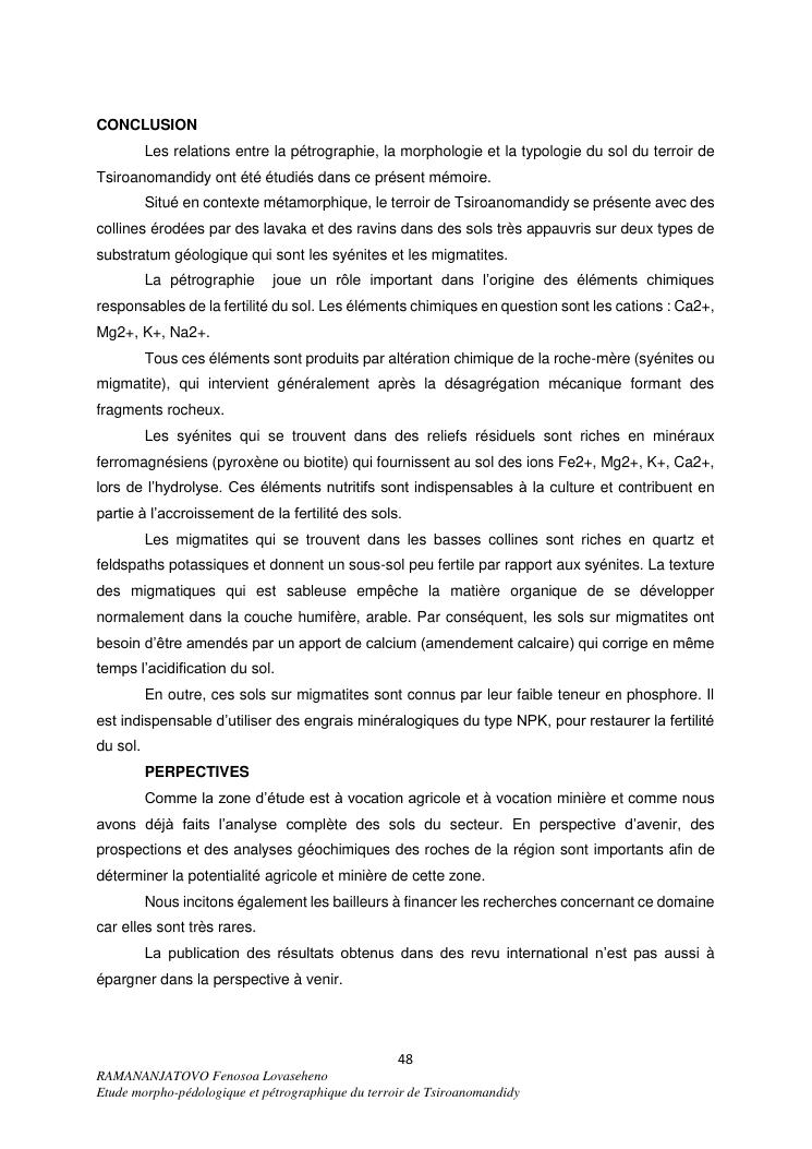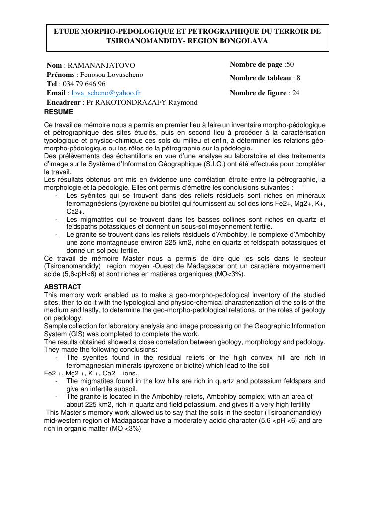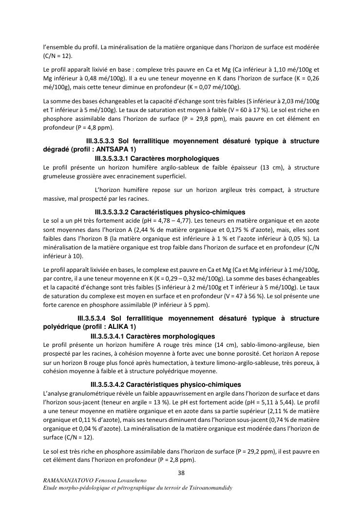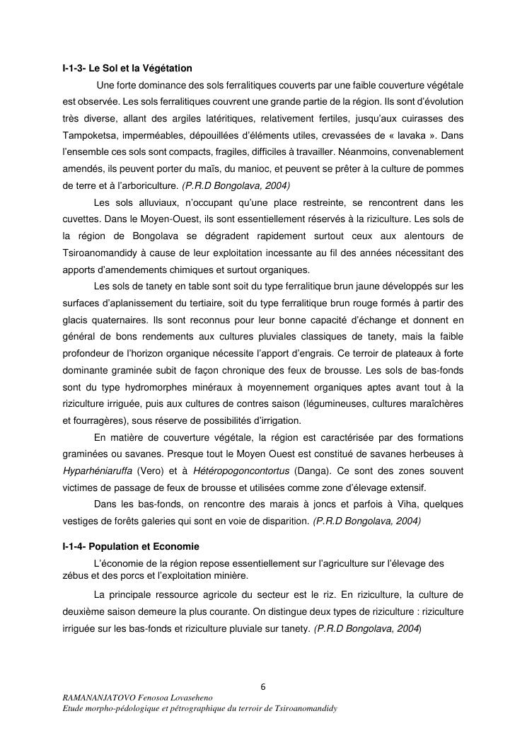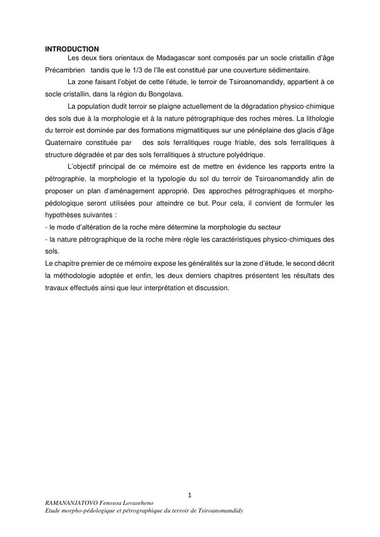 etude morpho-pedologique et petrographique du terroir de tsiroanomandidy region bongolava