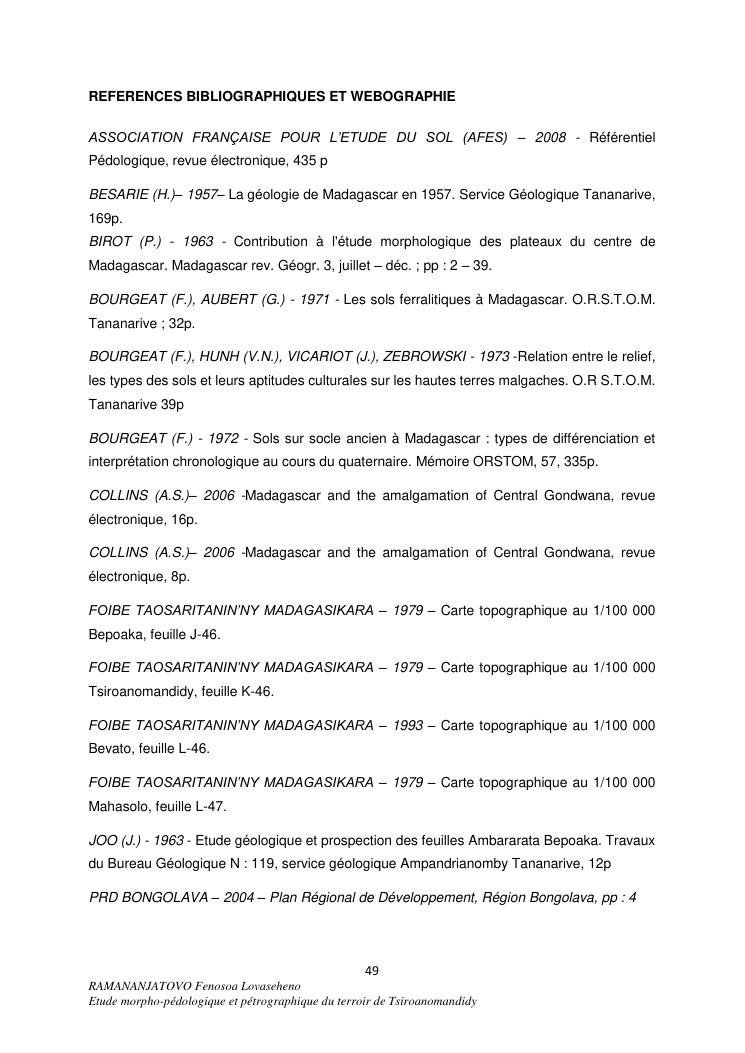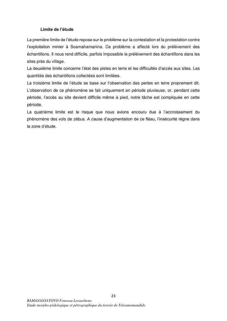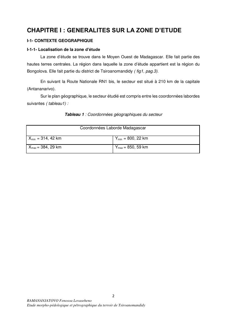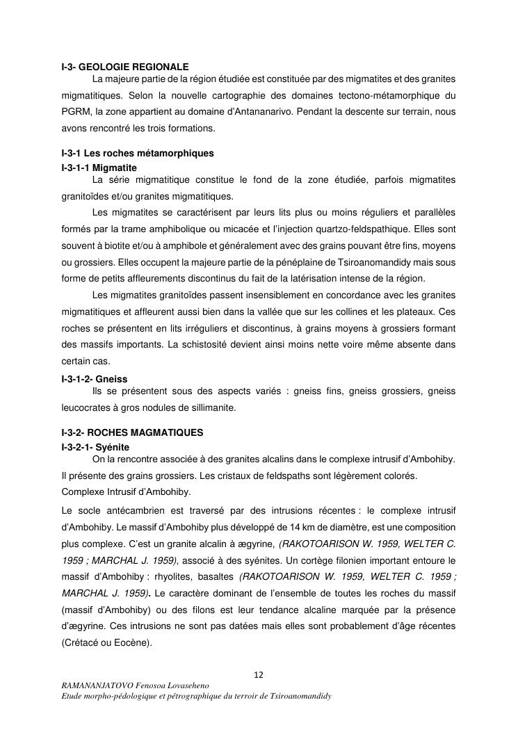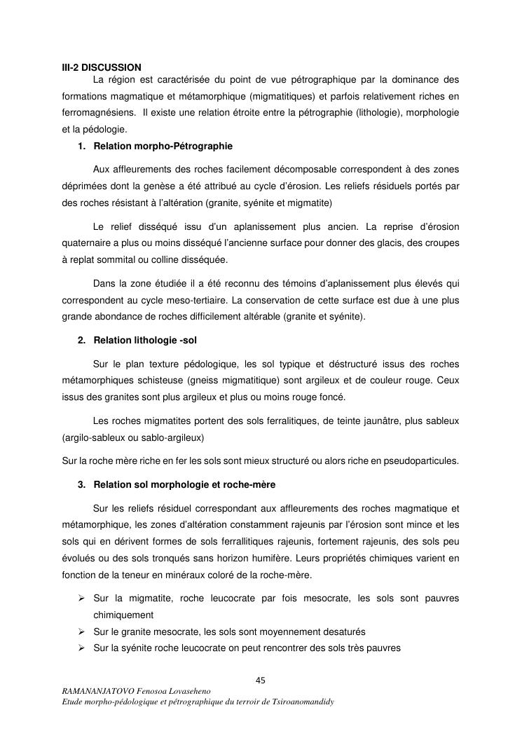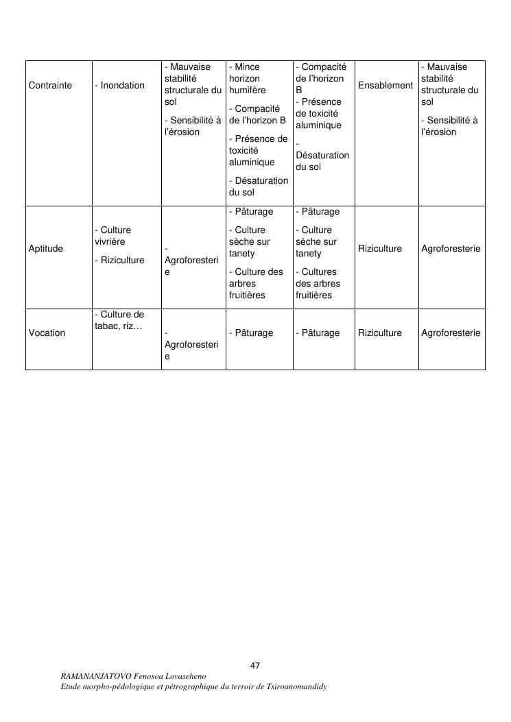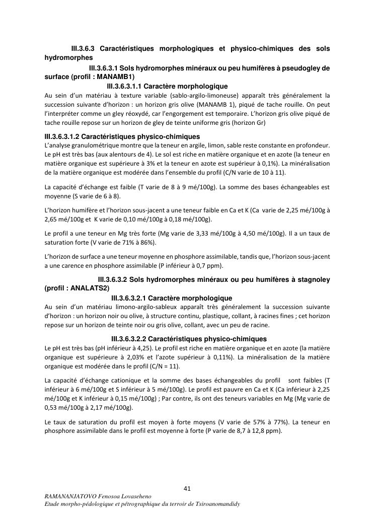 etude morpho-pedologique et petrographique du terroir de tsiroanomandidy region bongolava