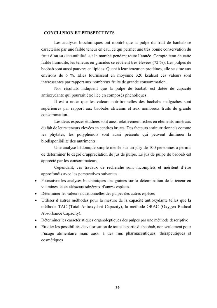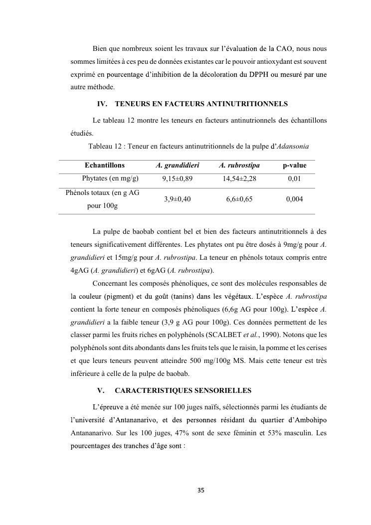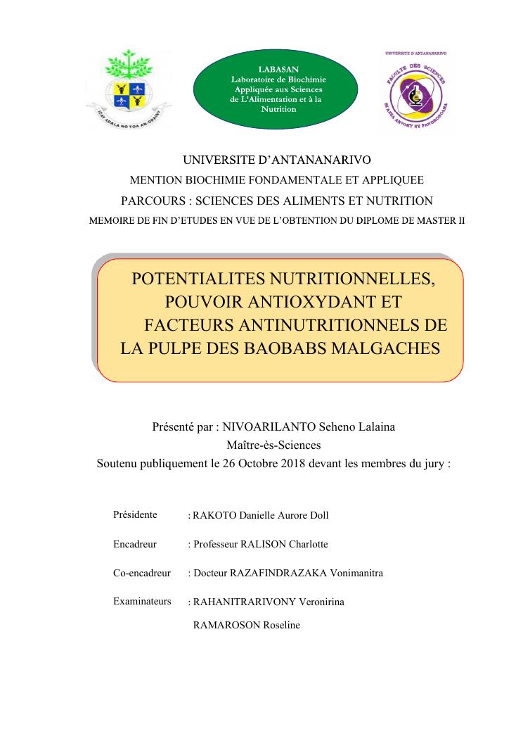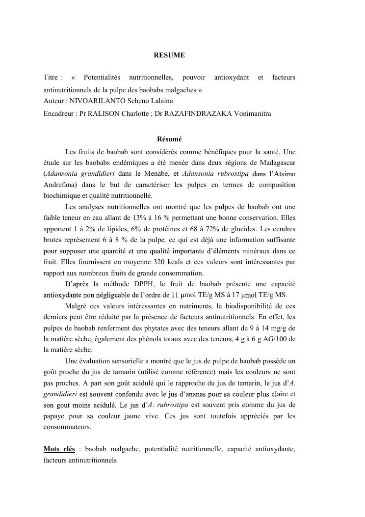 potentialites nutritionnelles, pouvoir antioxydant et facteurs antinutritionnels de la pulpe des baobabs malgaches