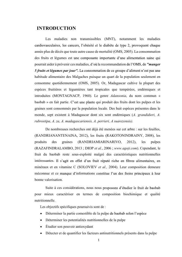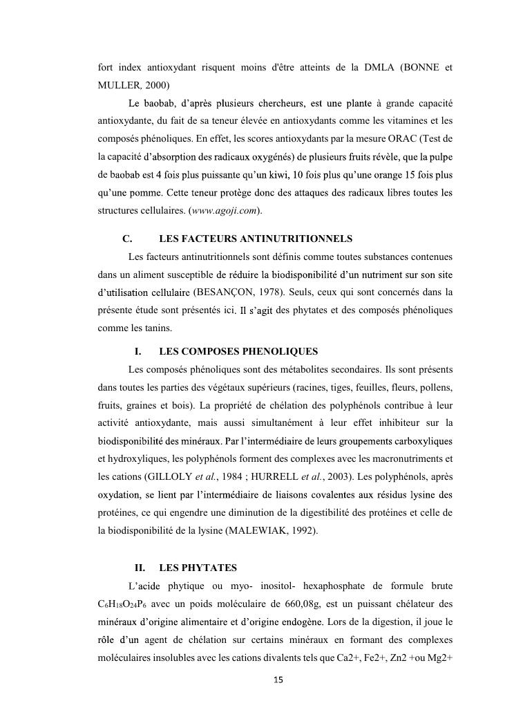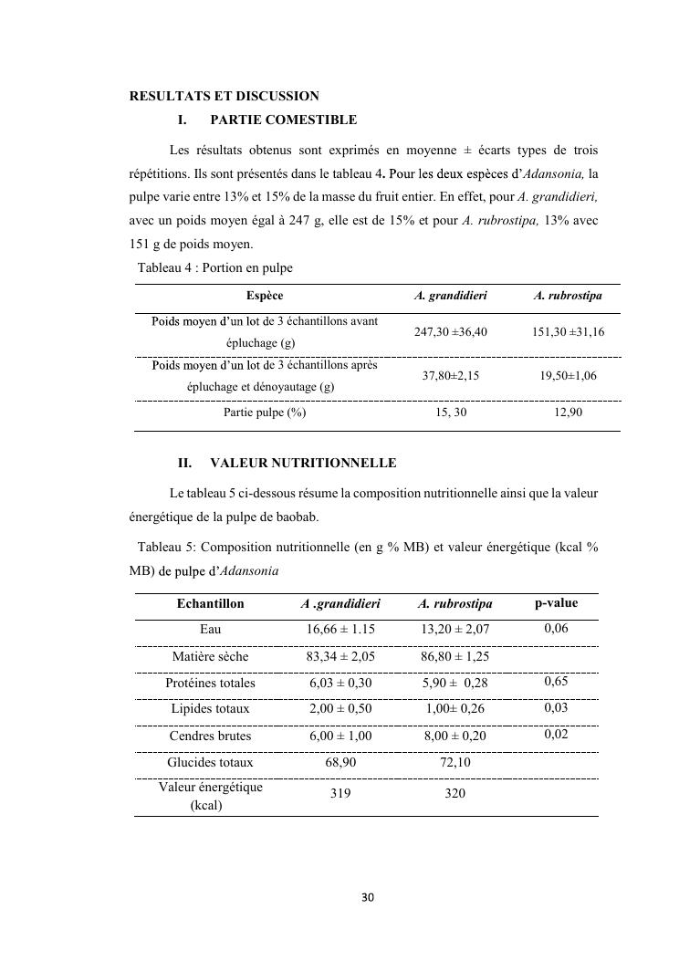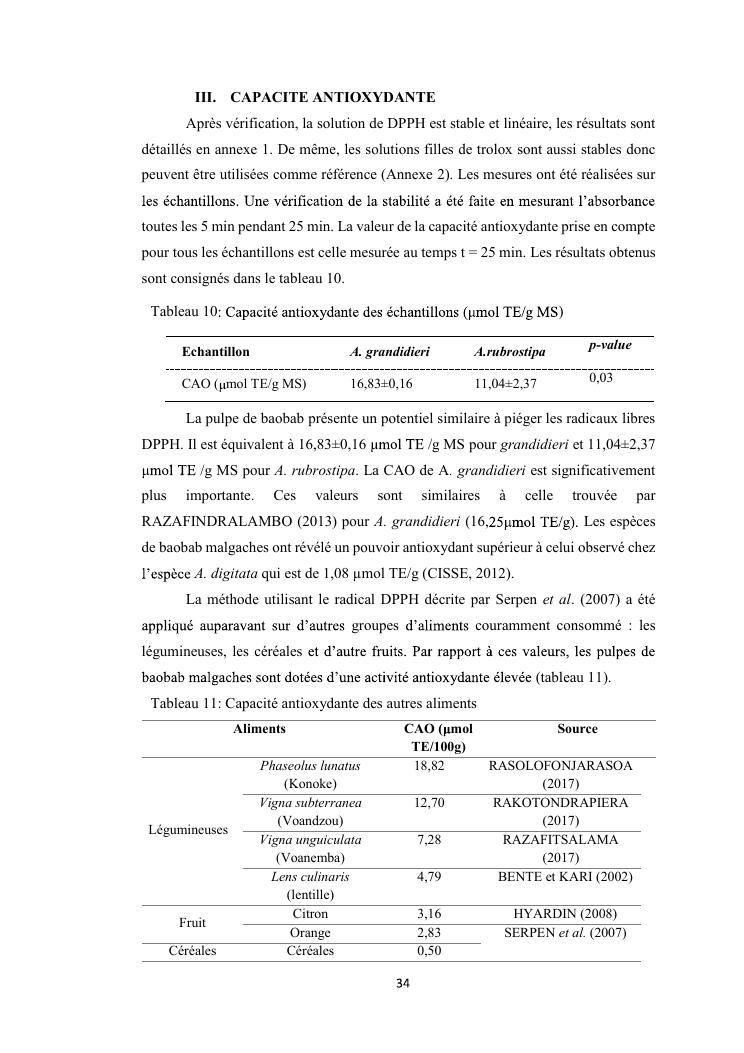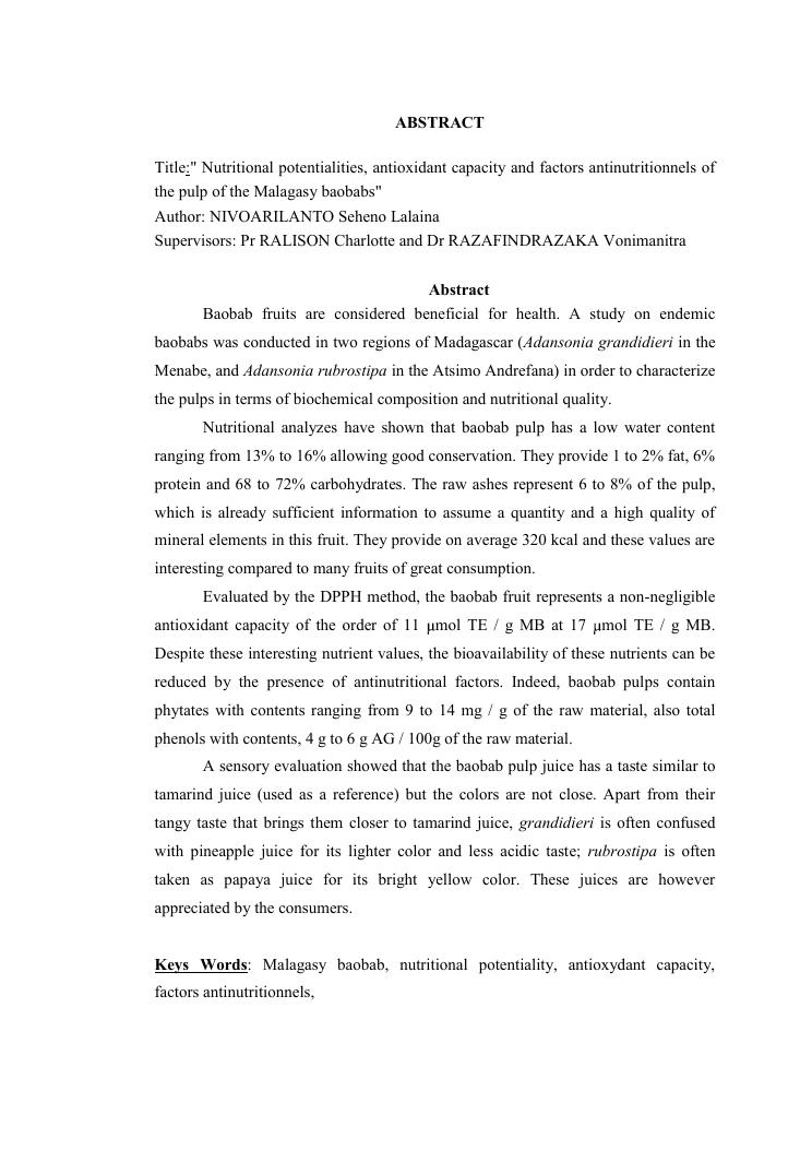 potentialites nutritionnelles, pouvoir antioxydant et facteurs antinutritionnels de la pulpe des baobabs malgaches