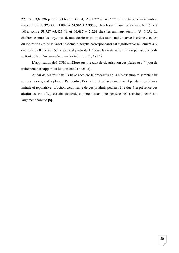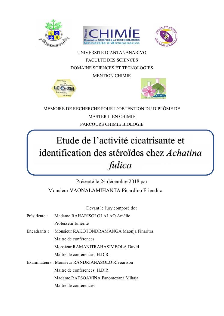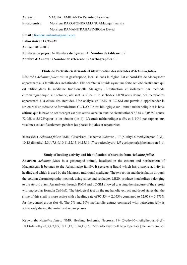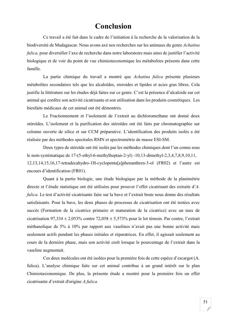 etude de l'activité cicatrisante et identification des stéroïdes chez achatina fulica