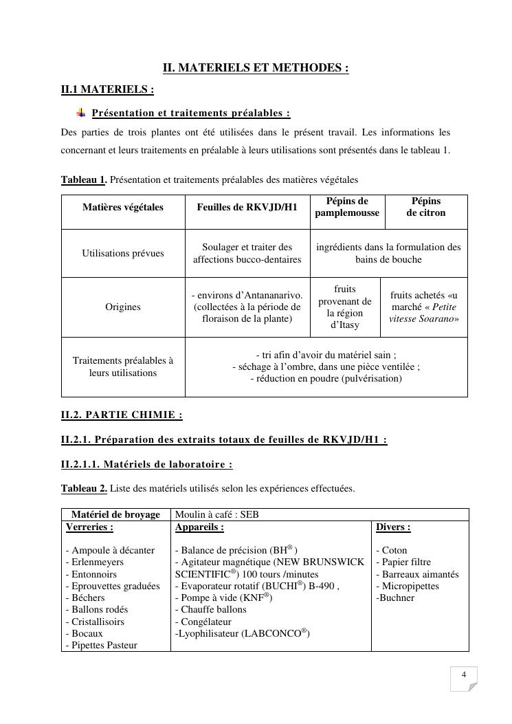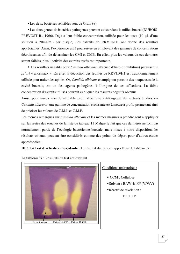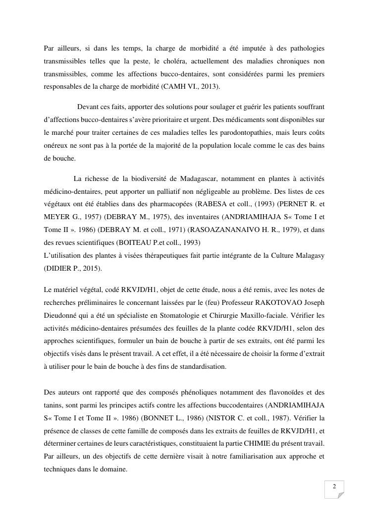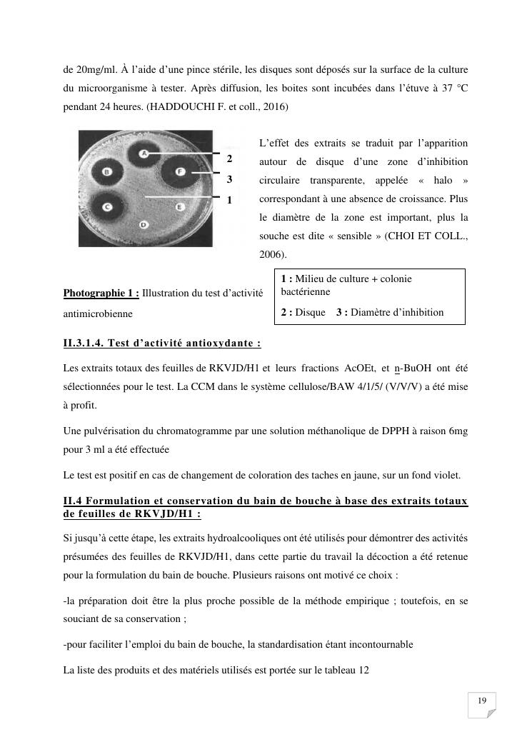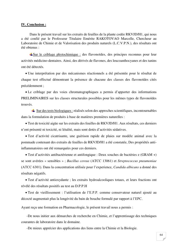 caracterisation analytique et activites biologiques d'extraits de feuilles de la plante codee rkvjd/h1. formulation d'un bain de bouche