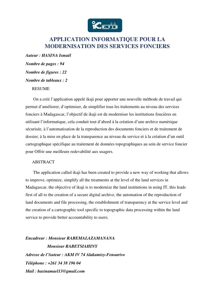 application informatique pour la modernisation des services fonciers
