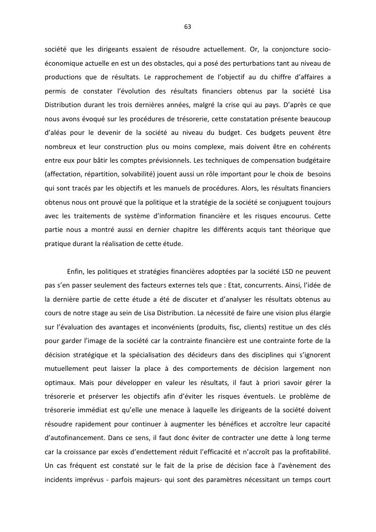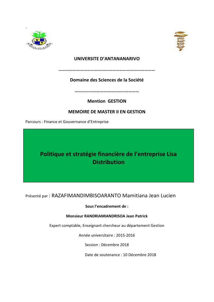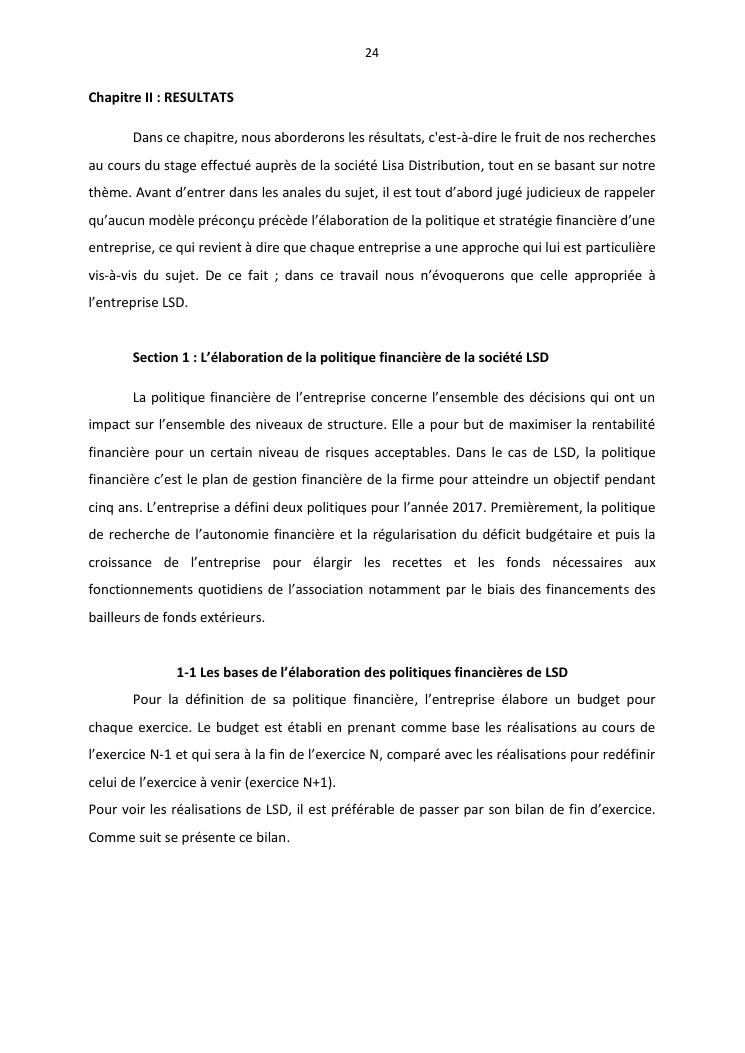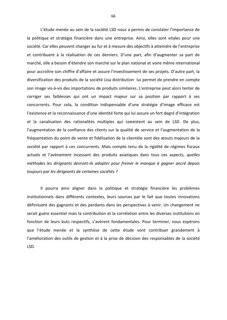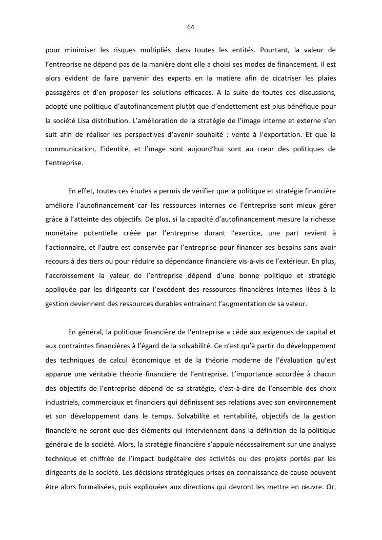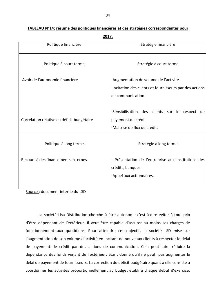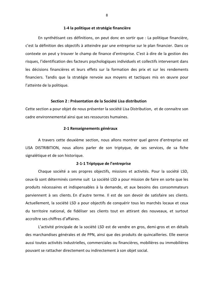 politique et stratégie financière de l'entreprise lisa distribution