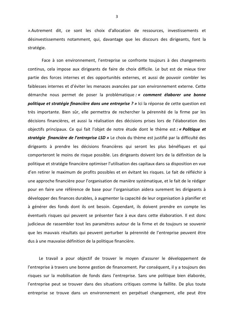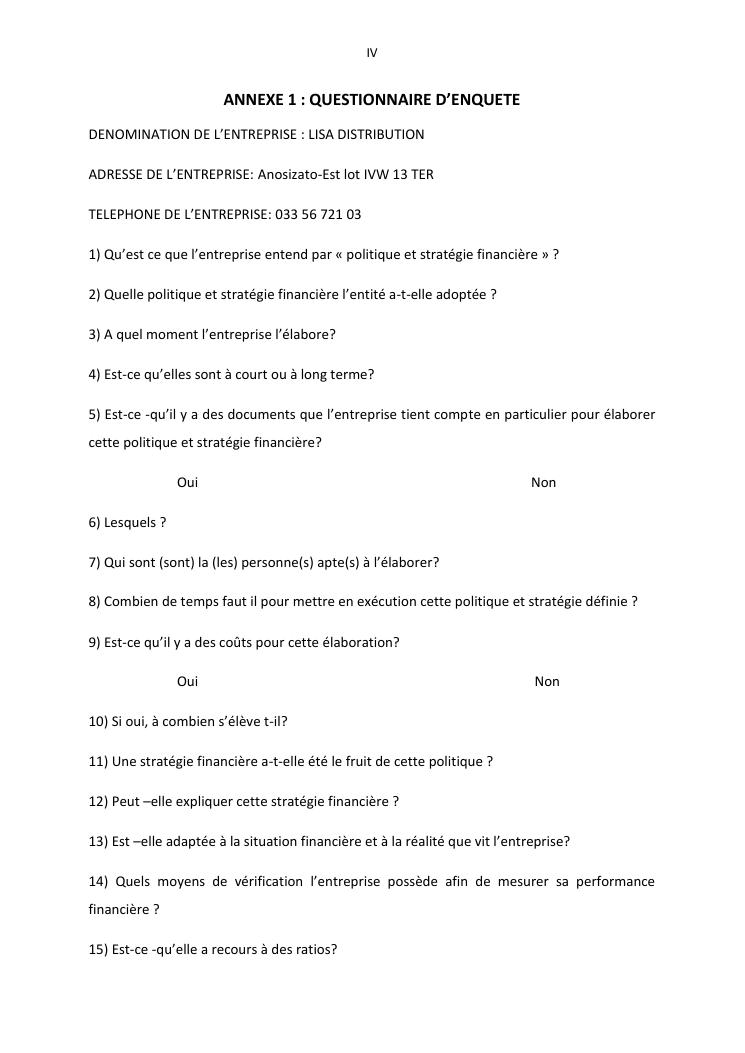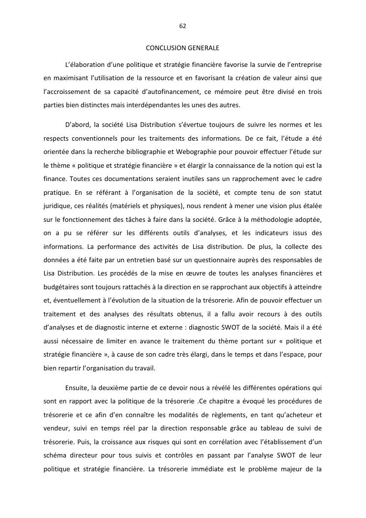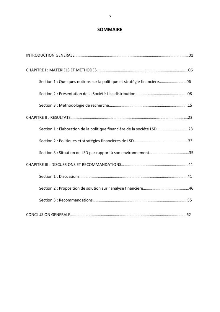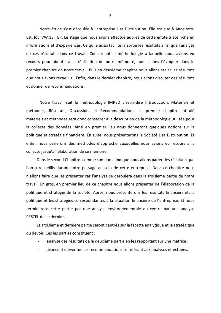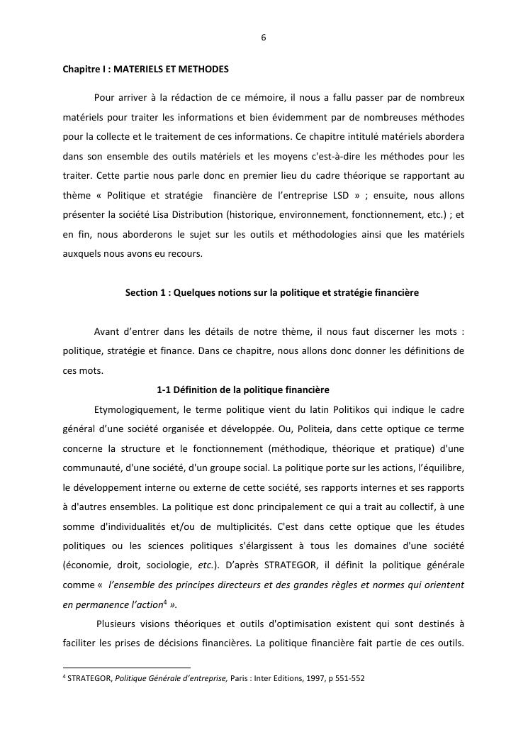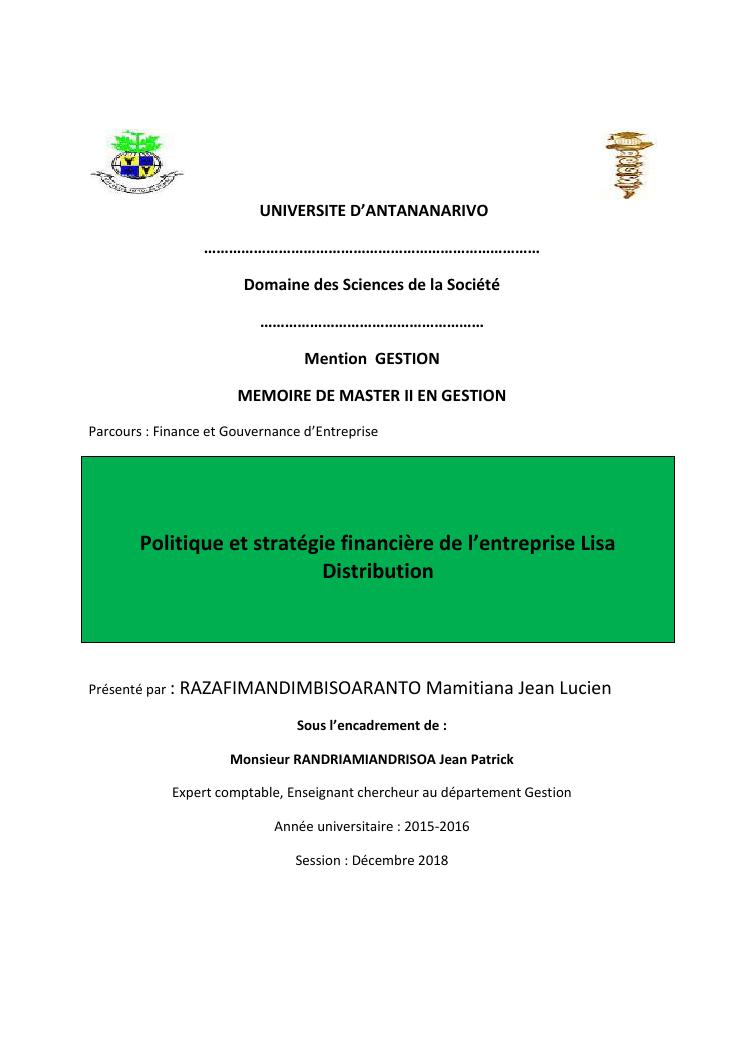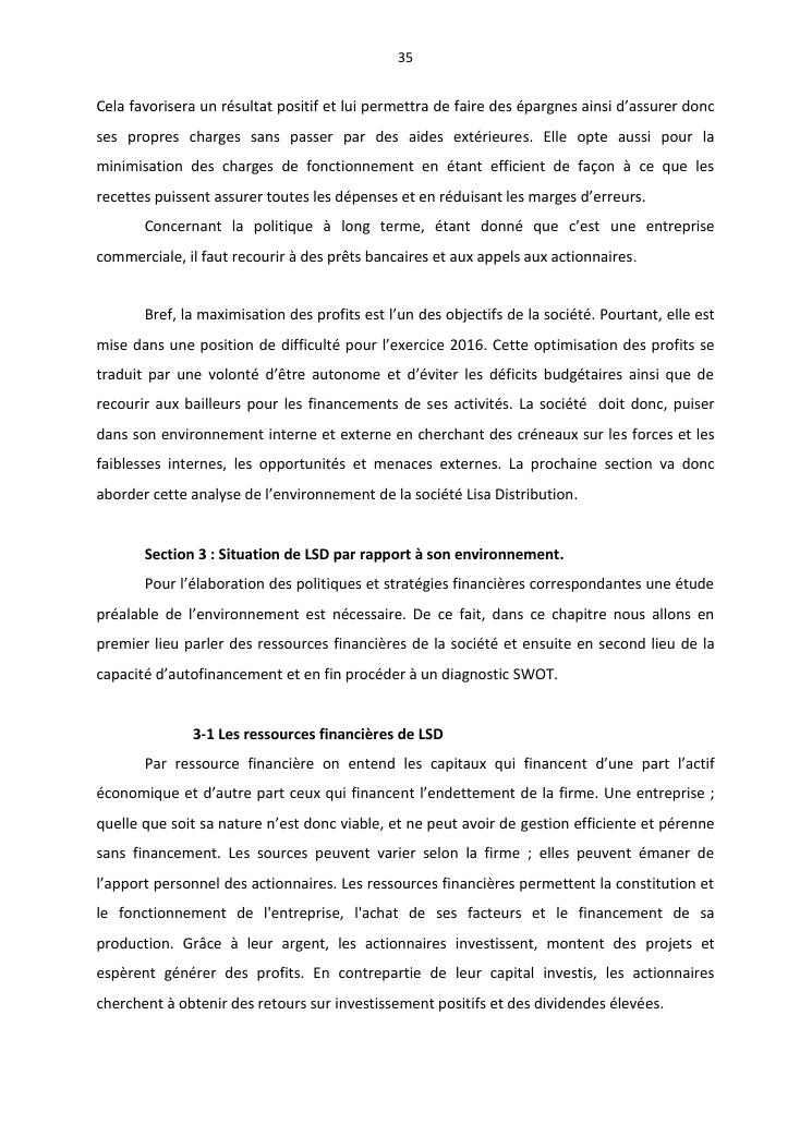 politique et stratégie financière de l'entreprise lisa distribution