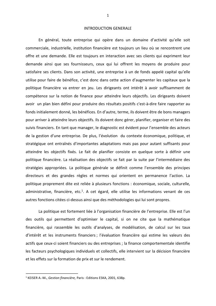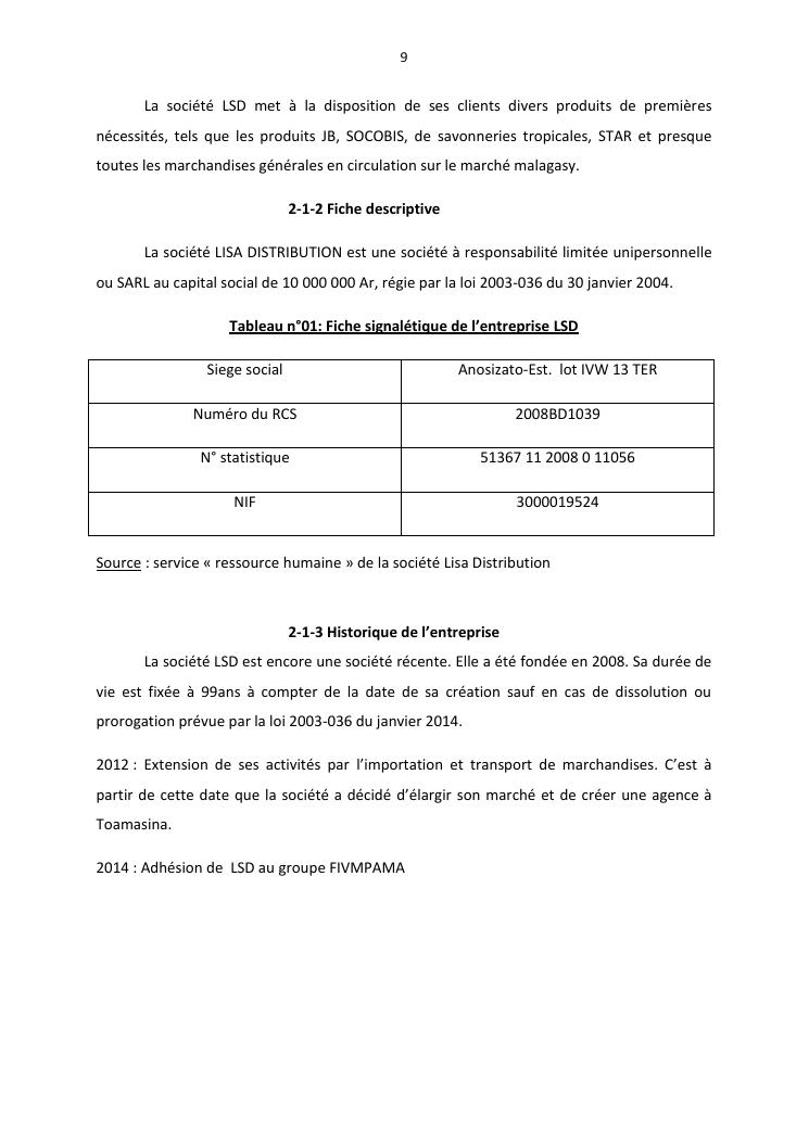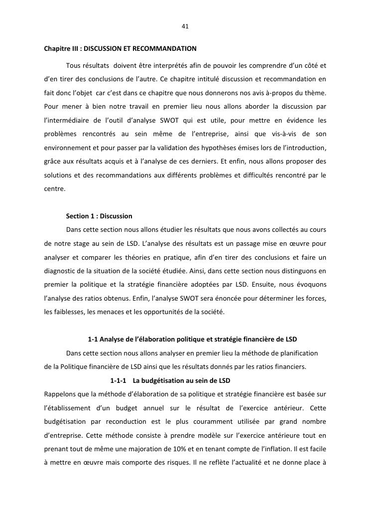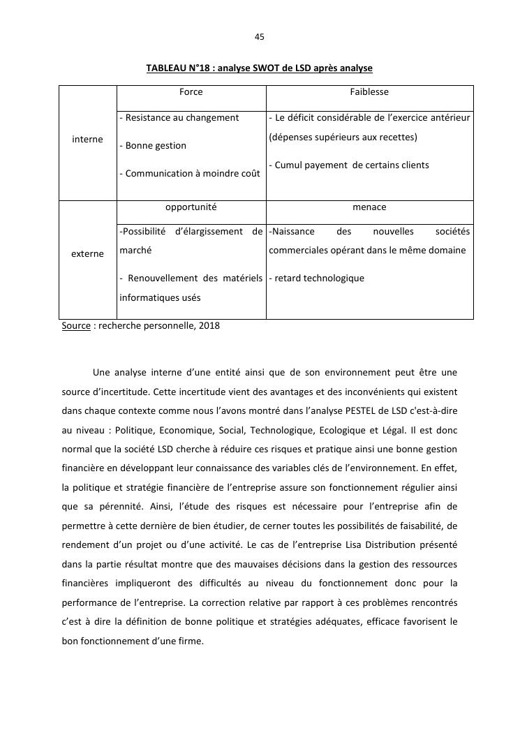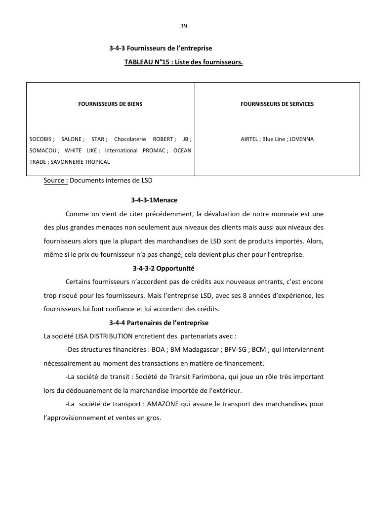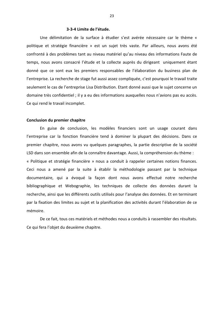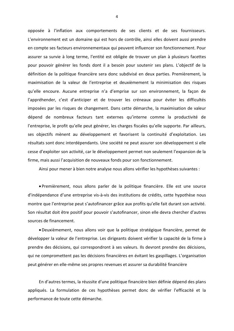 politique et stratégie financière de l'entreprise lisa distribution