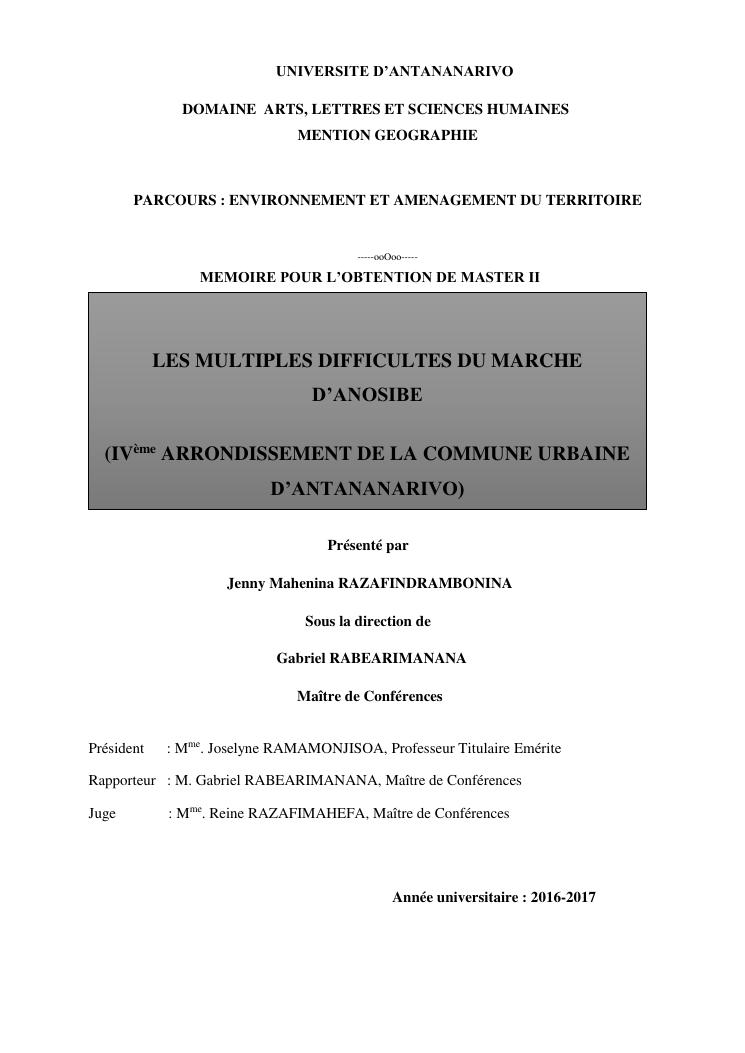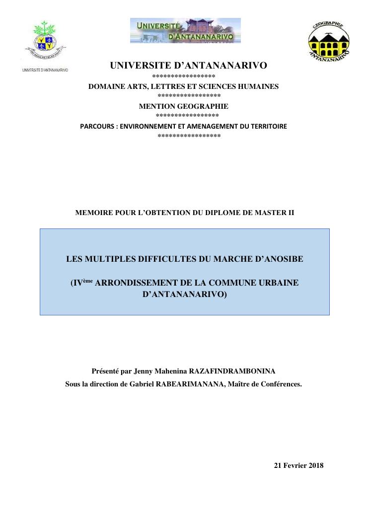 les multiples difficultes du marche d'anosibe (ivème arrondissement de la commune urbaine d'antananarivo)