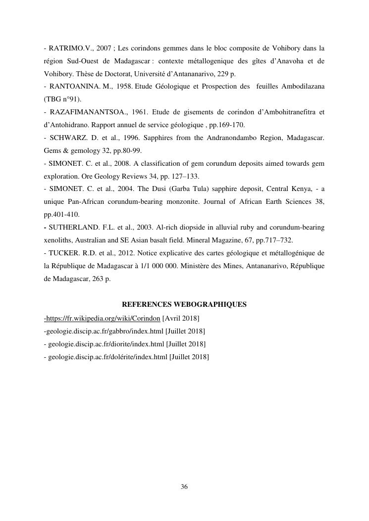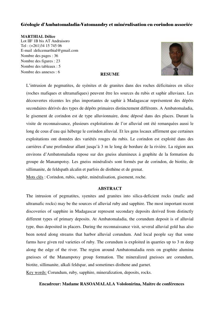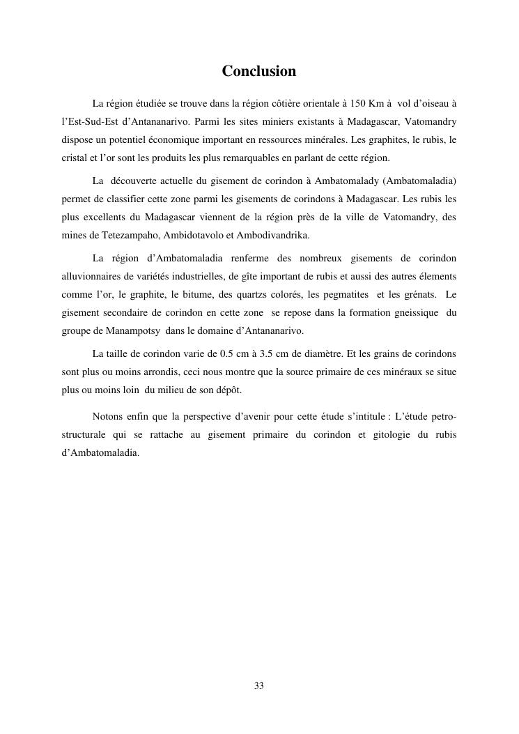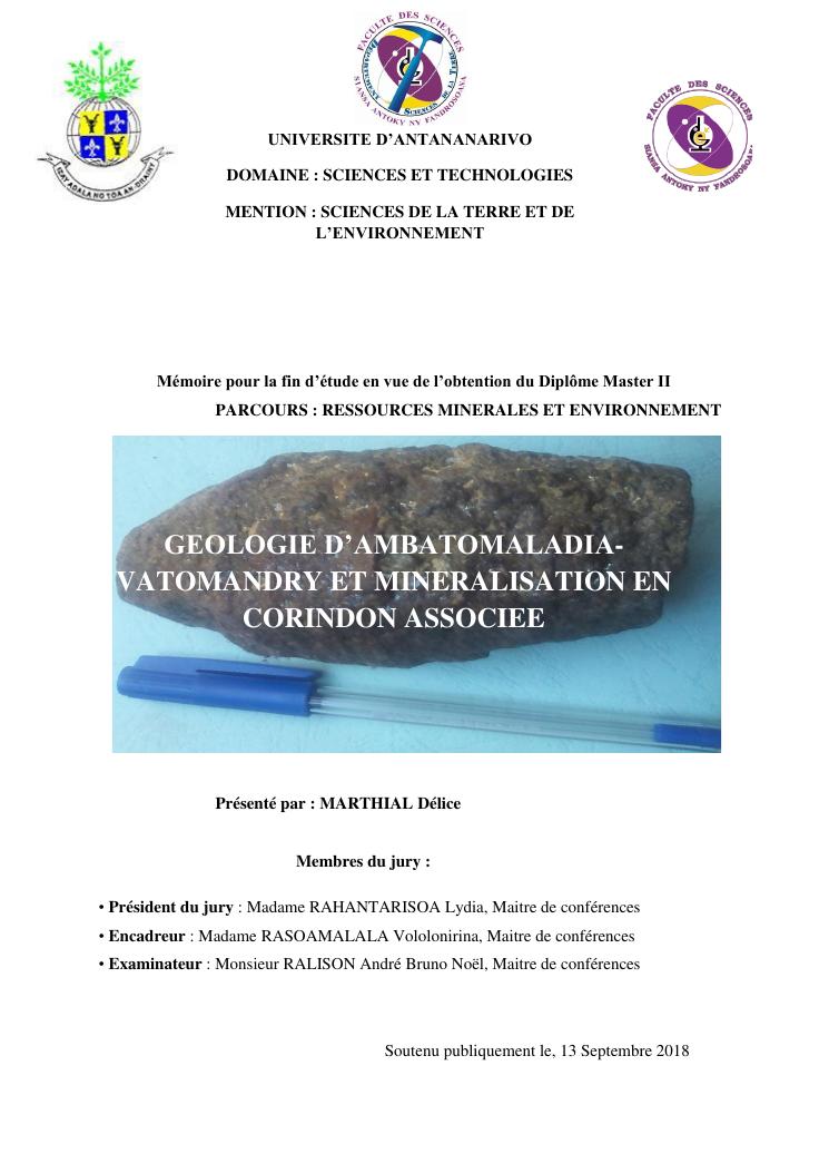 geologie d'ambatomaladia-vatomandry et mineralisation en corindon associee