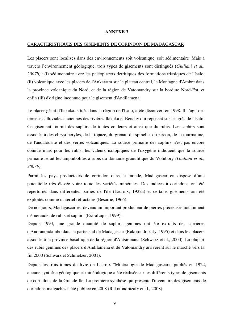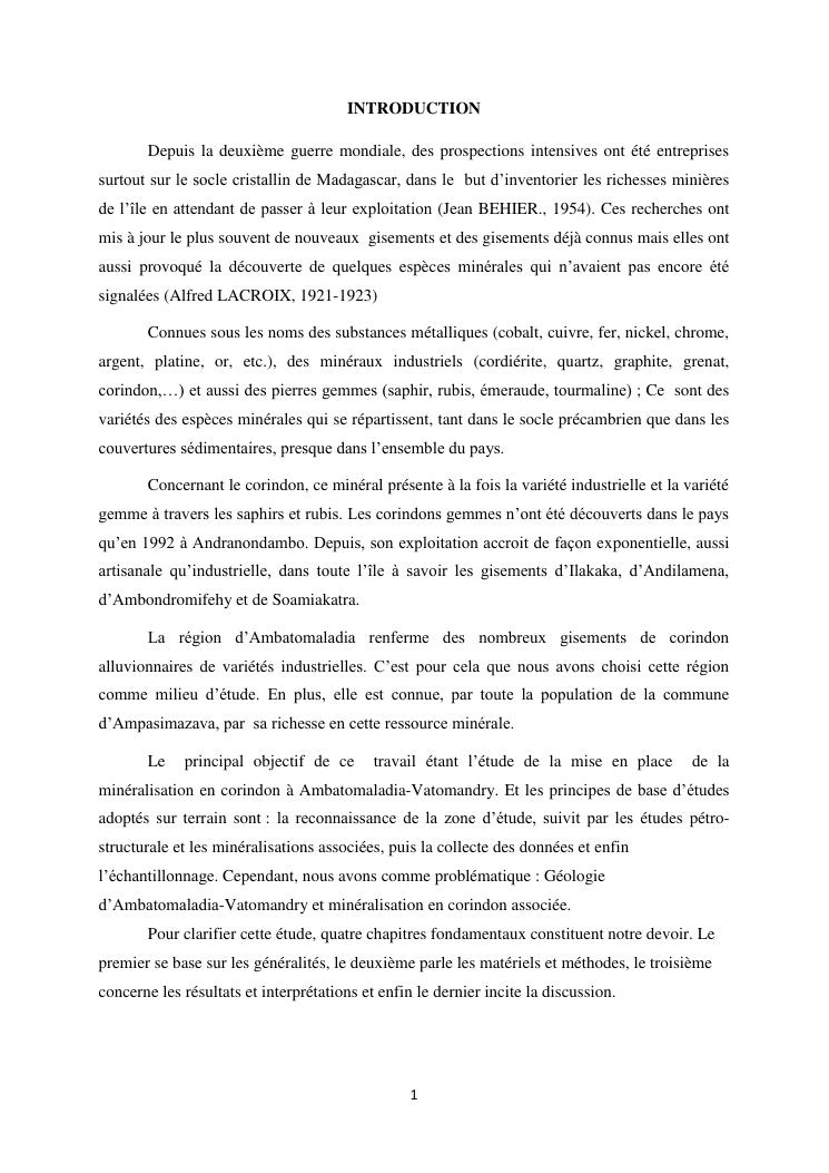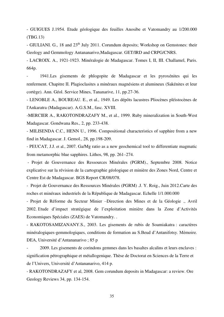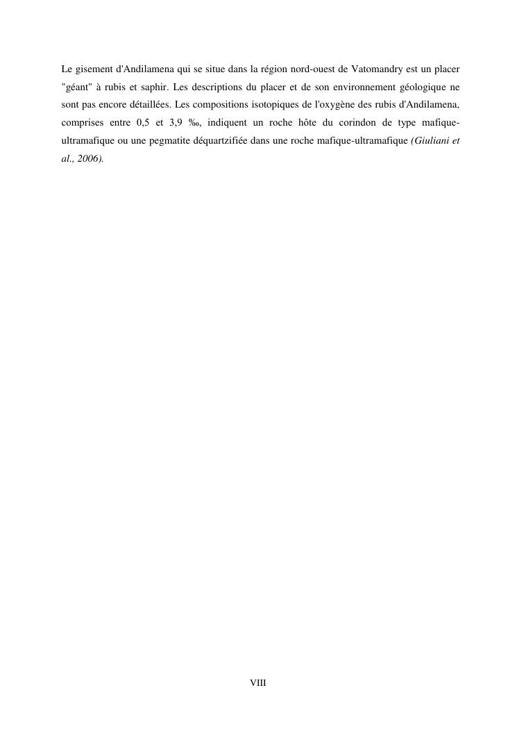 geologie d'ambatomaladia-vatomandry et mineralisation en corindon associee