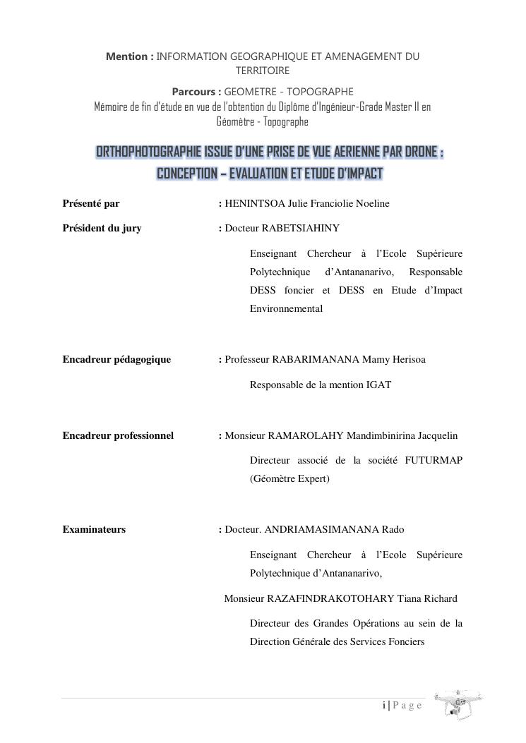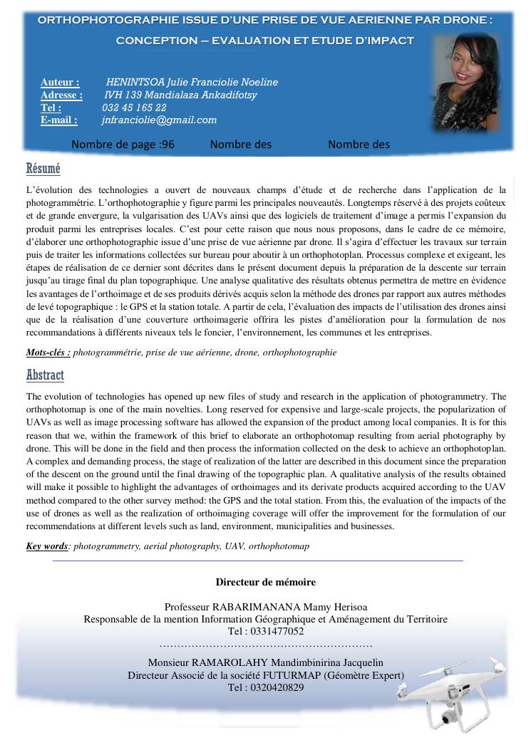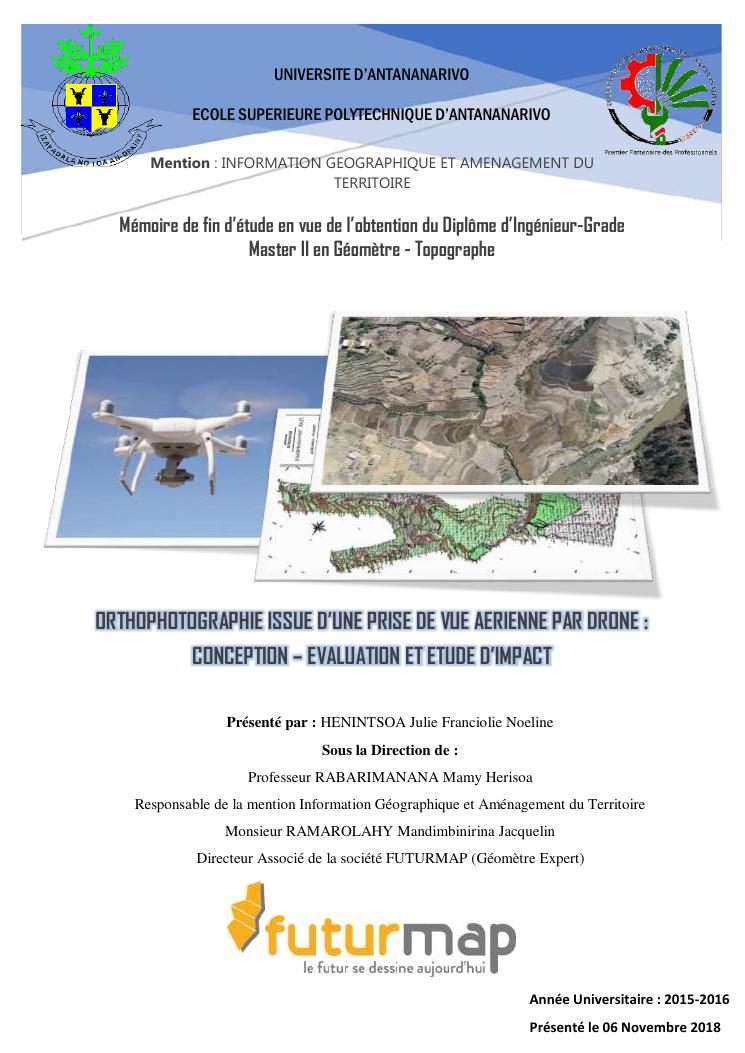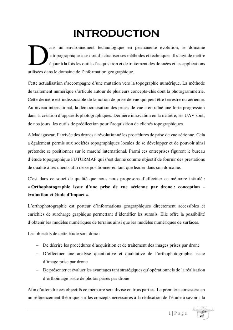 orthophotographie issue d'une prise de vue aerienne par drone : conception evaluation et etude d'impact