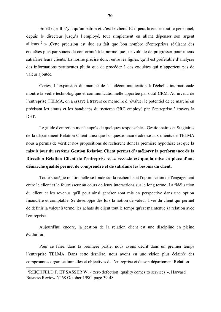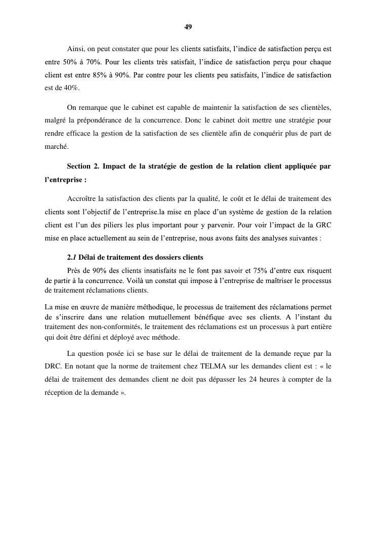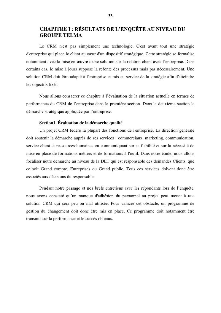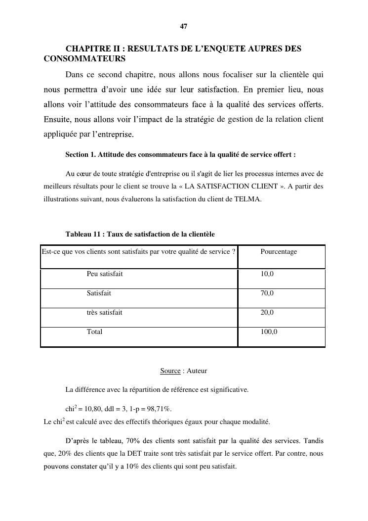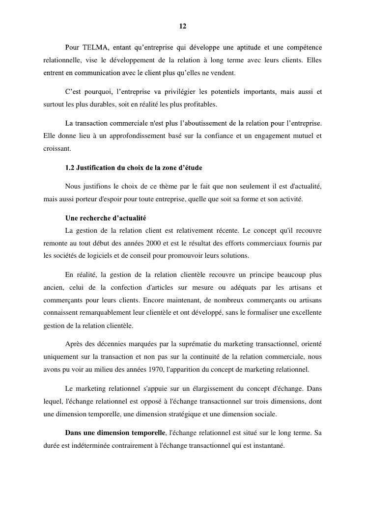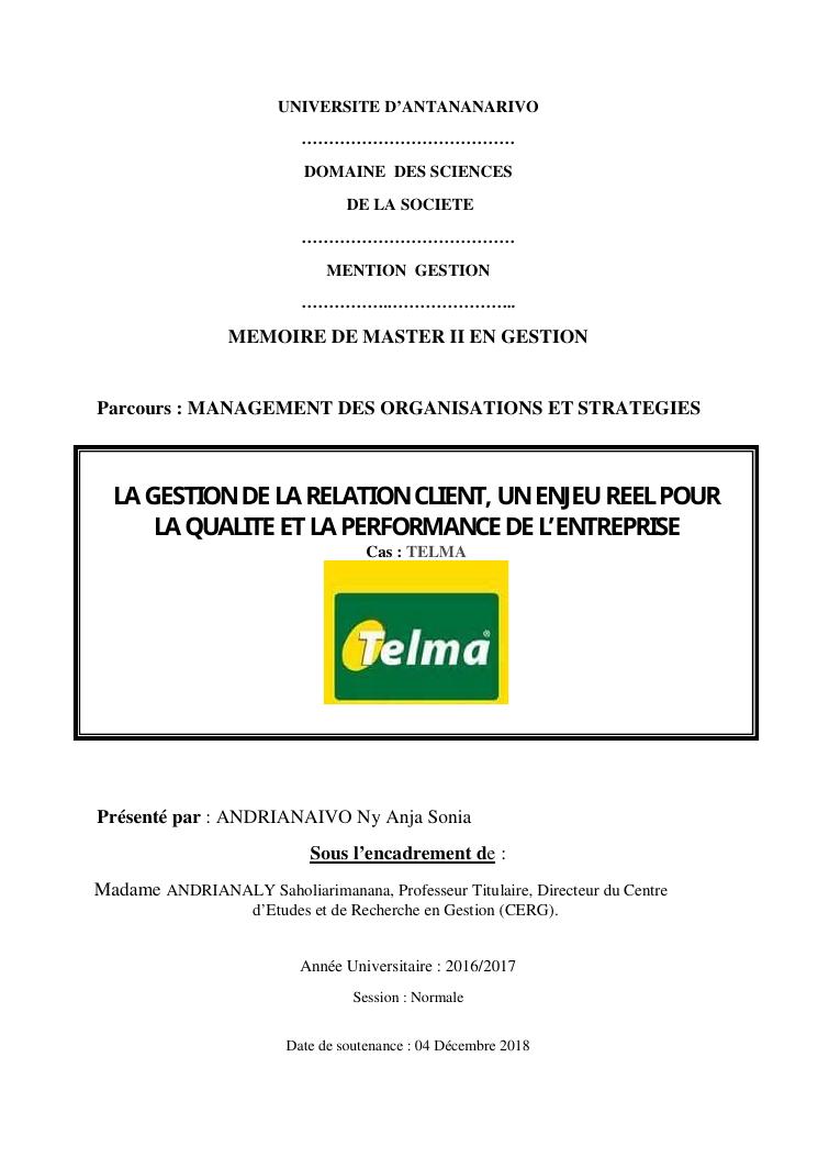 la gestion de la relation client, un enjeu reel pour la qualite et la performance de l'entreprise. cas : telma