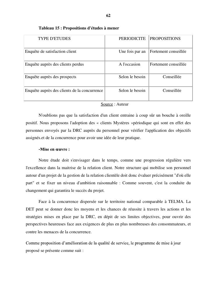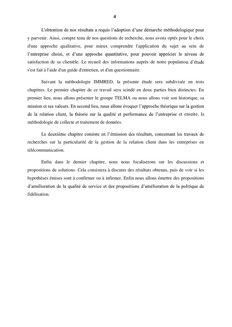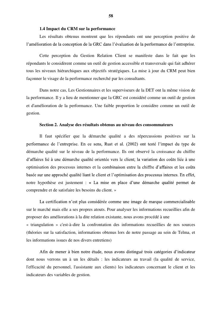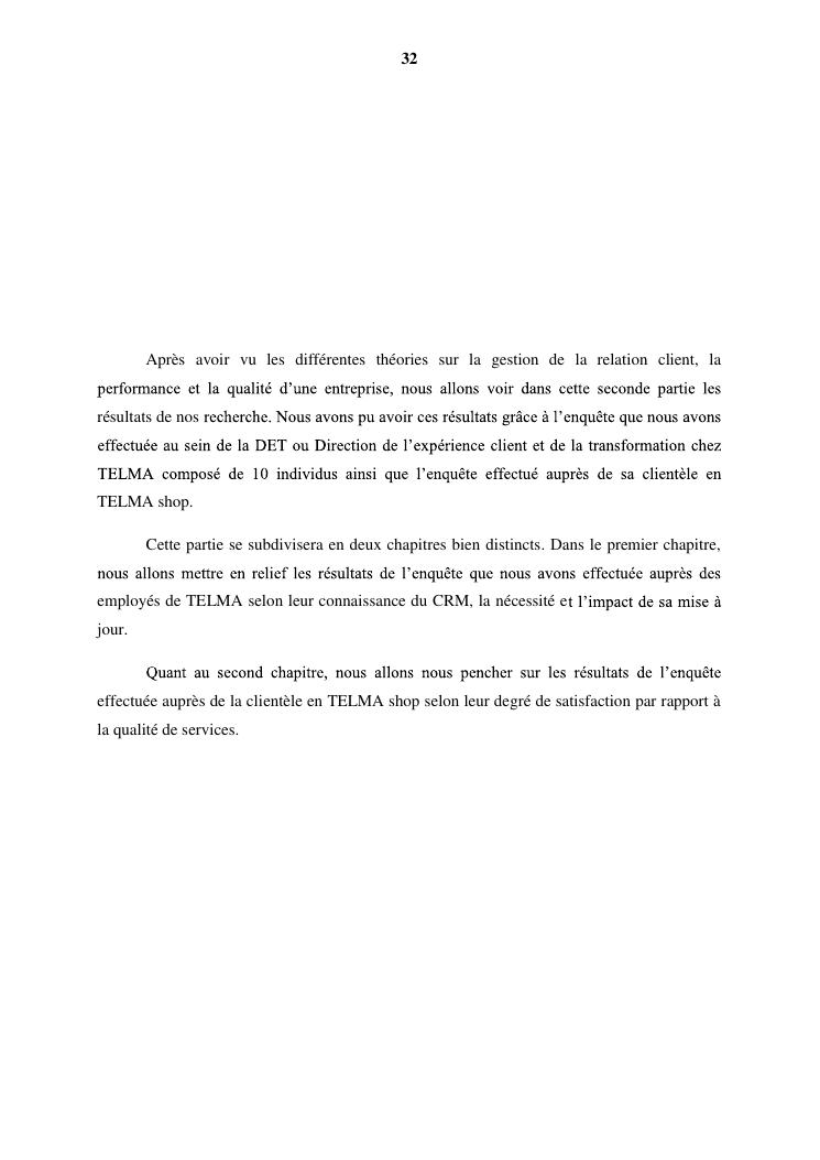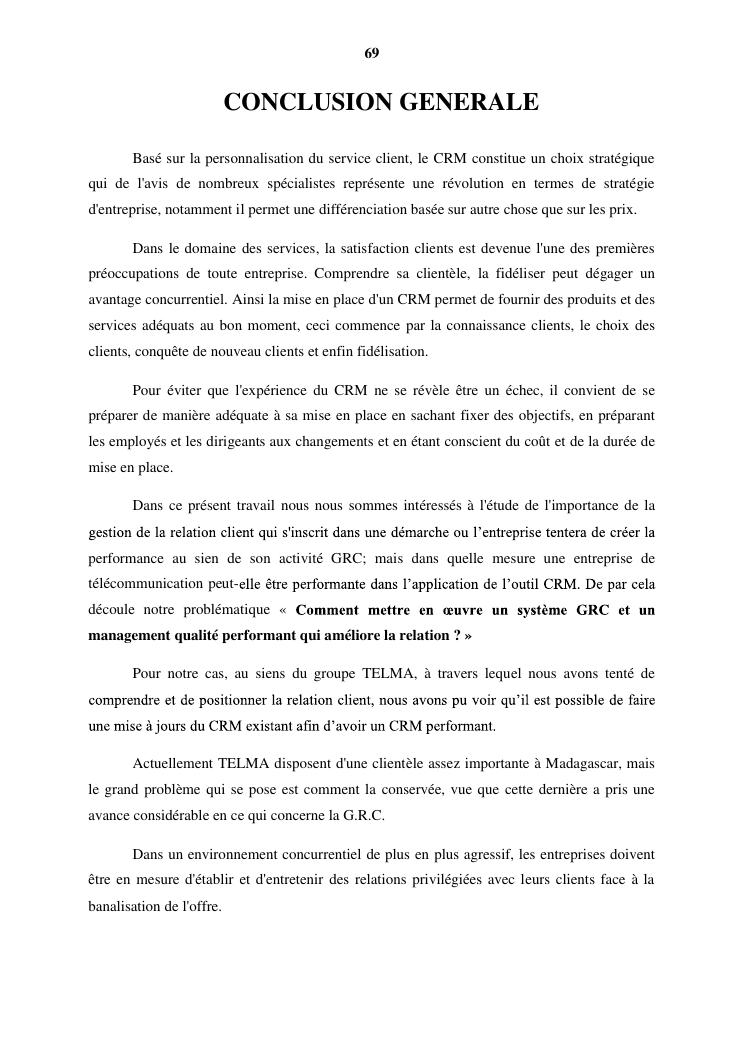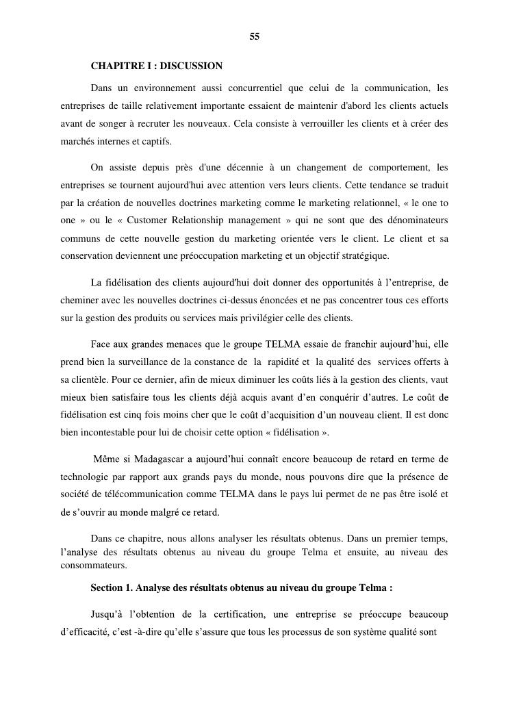 la gestion de la relation client, un enjeu reel pour la qualite et la performance de l'entreprise. cas : telma