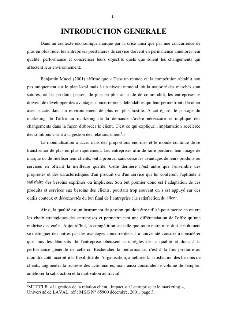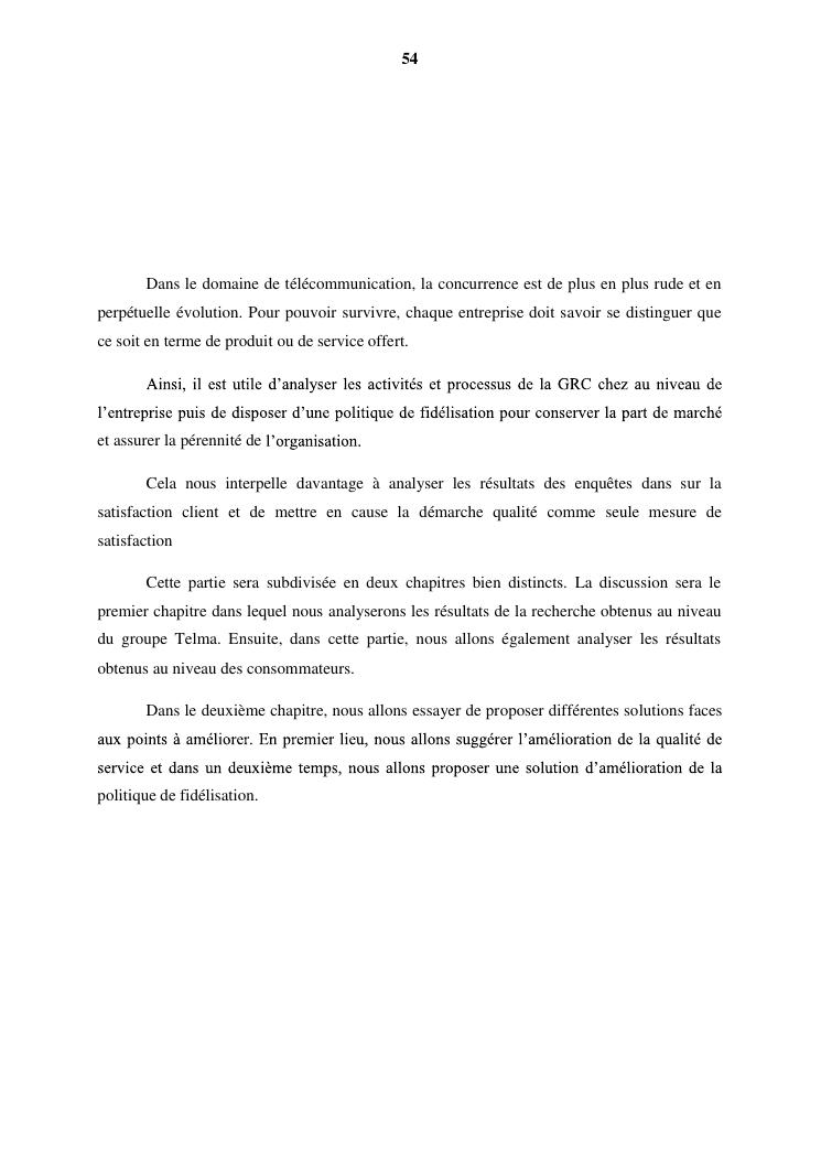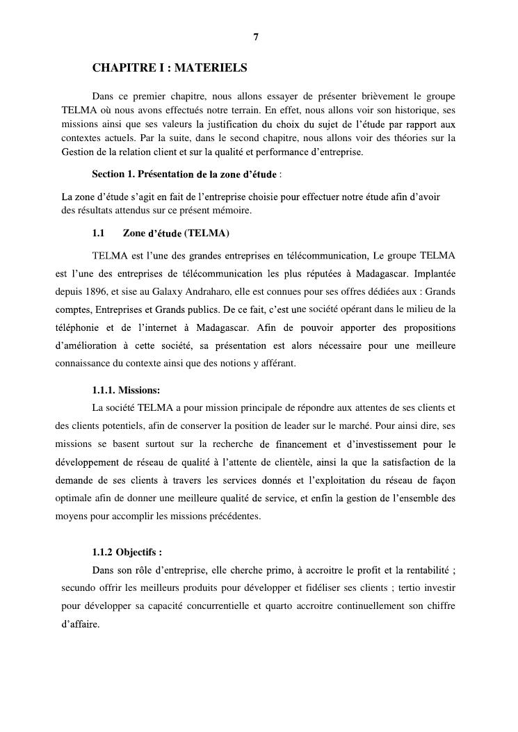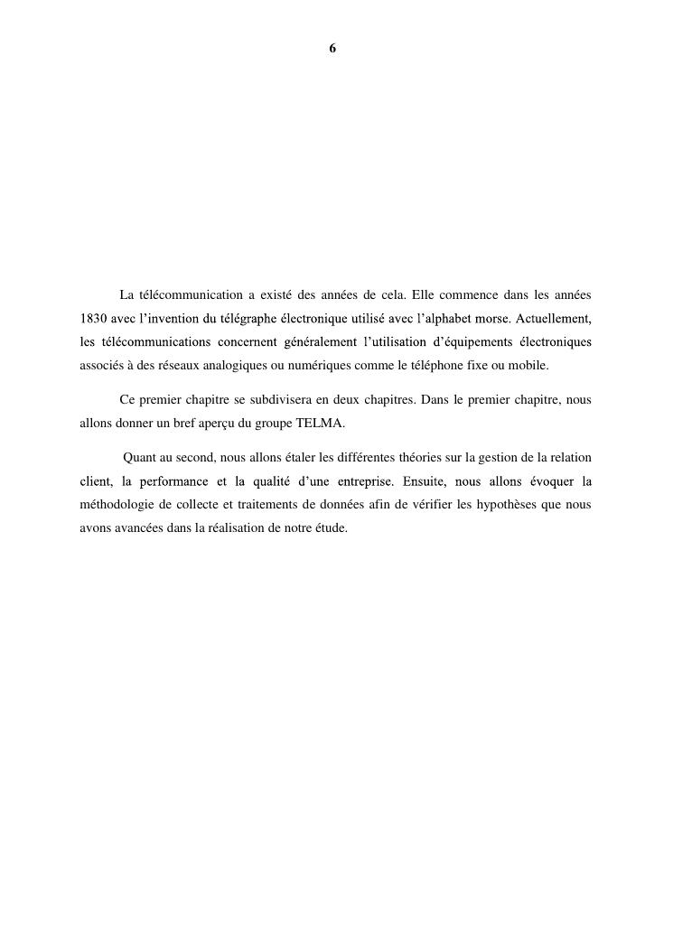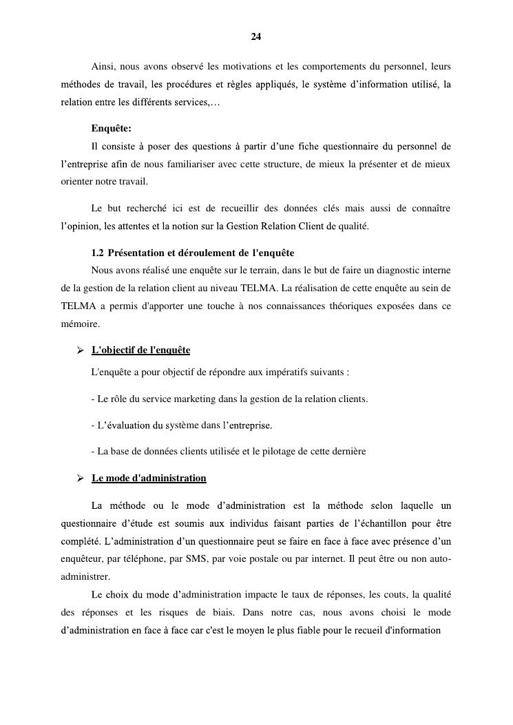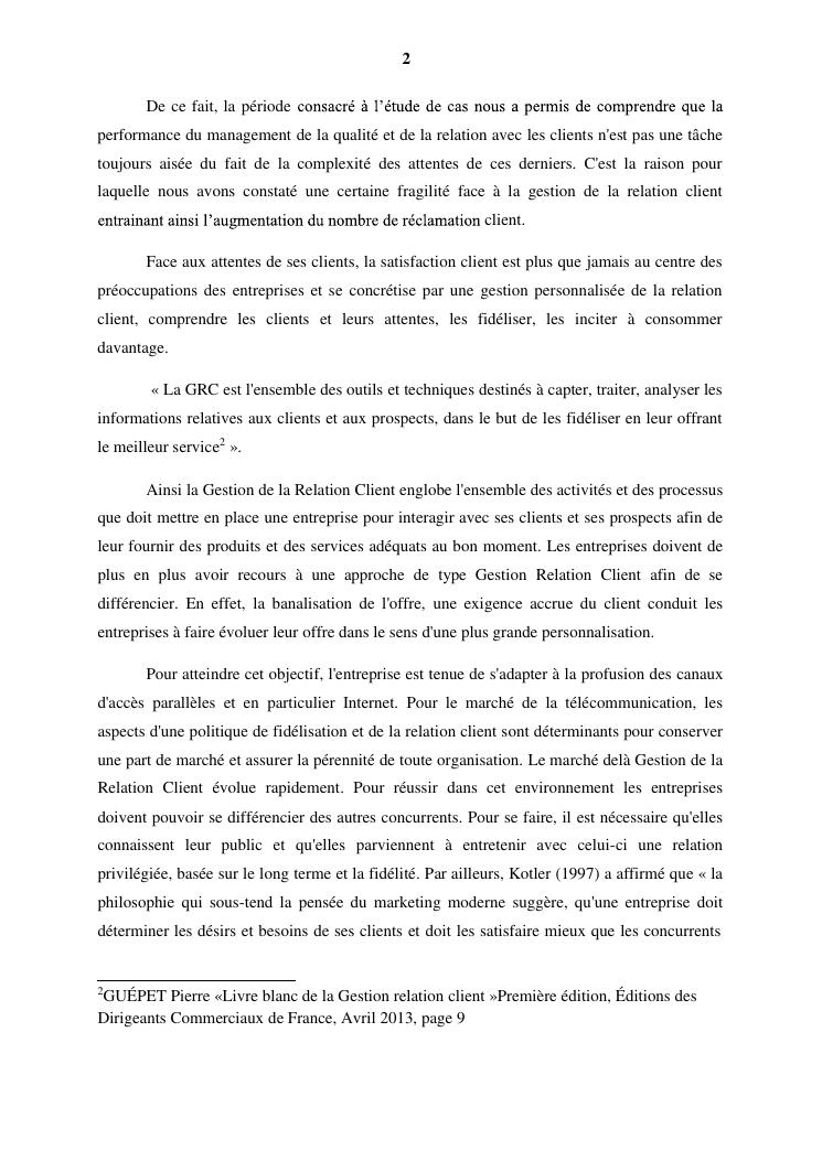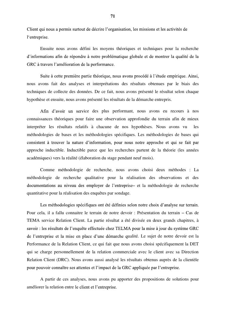 la gestion de la relation client, un enjeu reel pour la qualite et la performance de l'entreprise. cas : telma