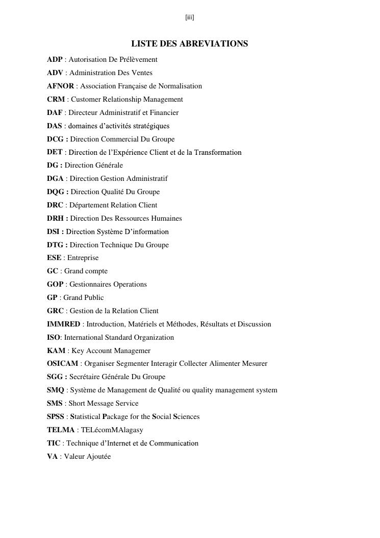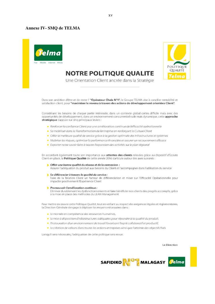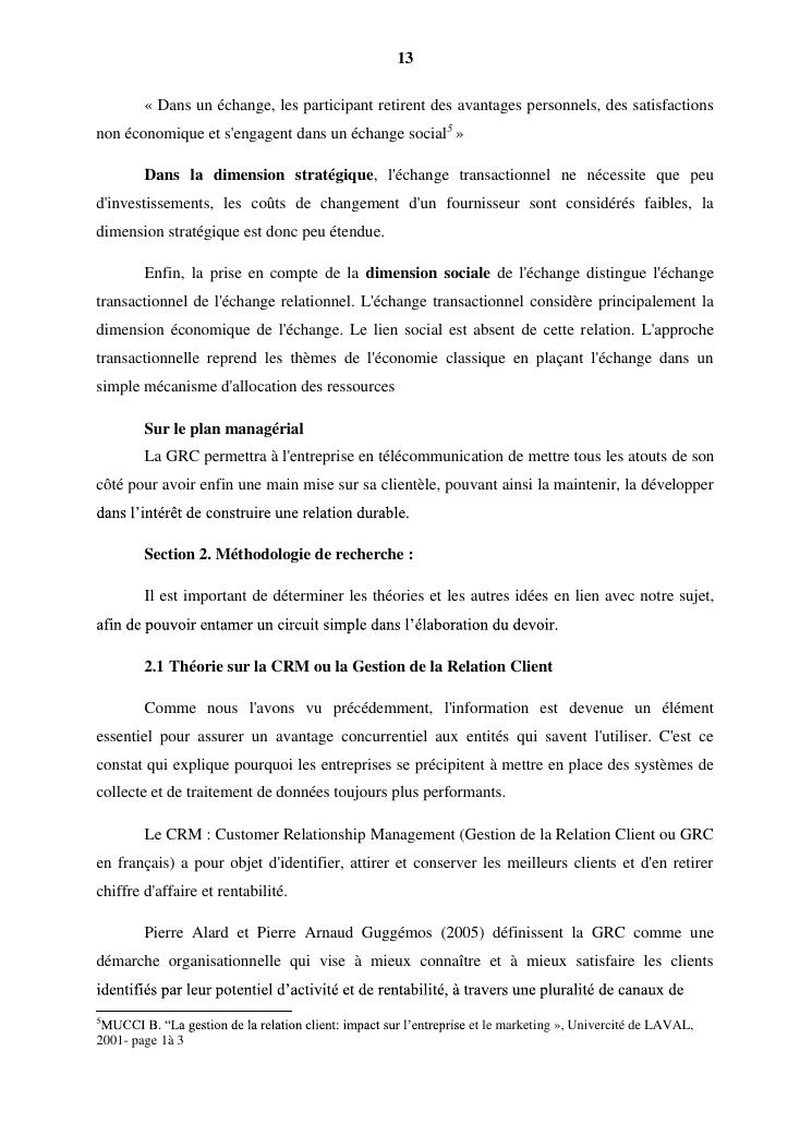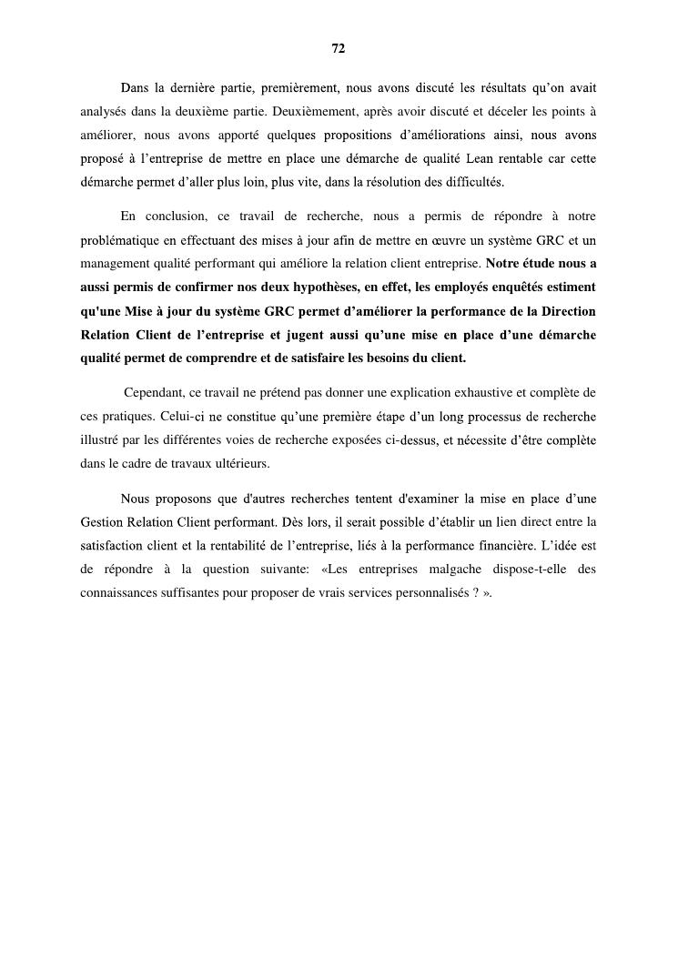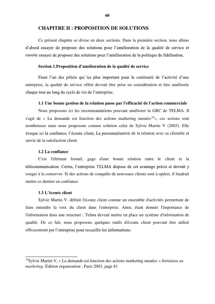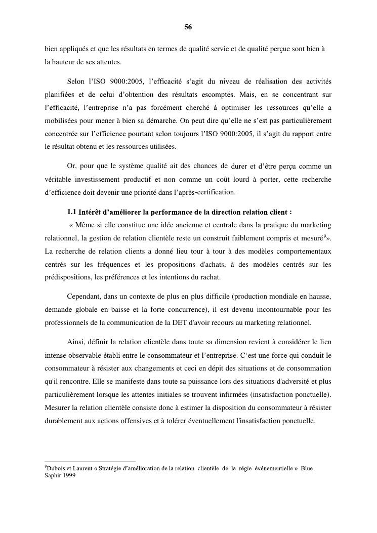 la gestion de la relation client, un enjeu reel pour la qualite et la performance de l'entreprise. cas : telma