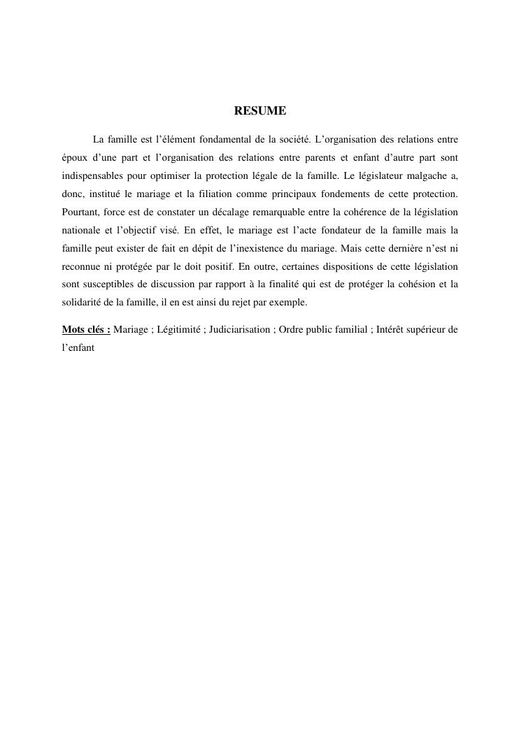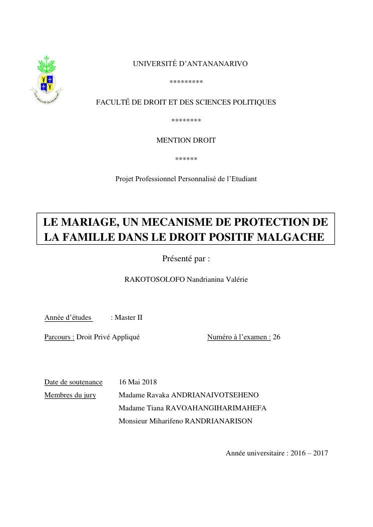 le mariage, un mecanisme de protection de la famille dans le droit positif malgache