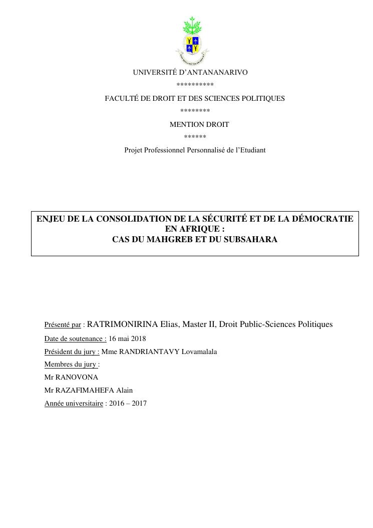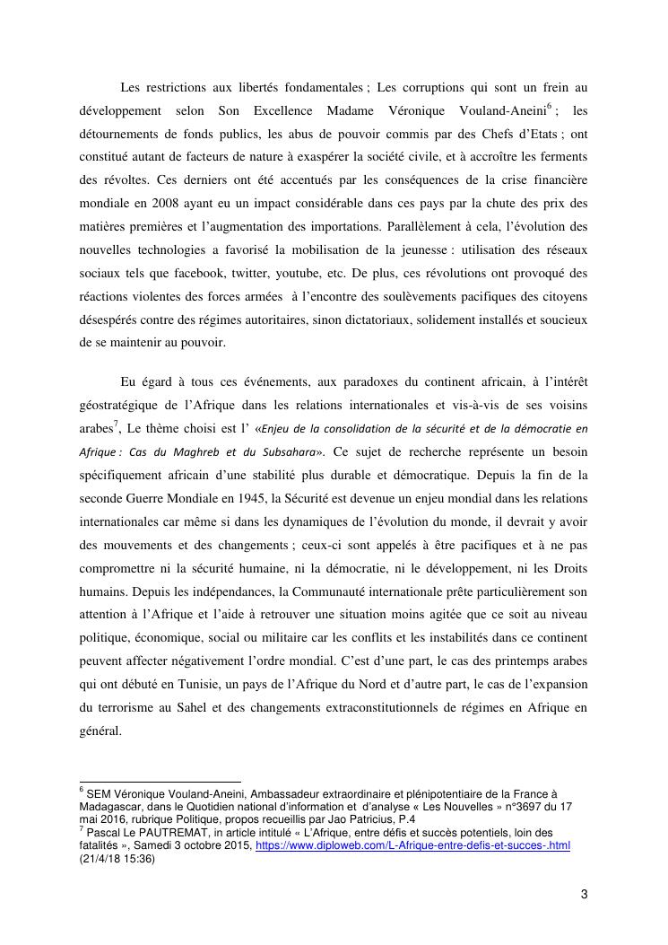 enjeu de la consolidation de la sécurité et de la démocratie en afrique : cas du mahgreb et du subsahara