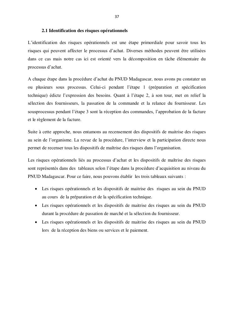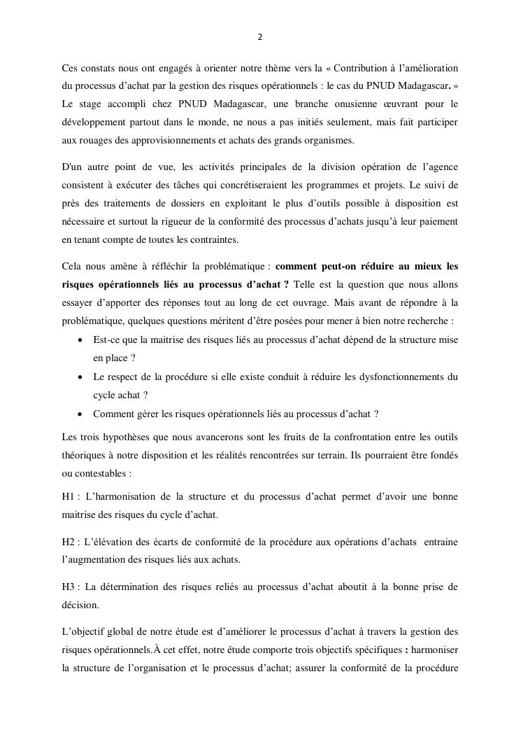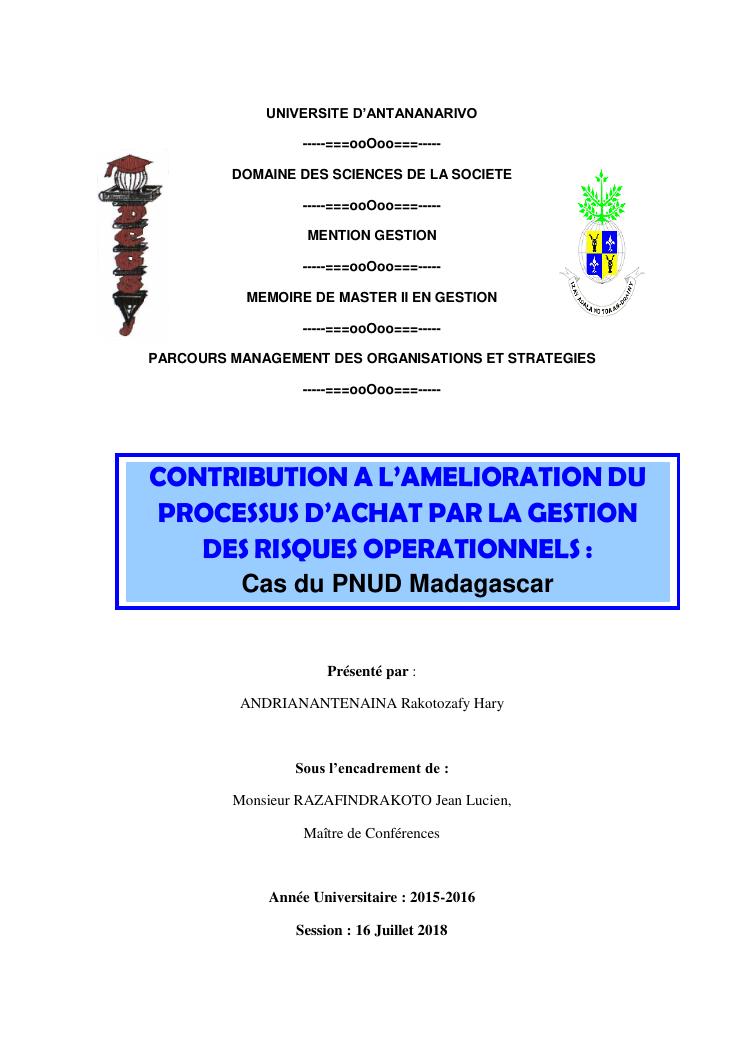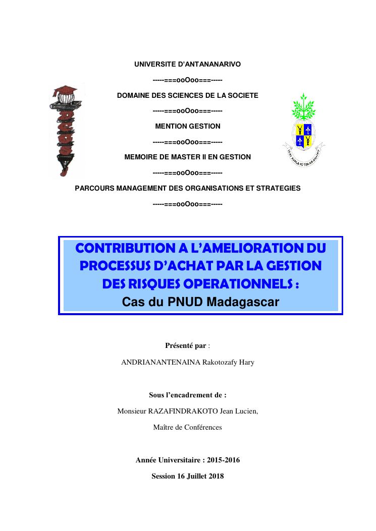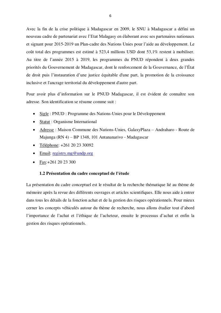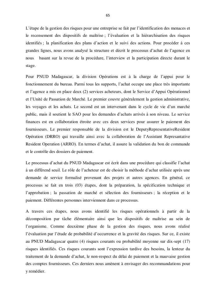 contribution a l'amelioration du processus d'achat par la gestion des risques operationnels : cas du pnud madagascar