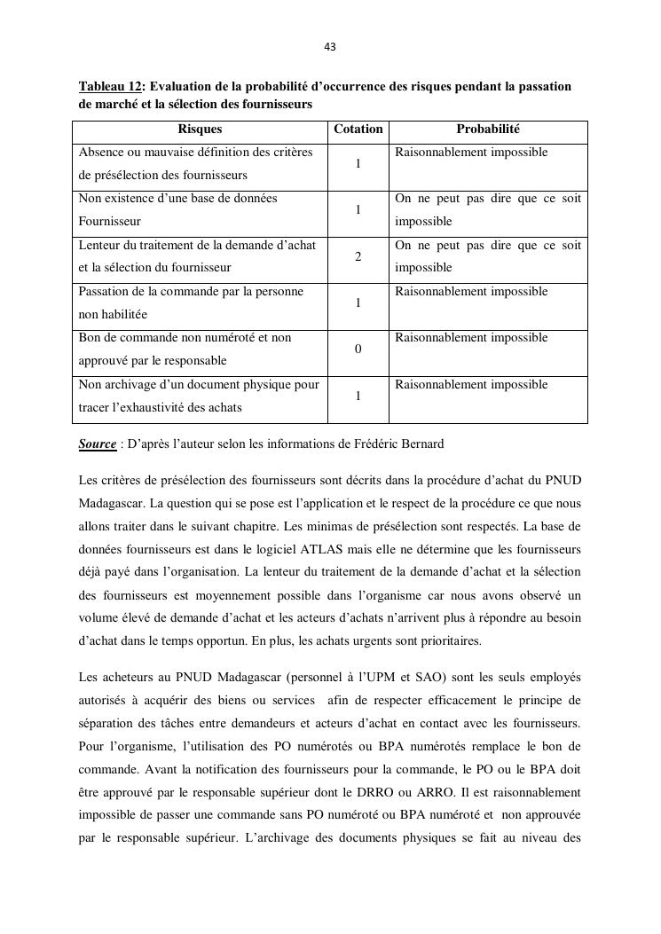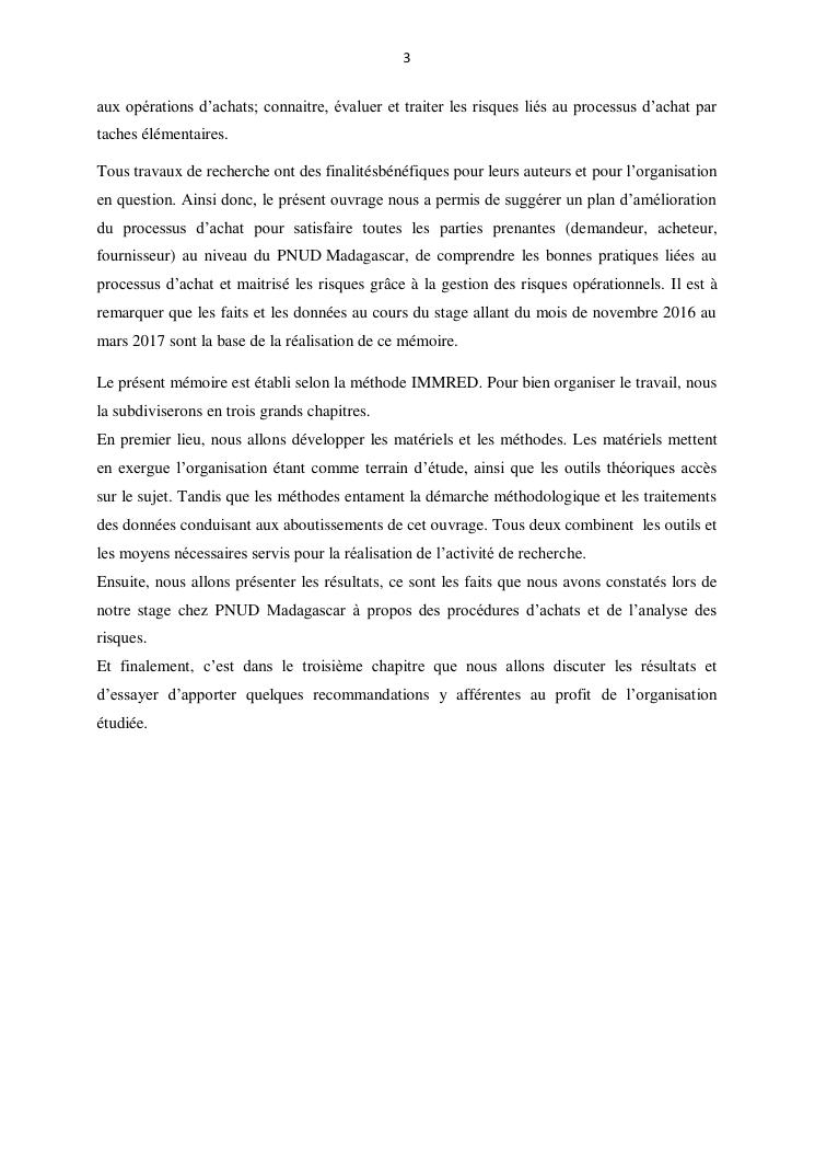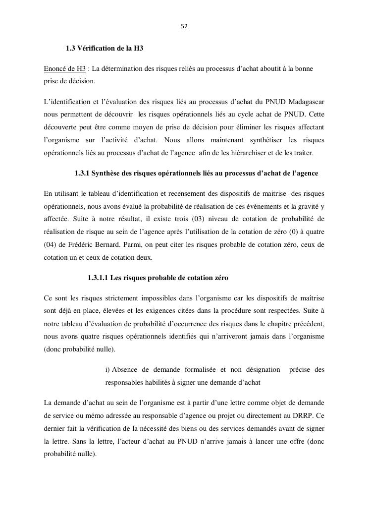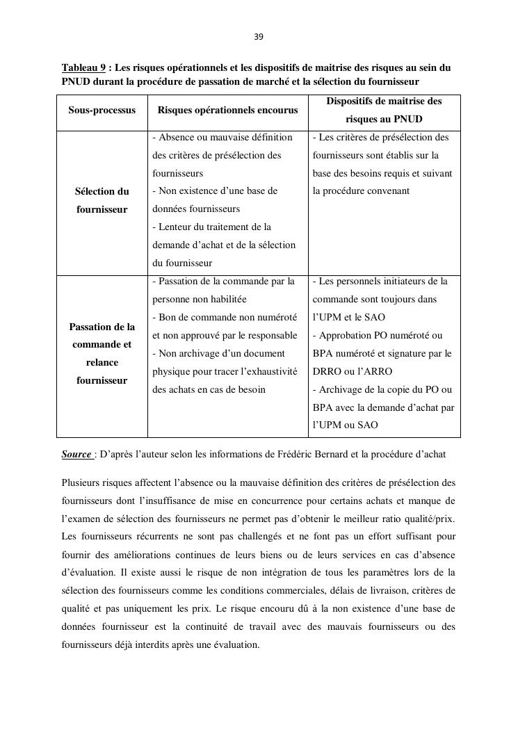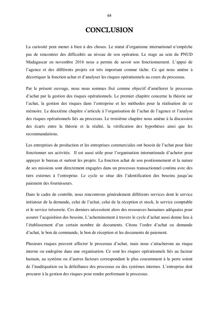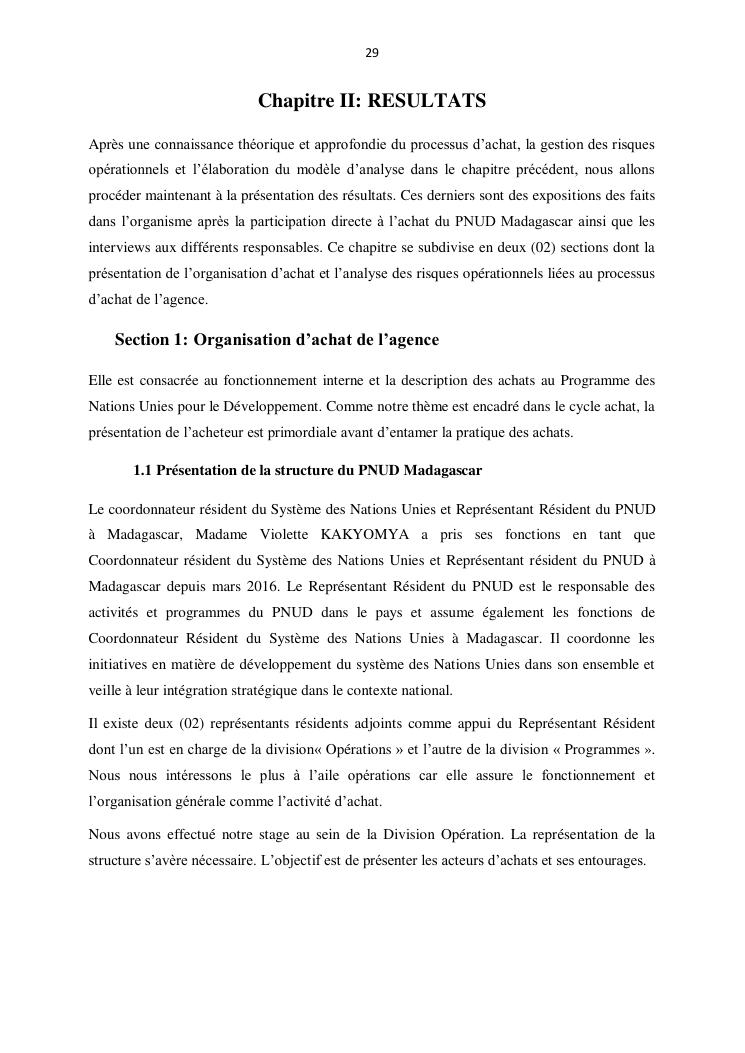 contribution a l'amelioration du processus d'achat par la gestion des risques operationnels : cas du pnud madagascar