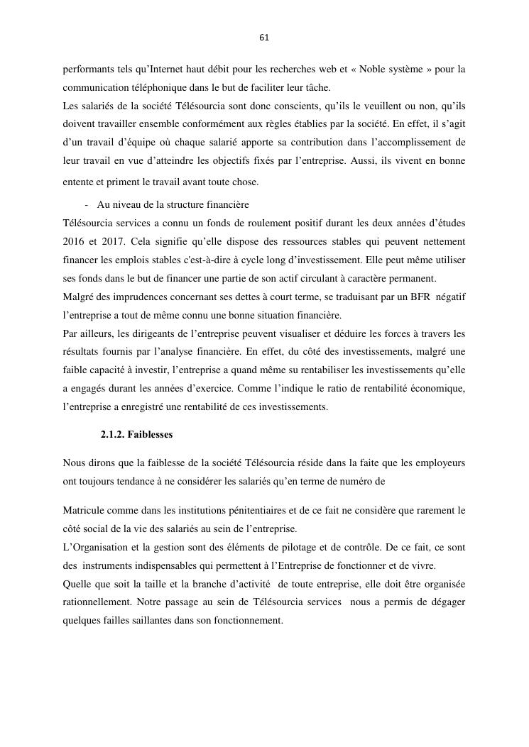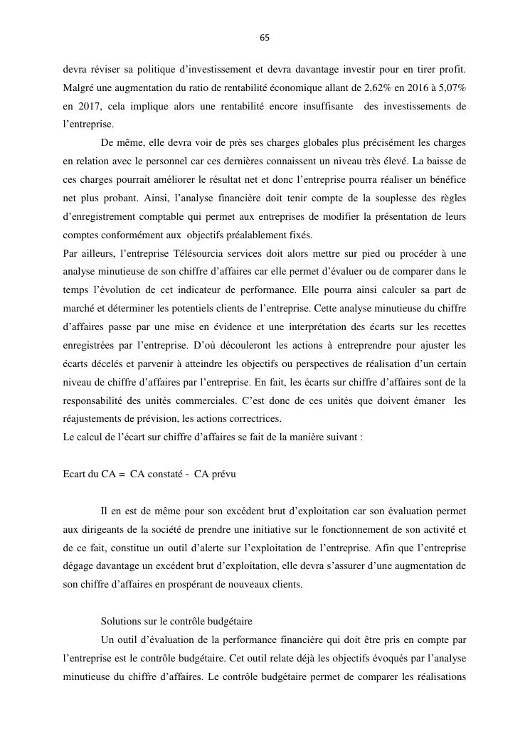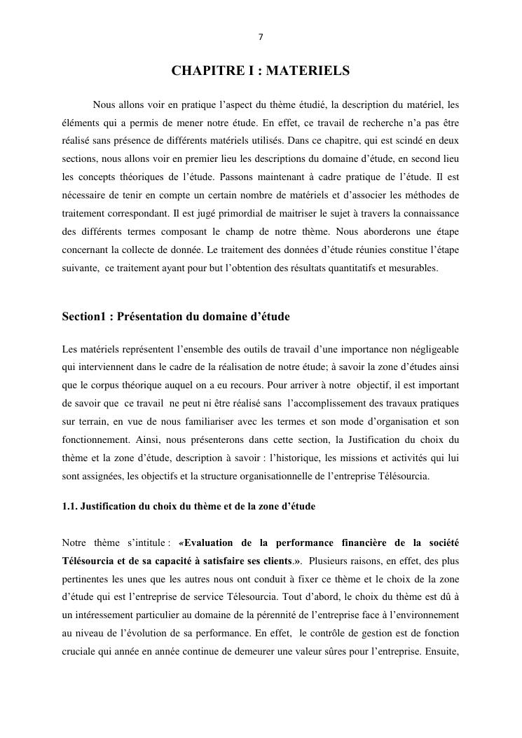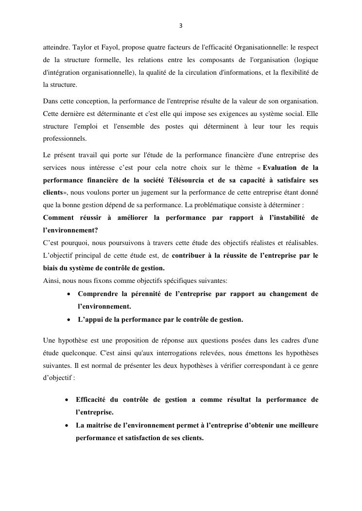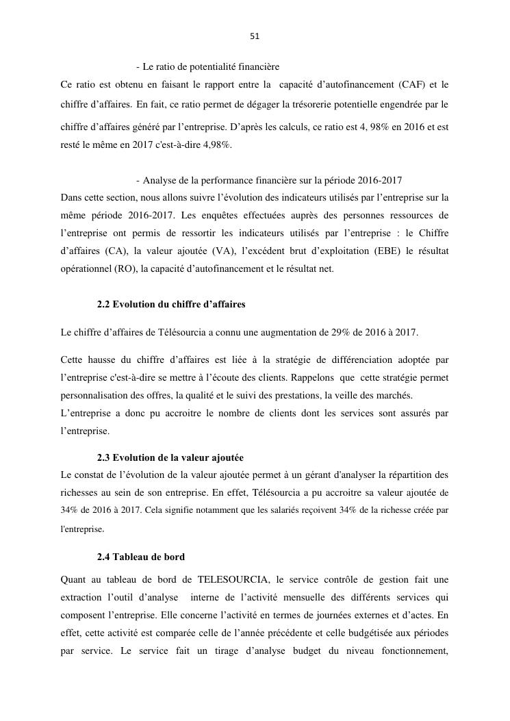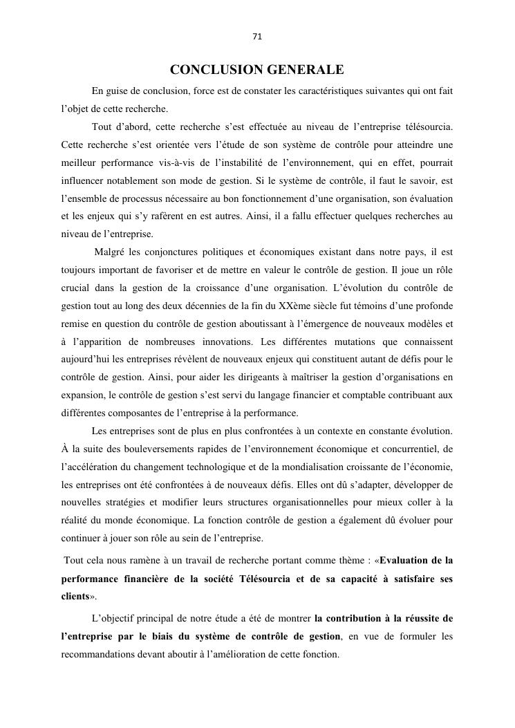 evaluation de la performance financiere de la societe telesourcia et de sa capacite a satisfaire ses clients