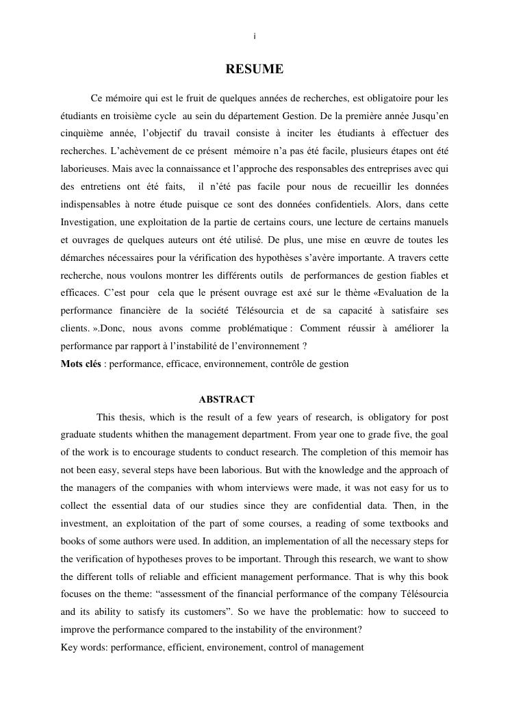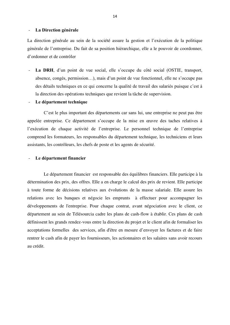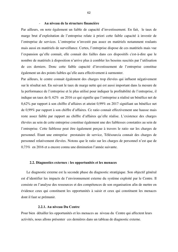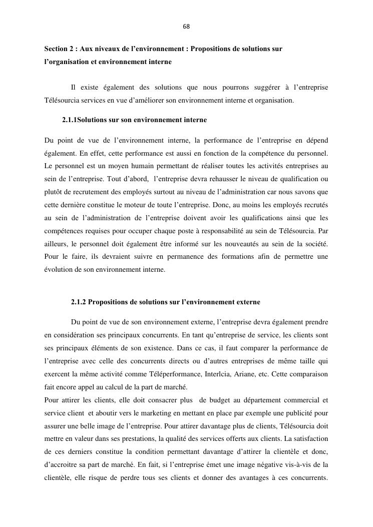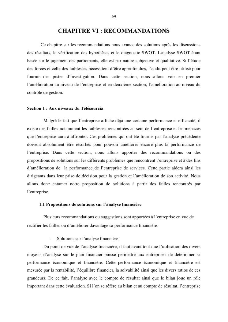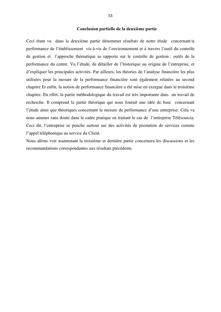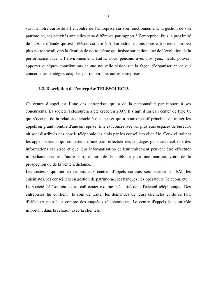 evaluation de la performance financiere de la societe telesourcia et de sa capacite a satisfaire ses clients