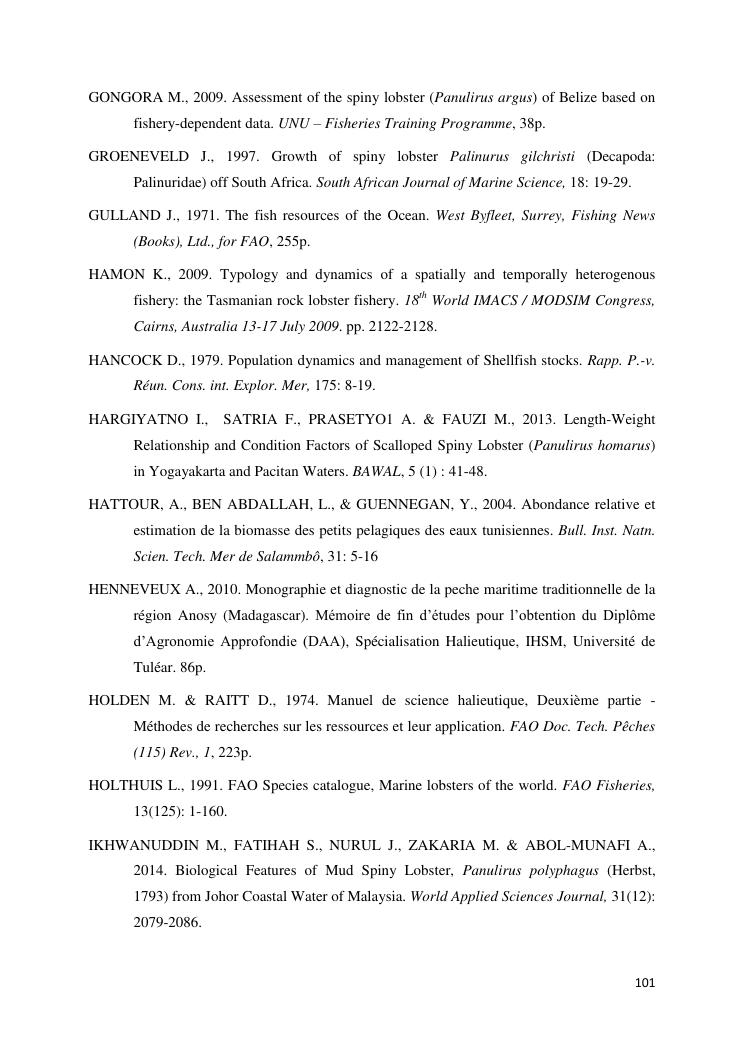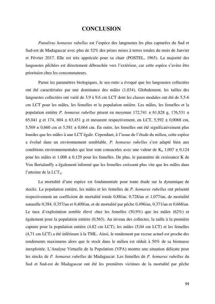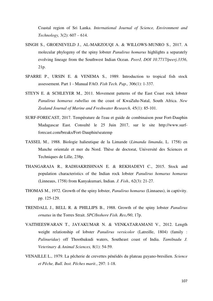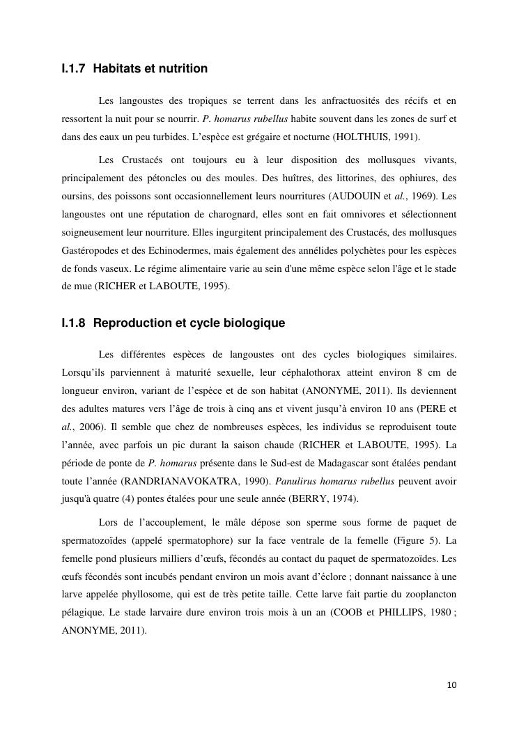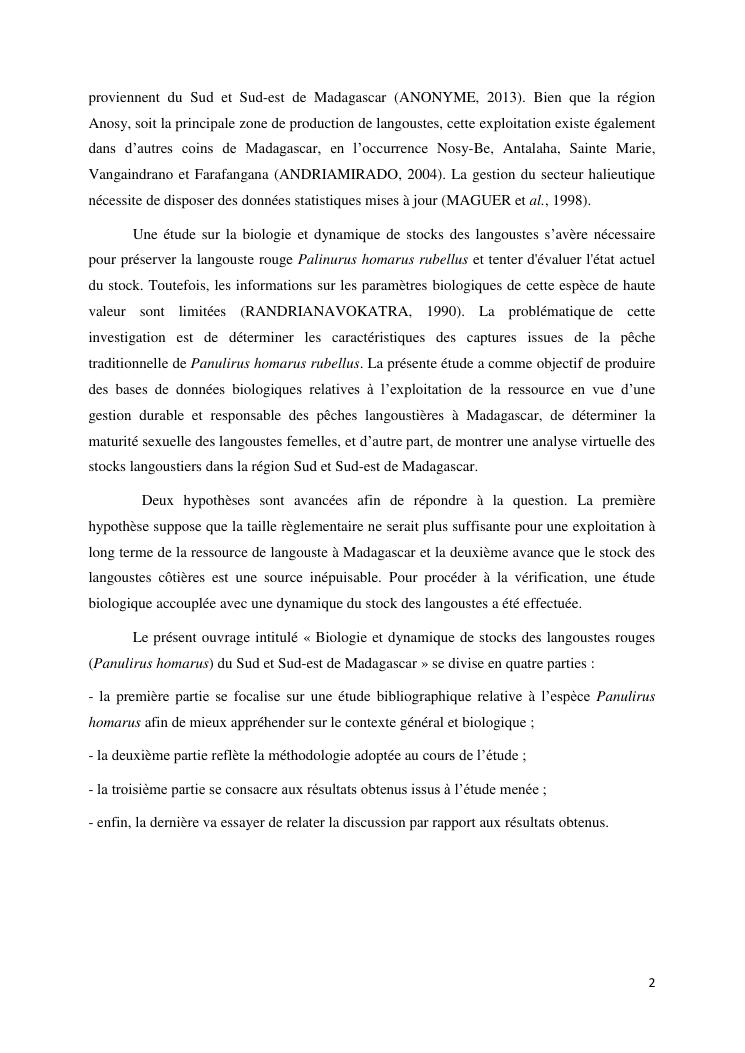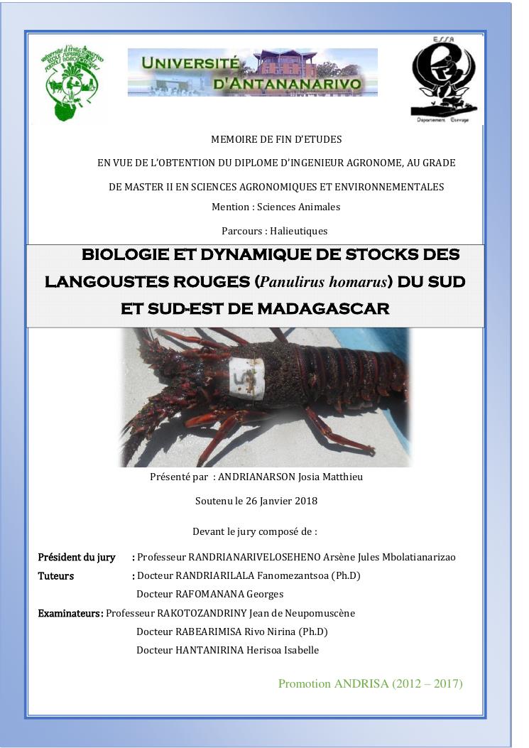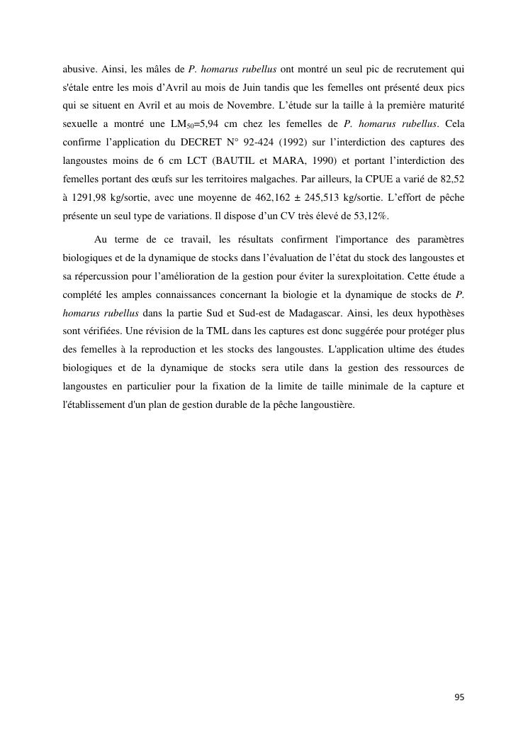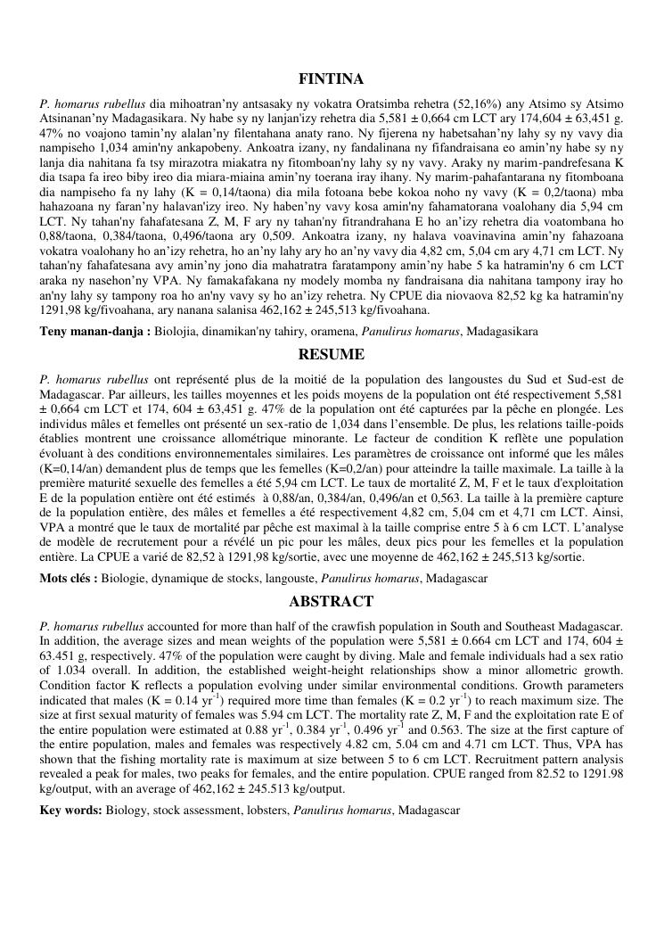 biologie et dynamique de stocks des langoustes rouges (panulirus homarus) du sud et sud-est de madagascar