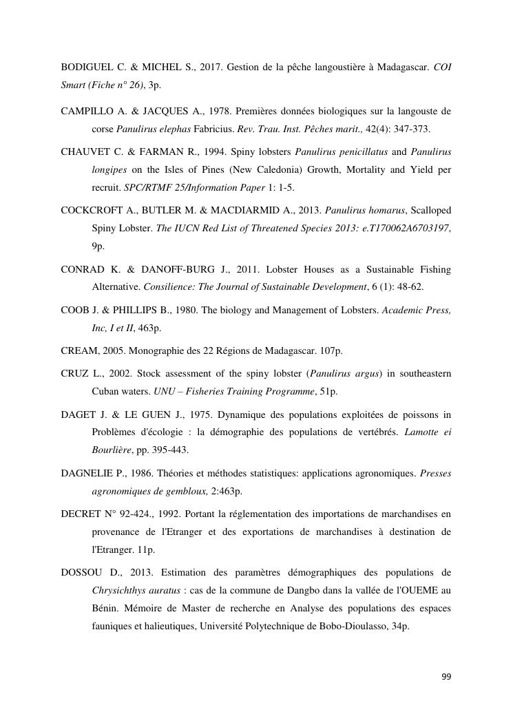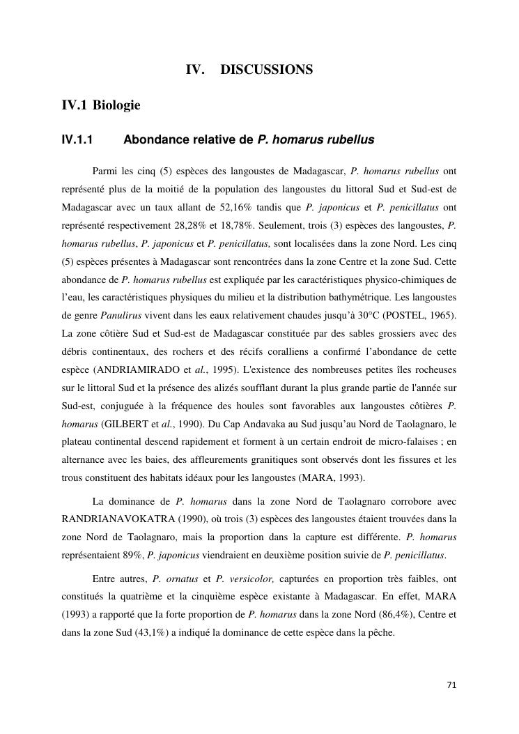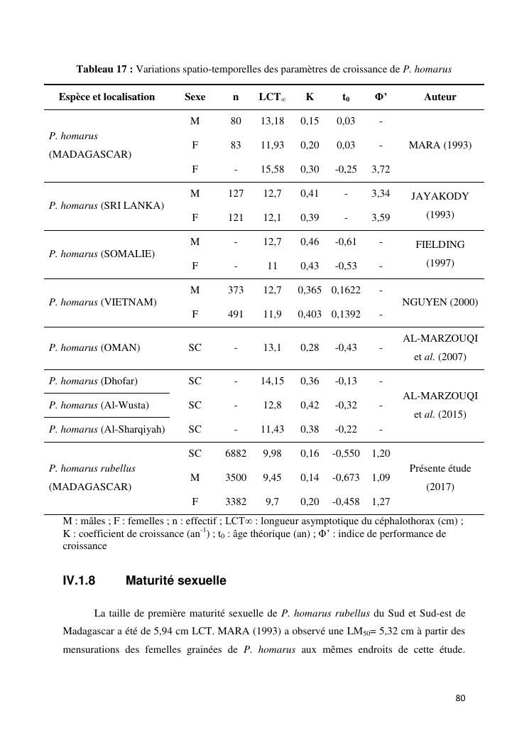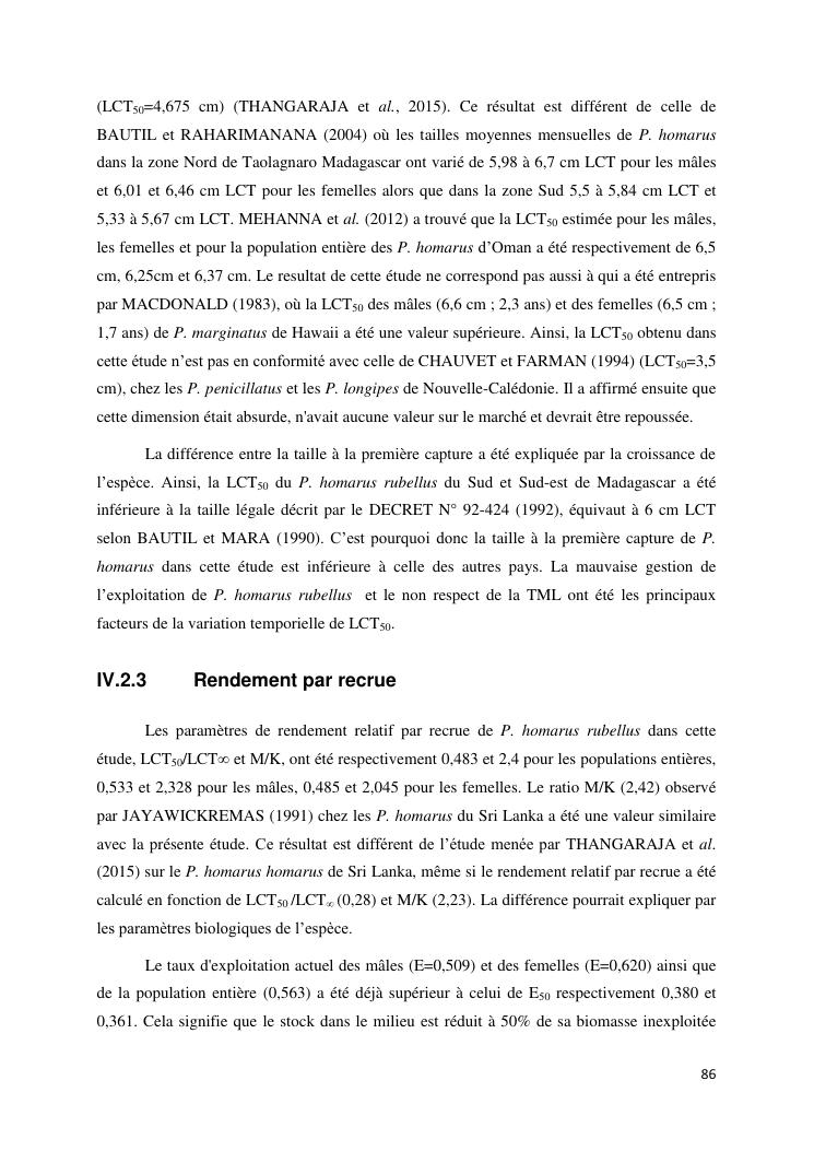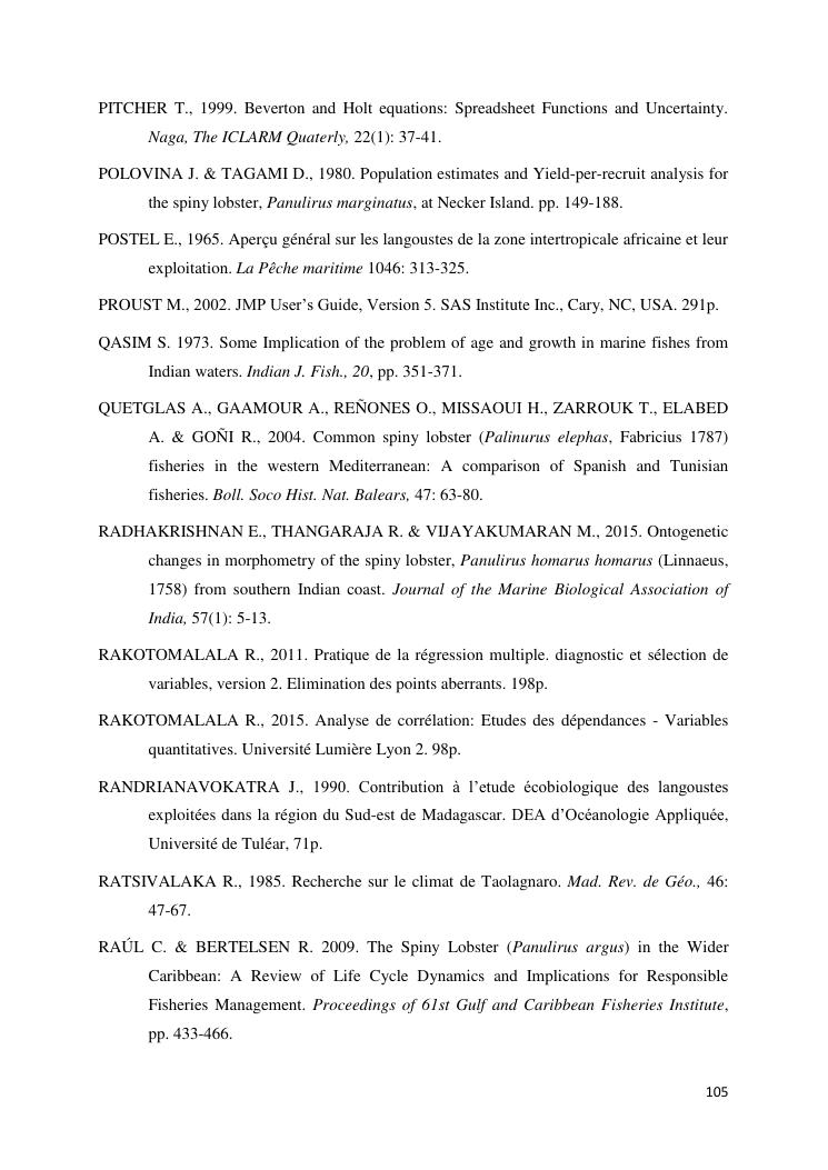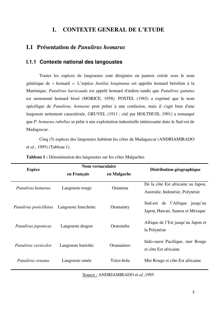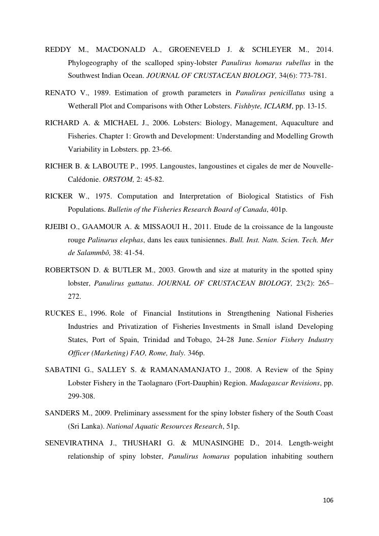 biologie et dynamique de stocks des langoustes rouges (panulirus homarus) du sud et sud-est de madagascar