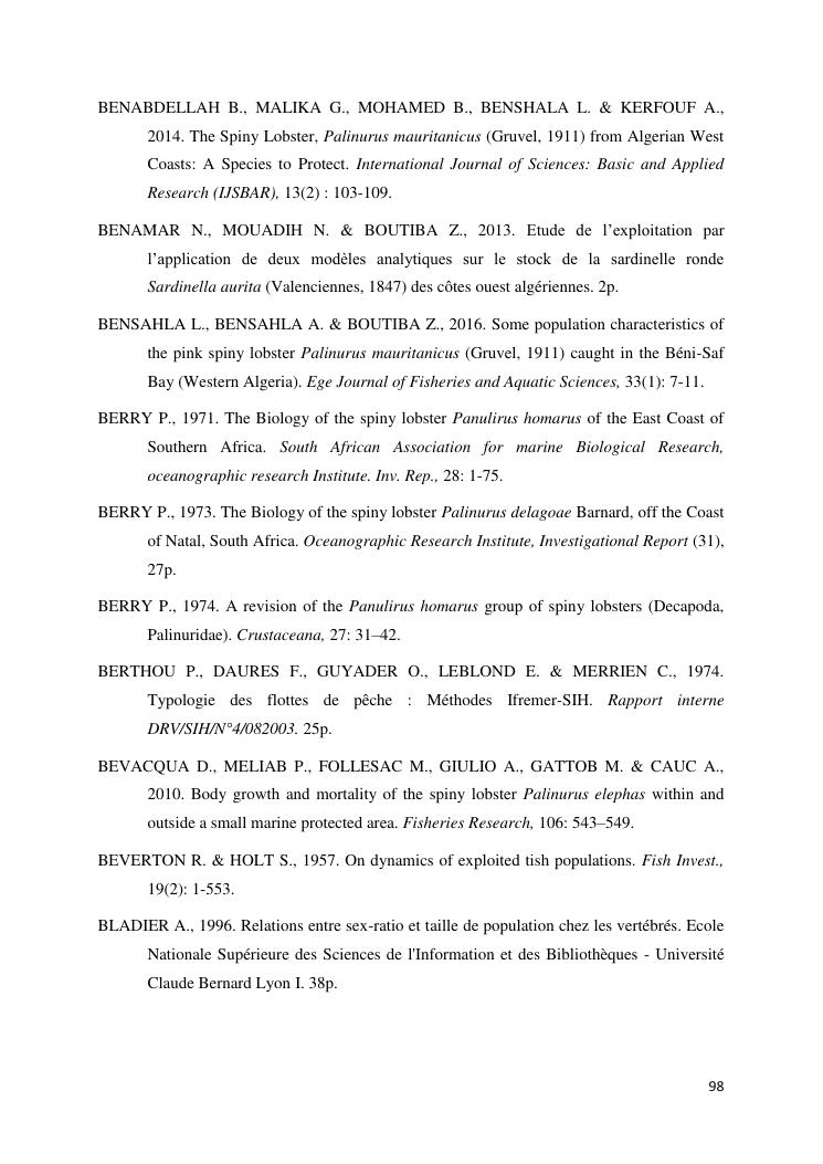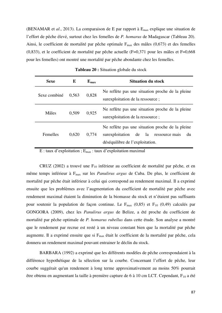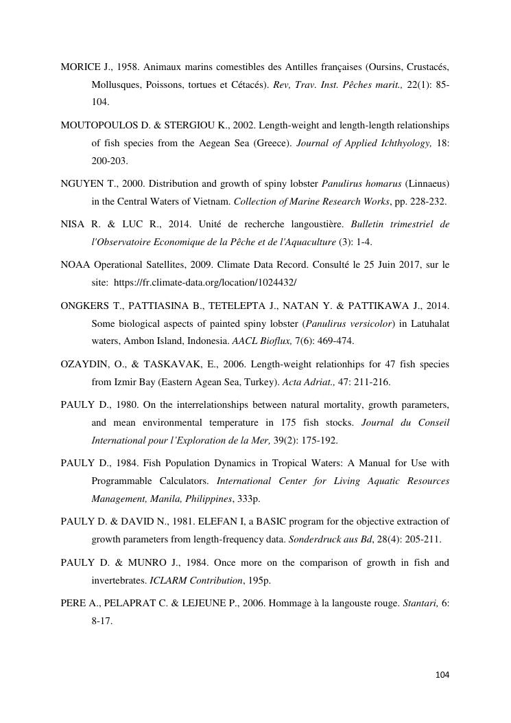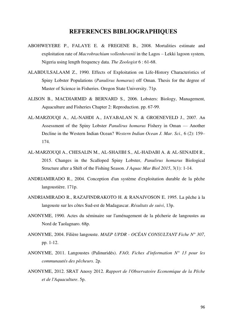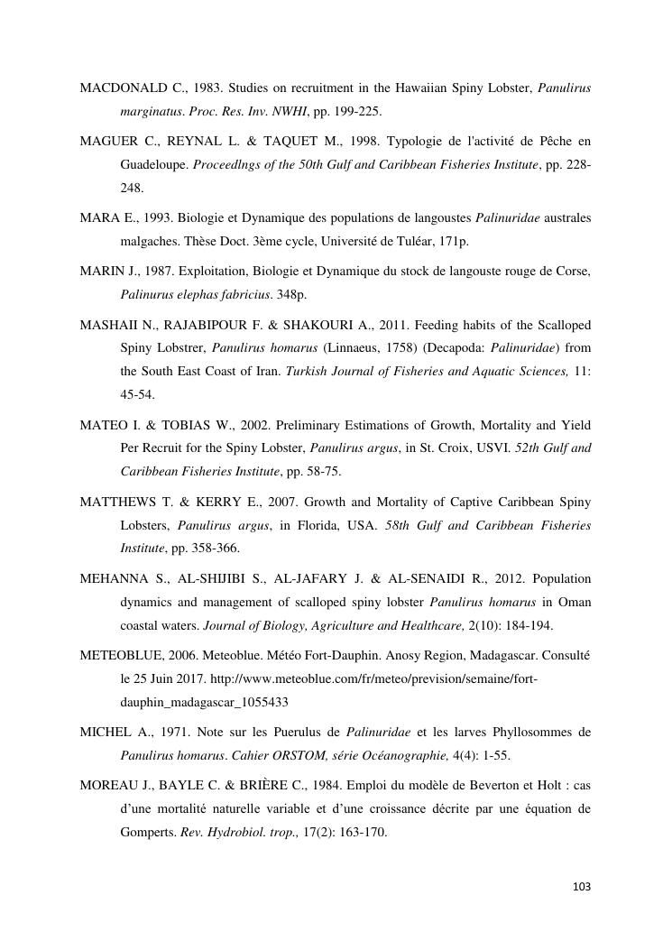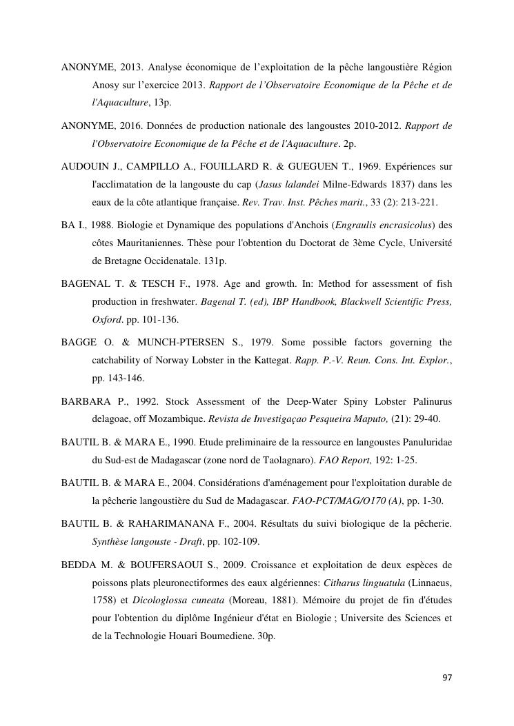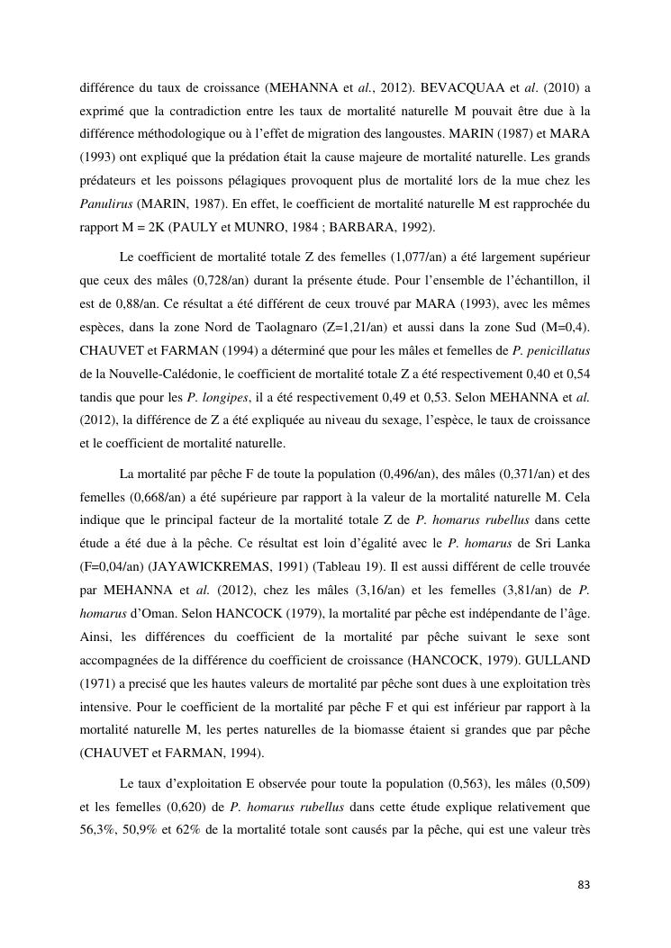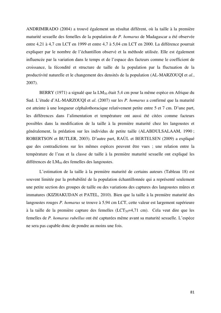 biologie et dynamique de stocks des langoustes rouges (panulirus homarus) du sud et sud-est de madagascar