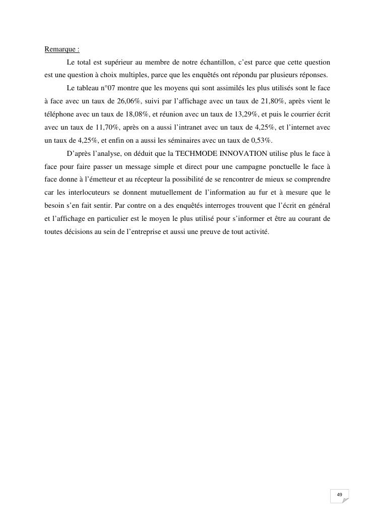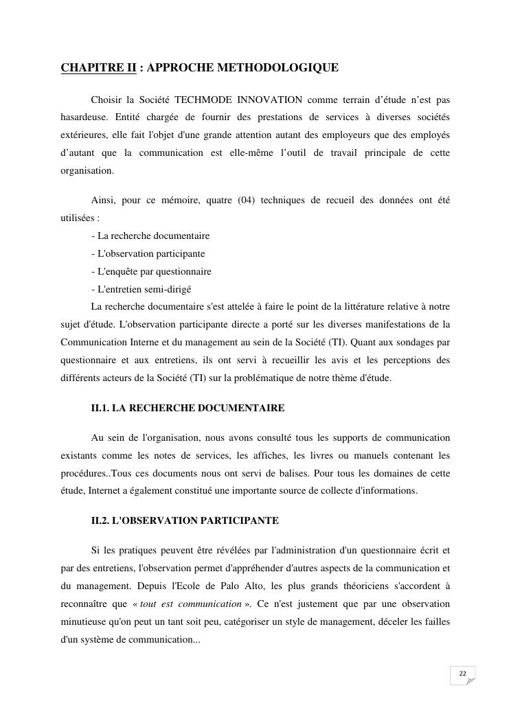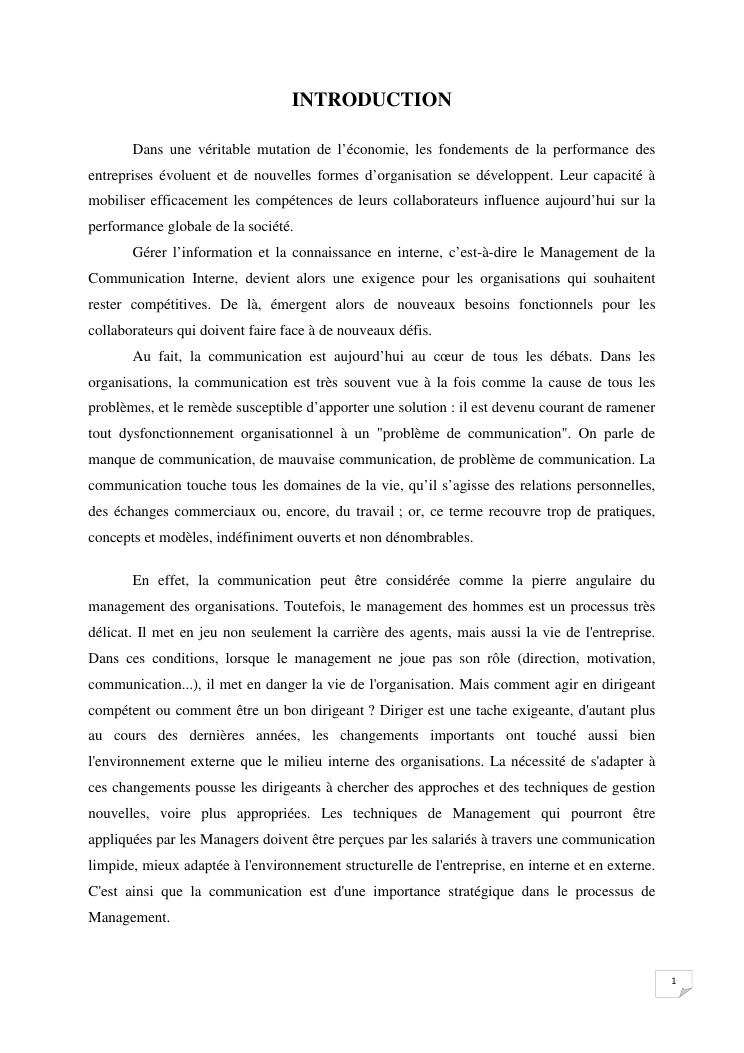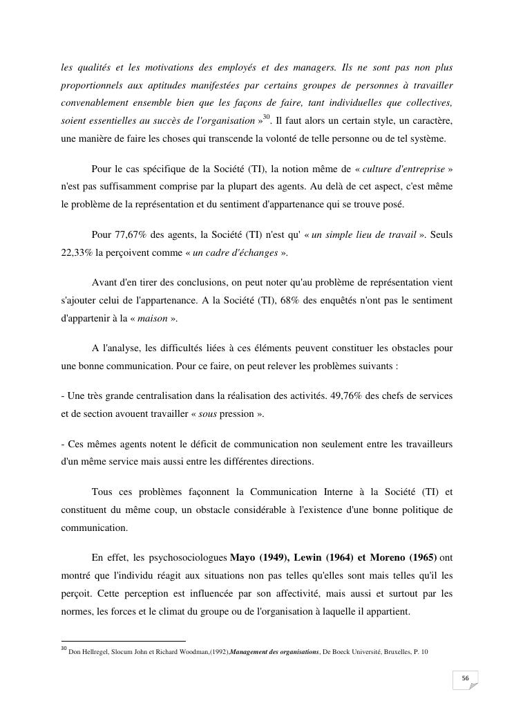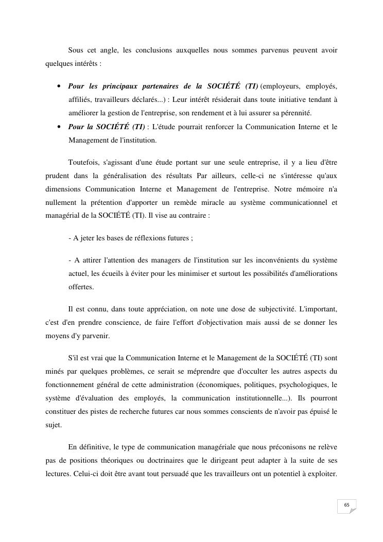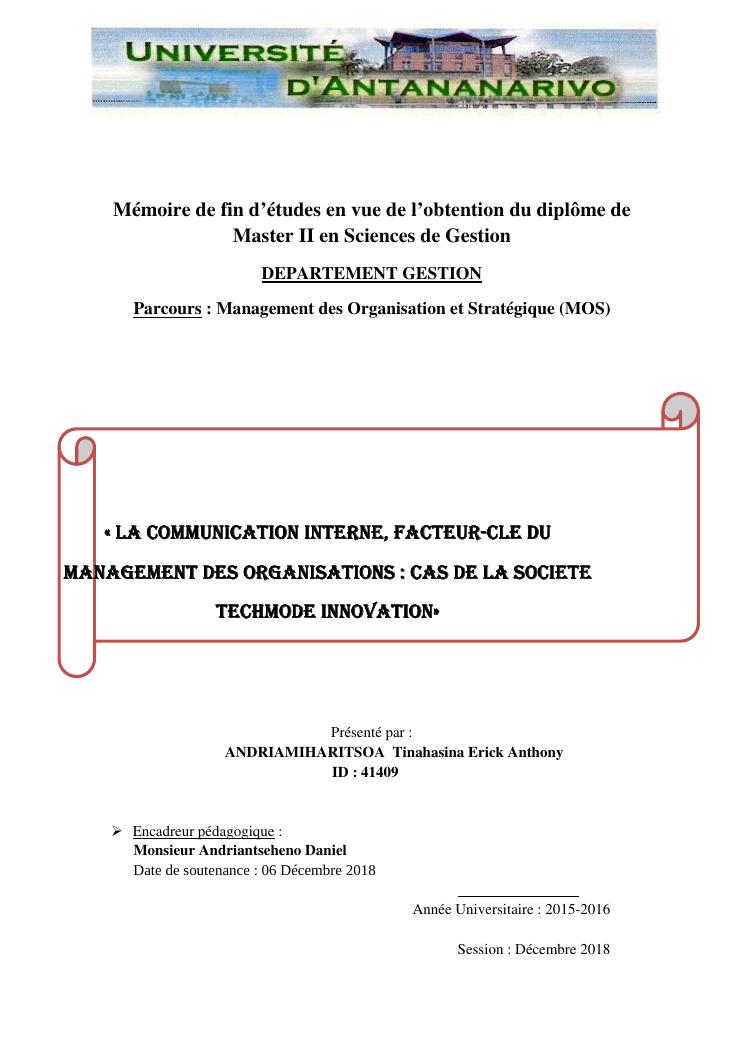 la communication interne, facteur-cle du management des organisations : cas de la societe techmode innovation