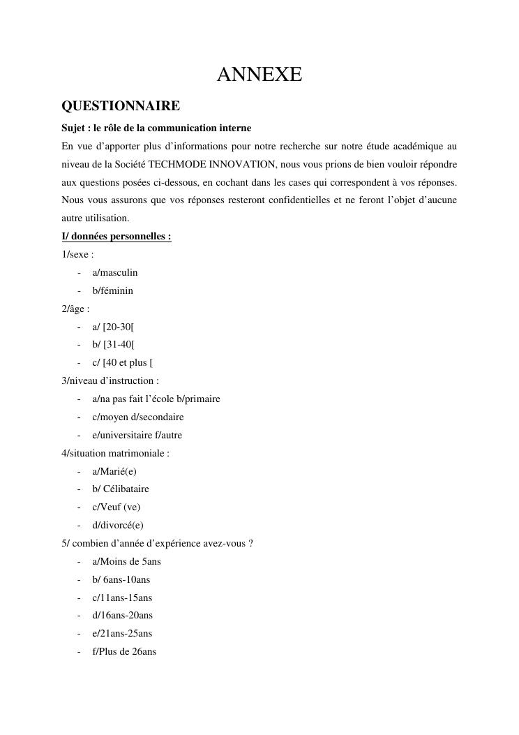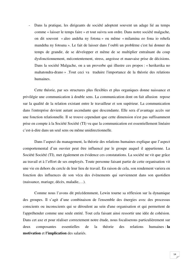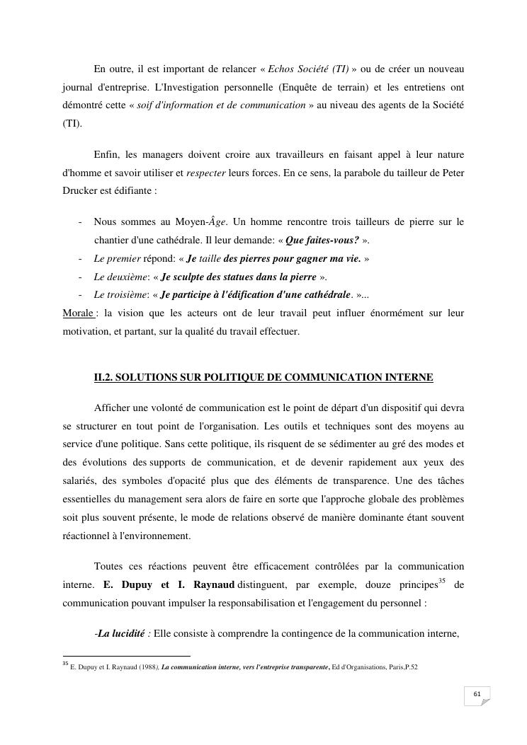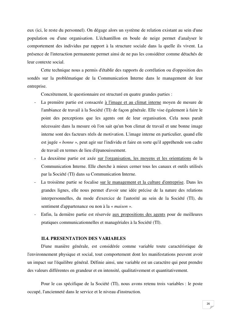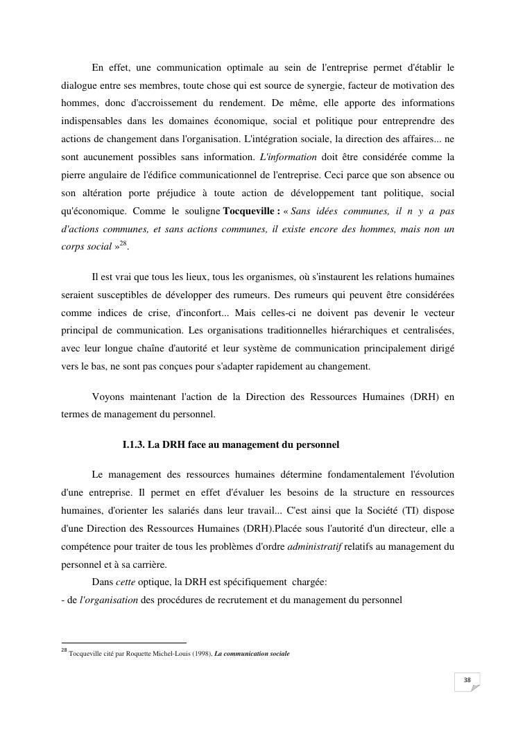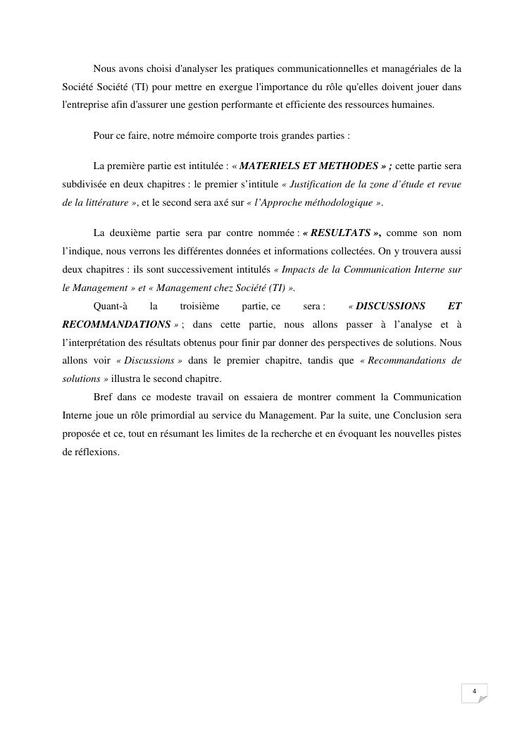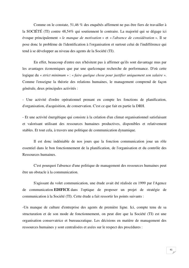 la communication interne, facteur-cle du management des organisations : cas de la societe techmode innovation