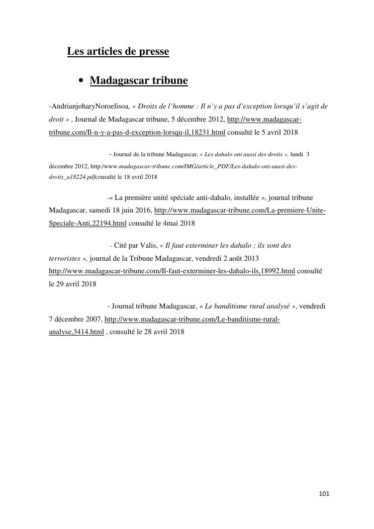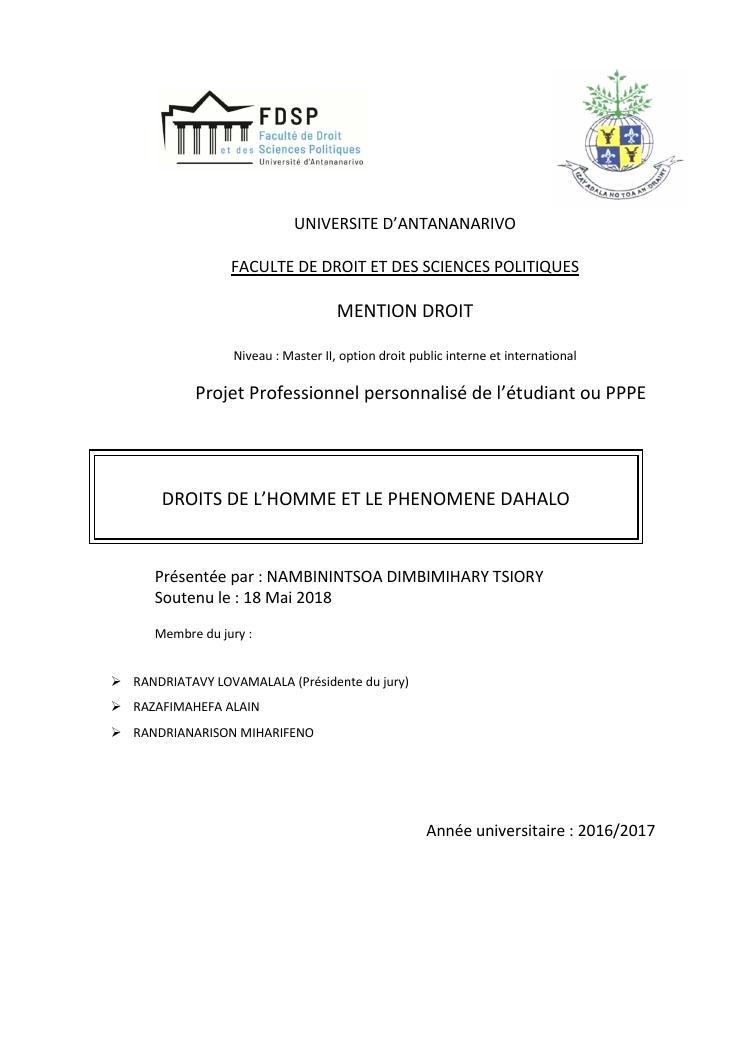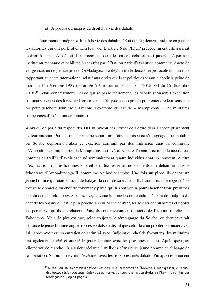 droits de l'homme et le phenomene dahalo