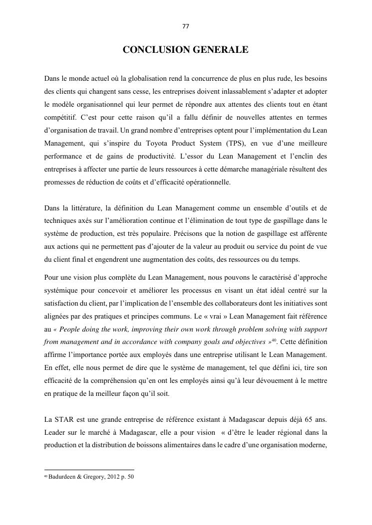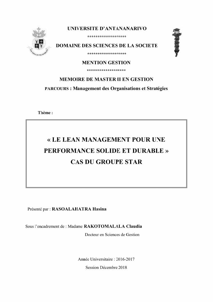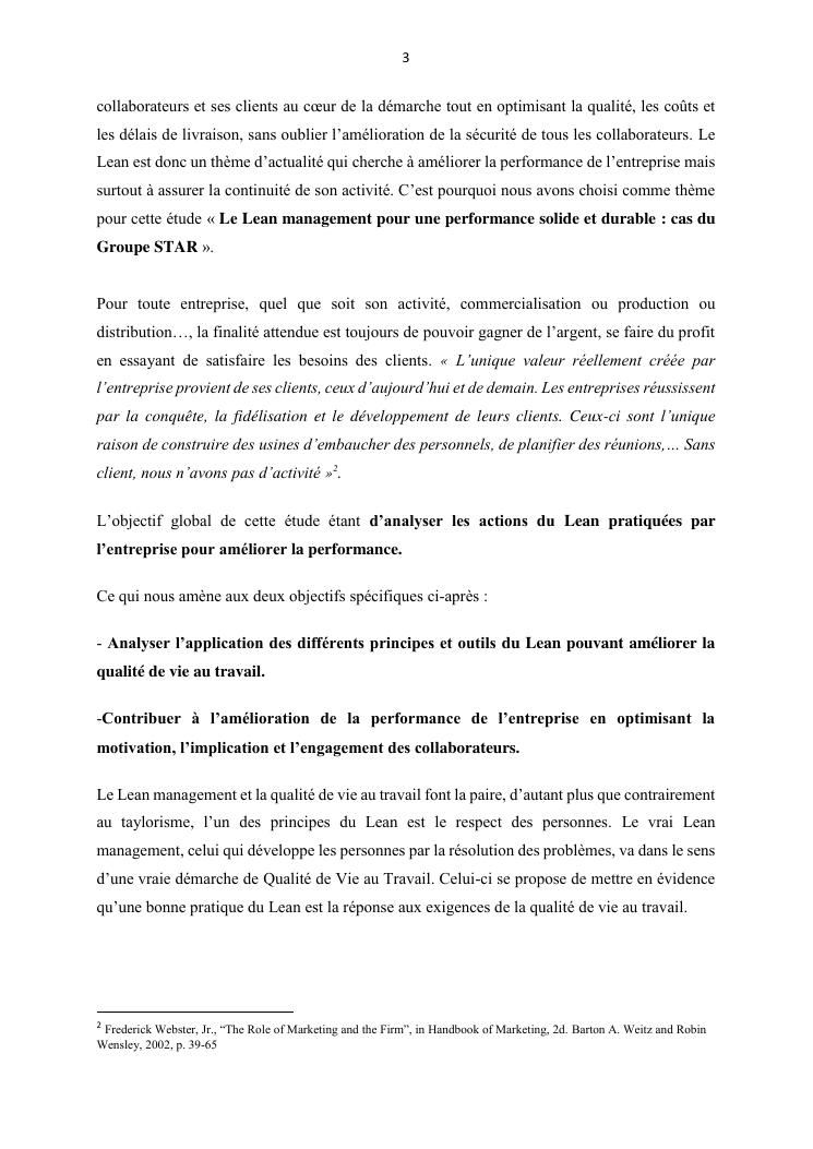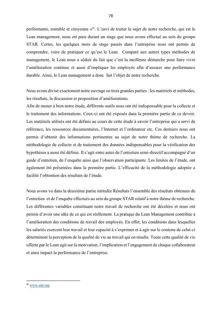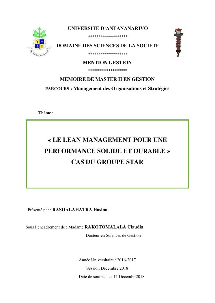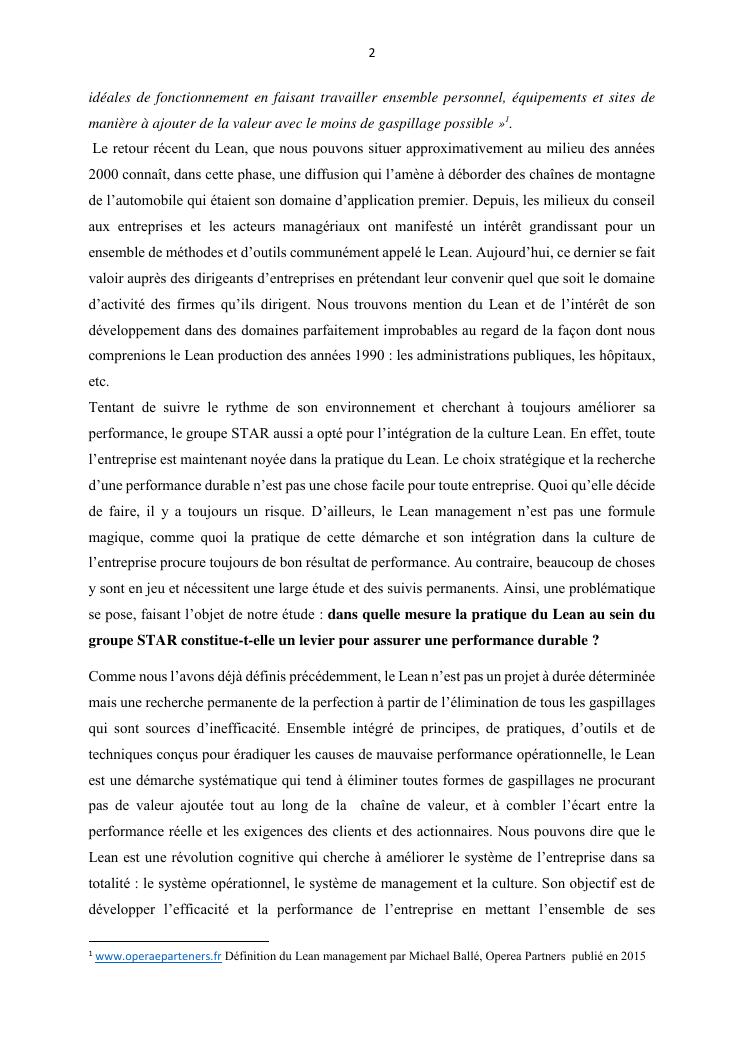 le lean management pour une performance solide et durable : cas du groupe star
